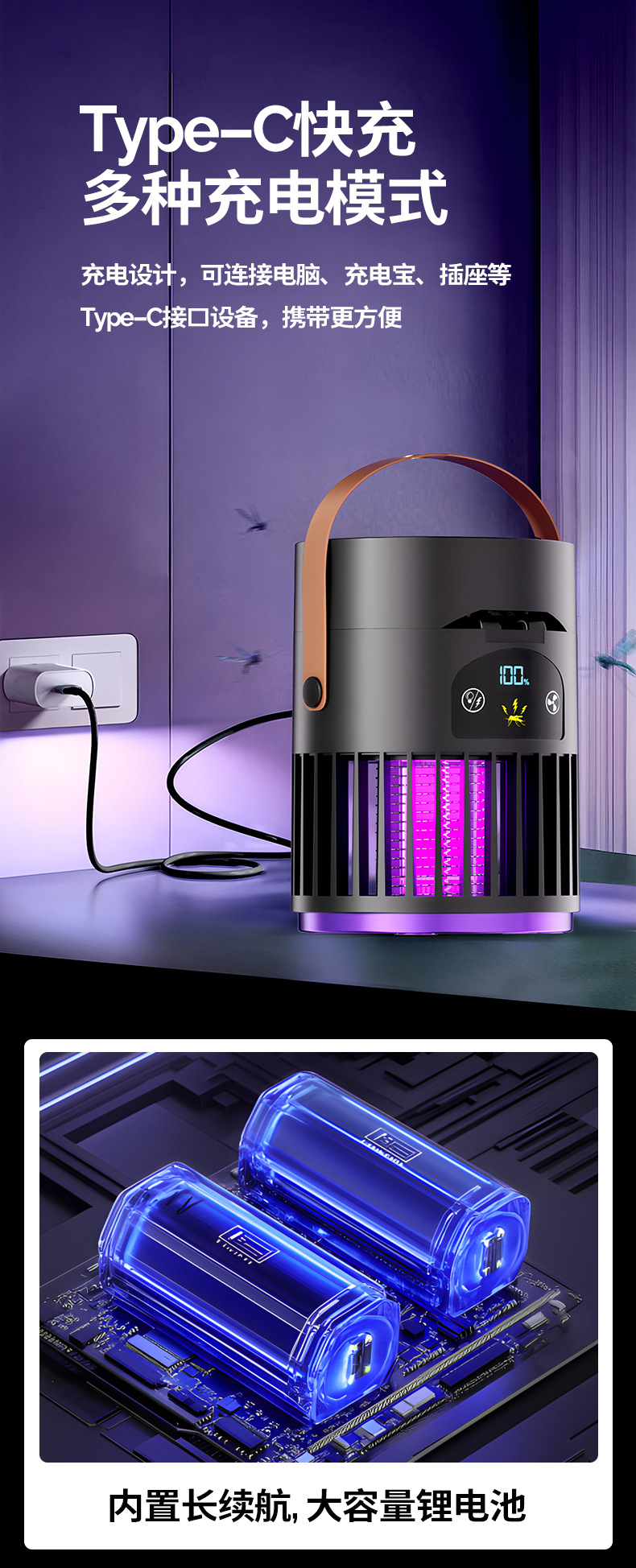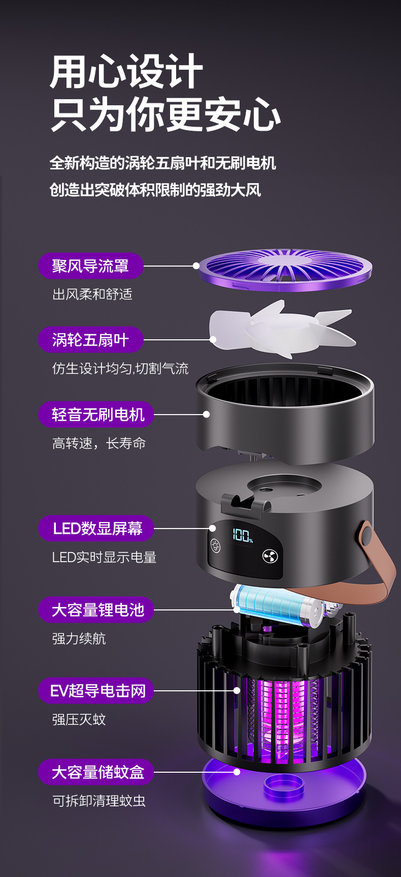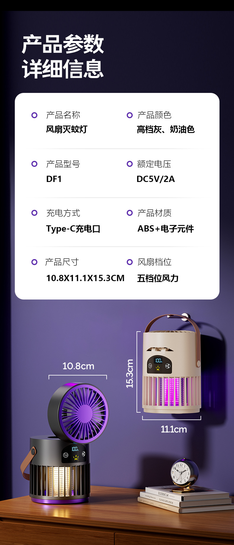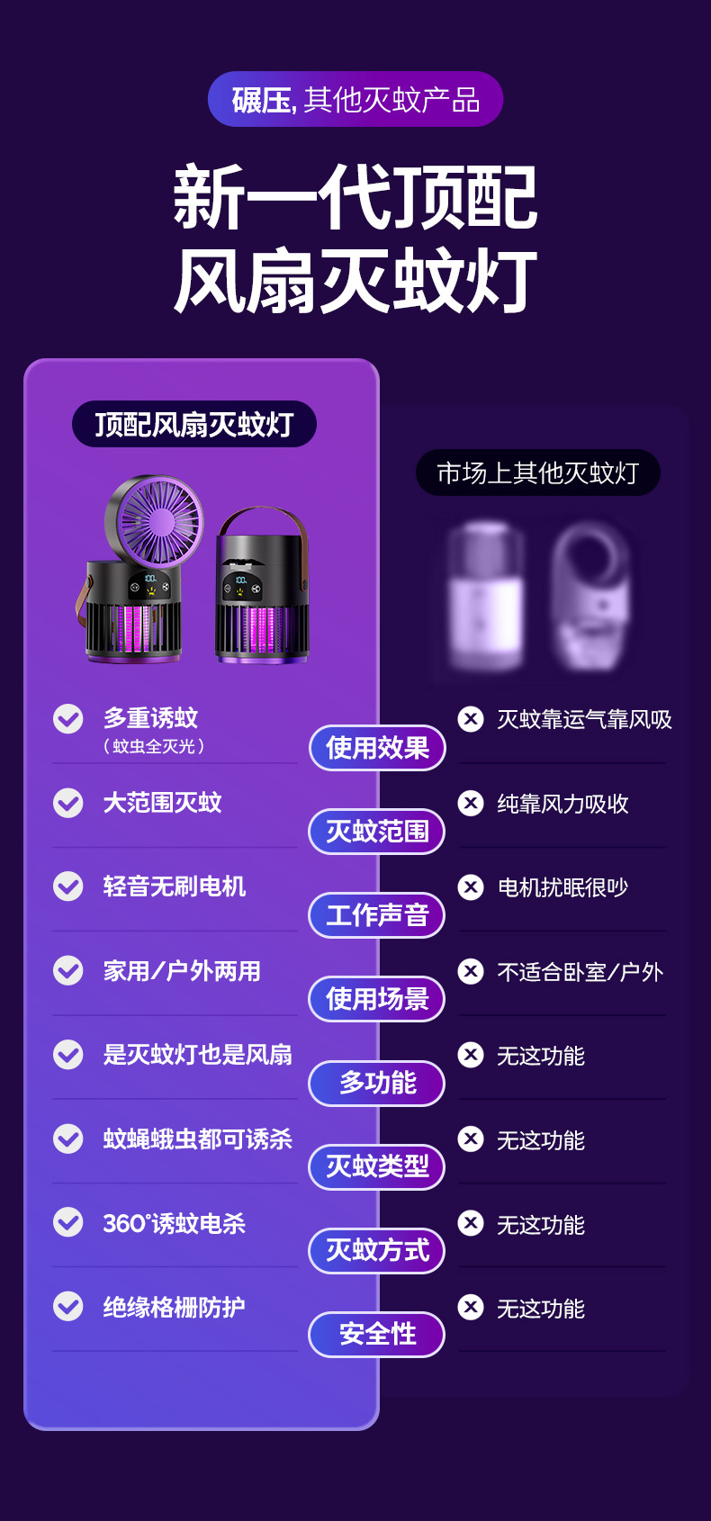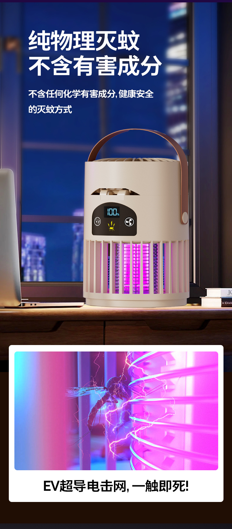 新款风扇灭蚊灯二合一多功能户外露营家用灭蚊器桌面风扇跨境批发
