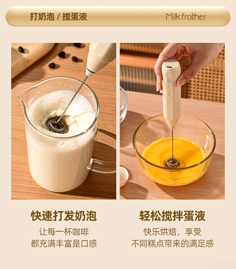 新款电动奶泡器家用小型无线电动打蛋器搅拌器迷你牛奶咖啡起泡机