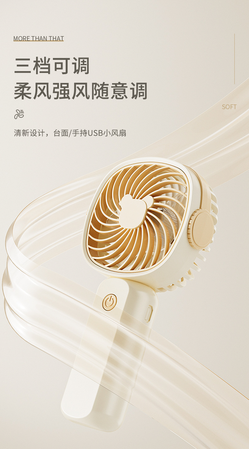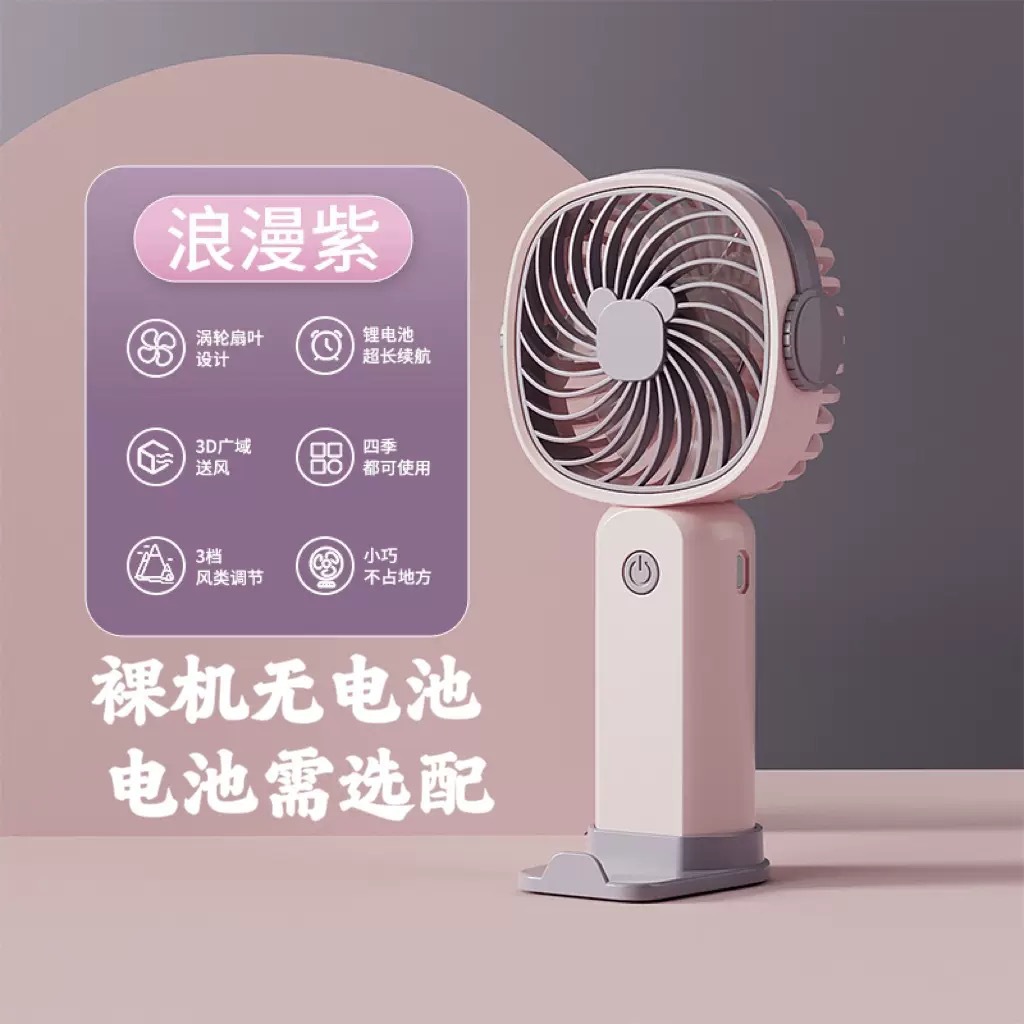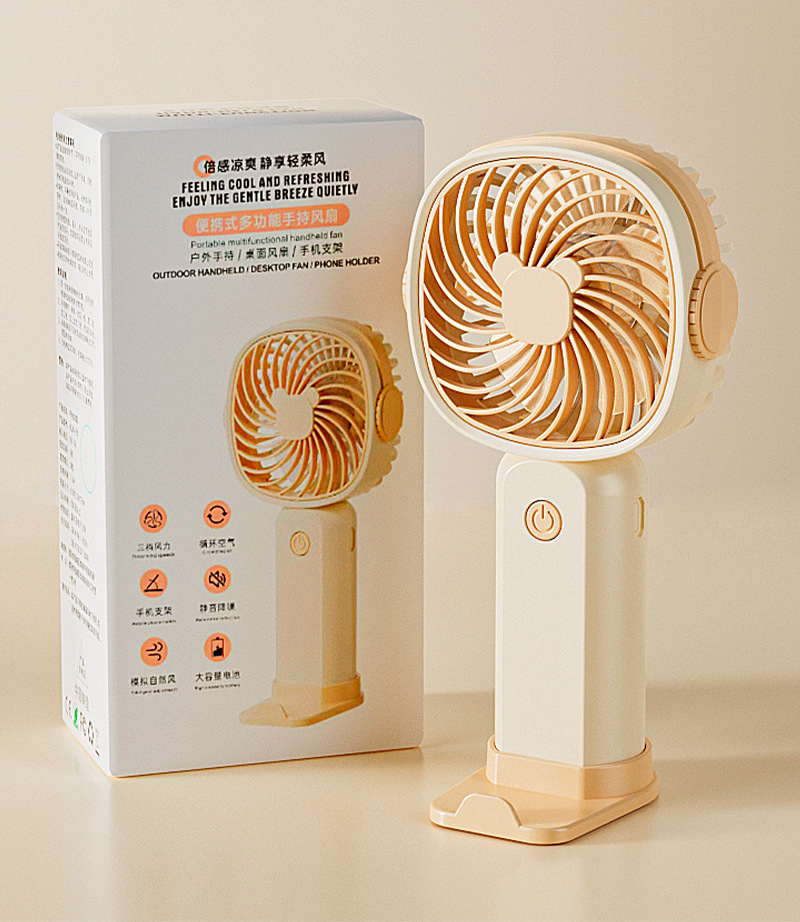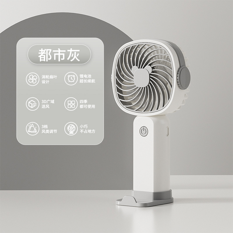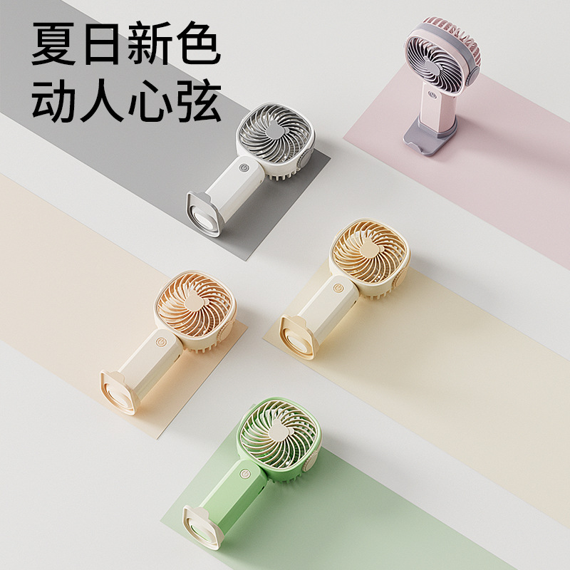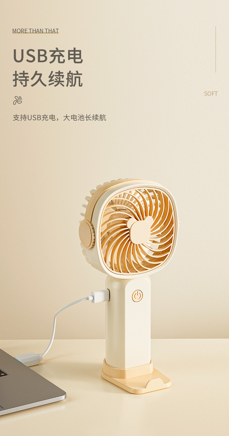 手持小风扇迷你便携usb充电桌面风扇大风力带手机架跨境礼品批发