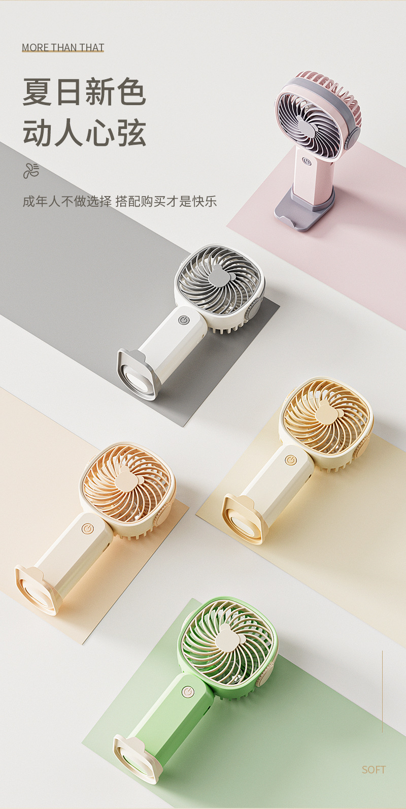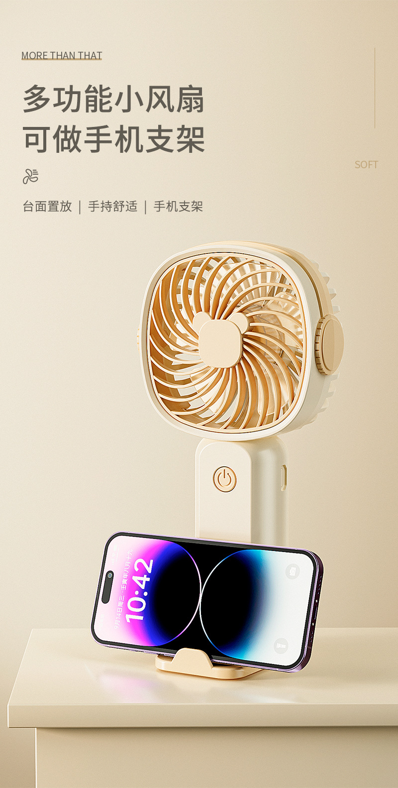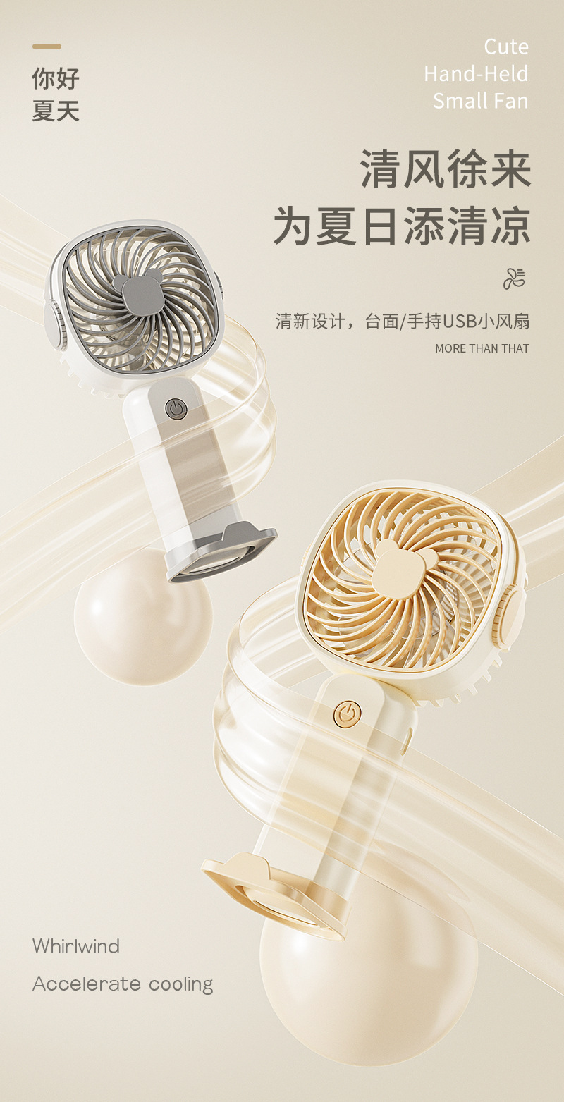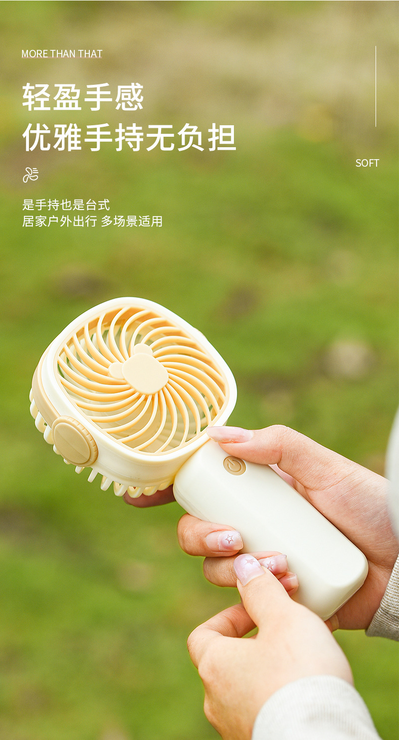 手持小风扇迷你便携usb充电桌面风扇大风力带手机架跨境礼品批发