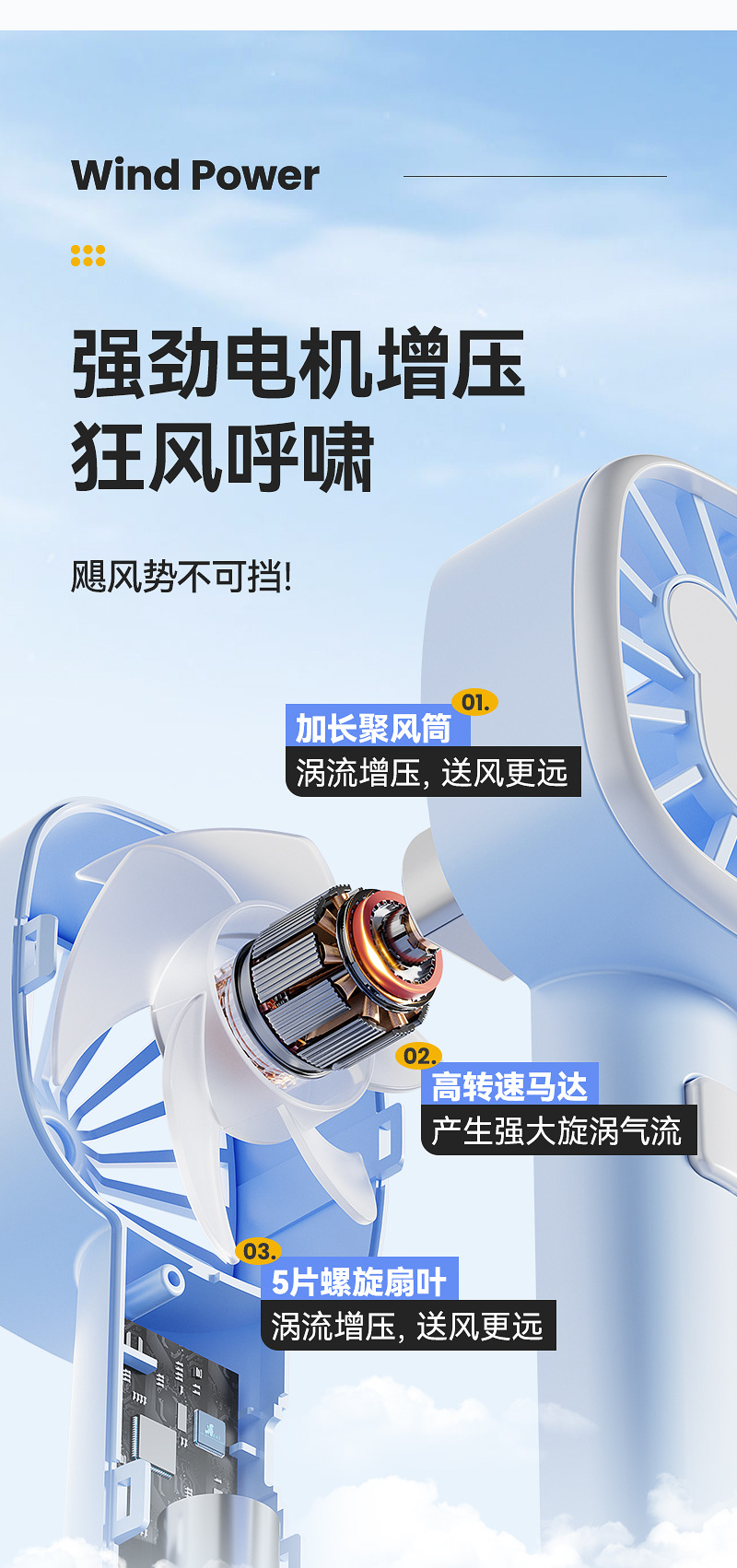 手持小风扇迷你便携式涡轮小风扇usb充电桌面小风扇跨境礼品批发