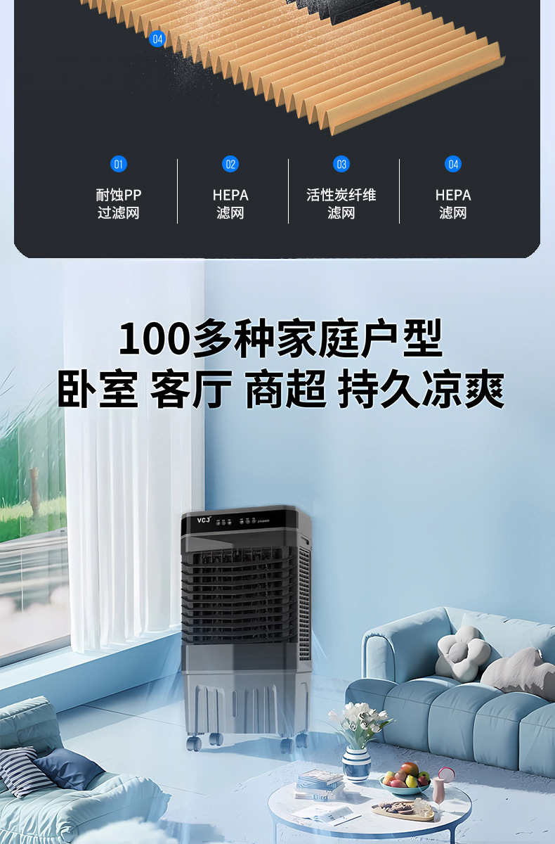 VCJ冷风机家用空调扇制冷风扇加水小空调工业冷气扇水空调商用