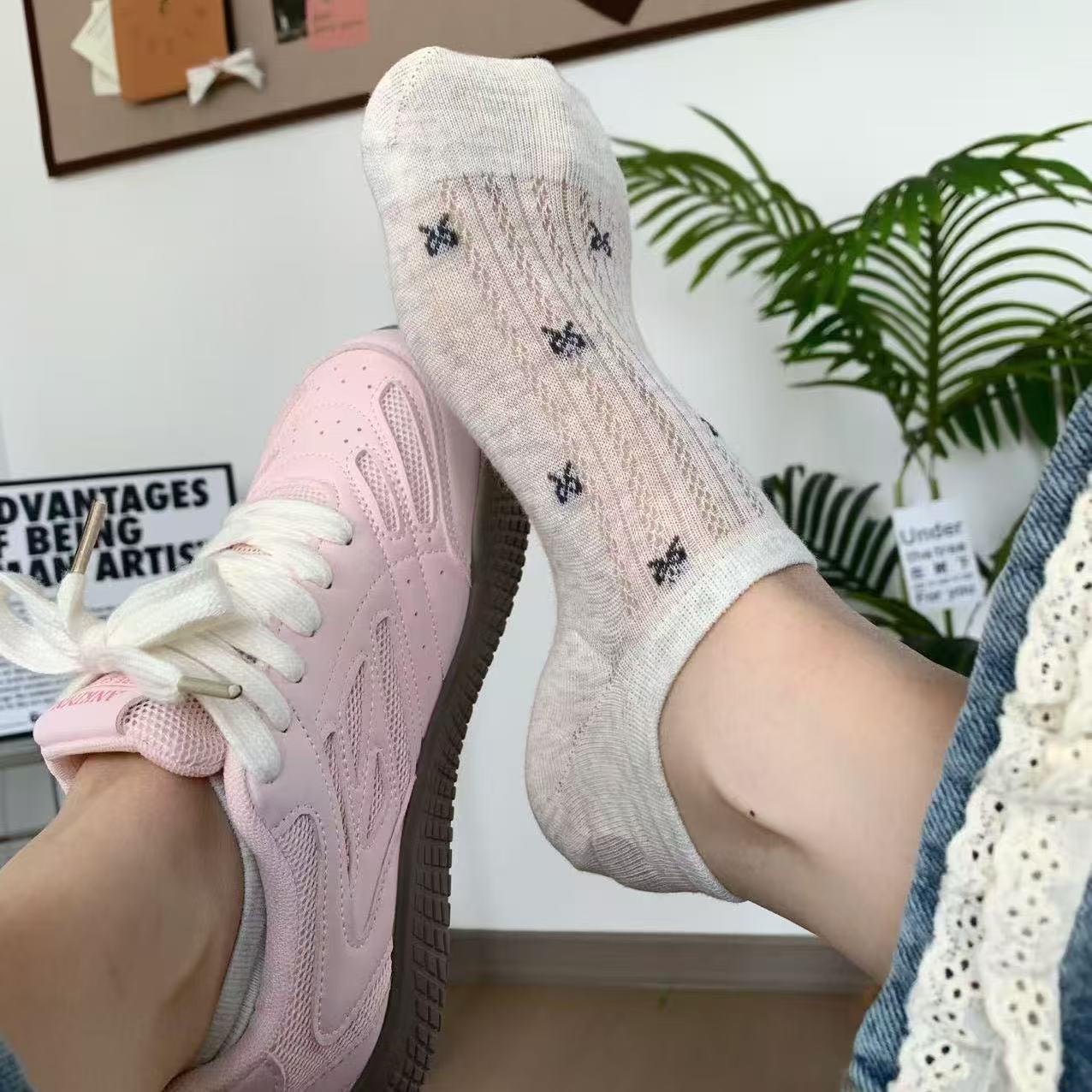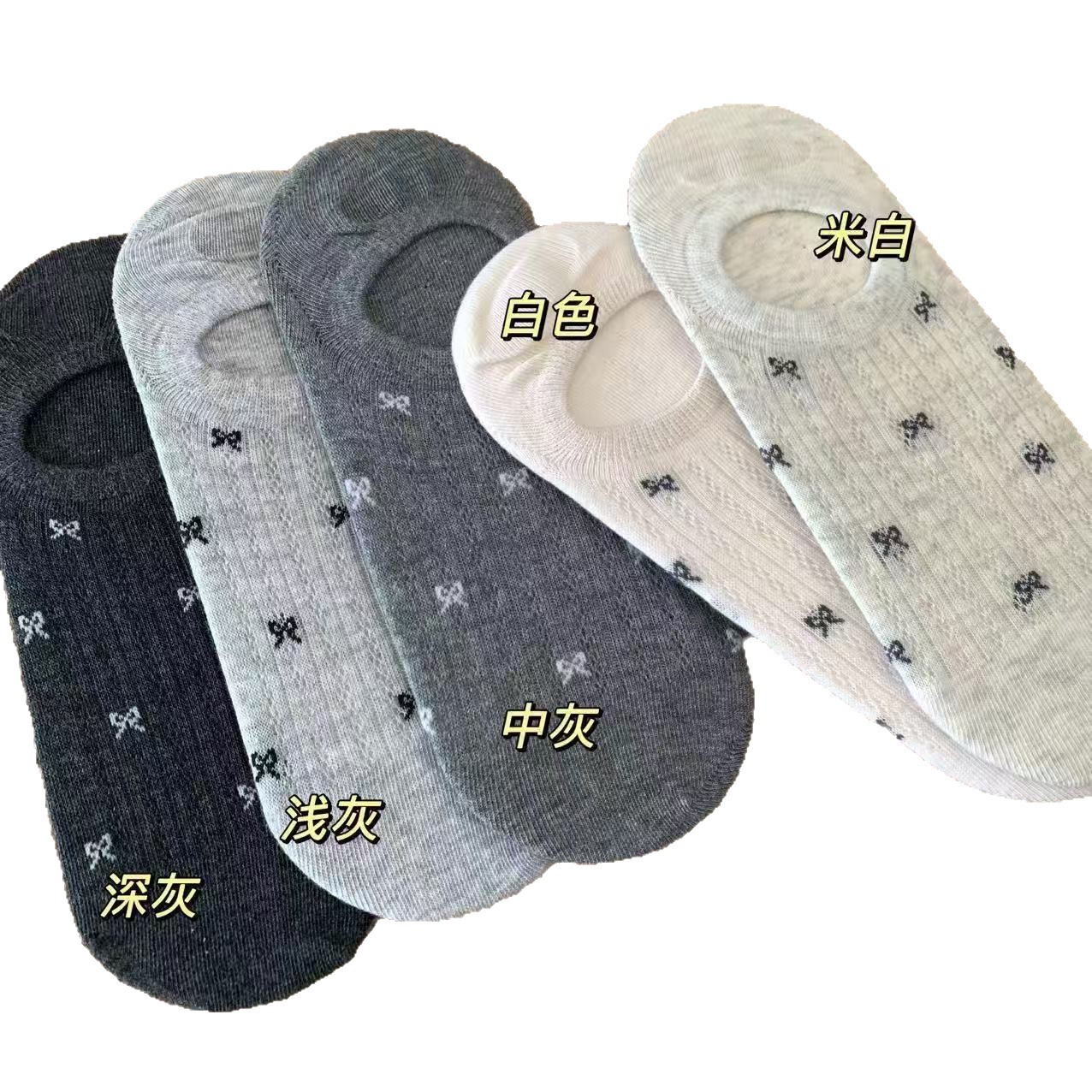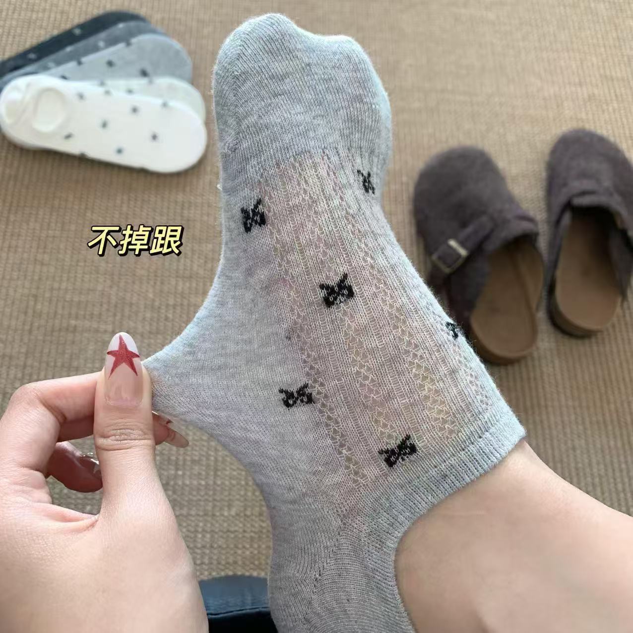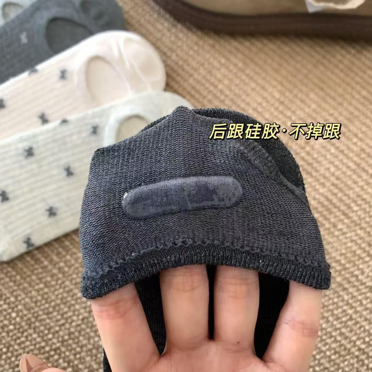 透气网眼隐形船袜女 浅口防滑短袜 复古刺绣短袜