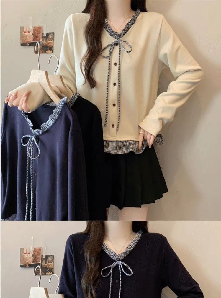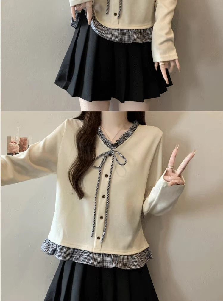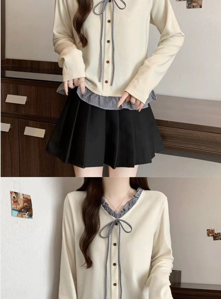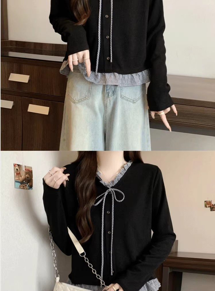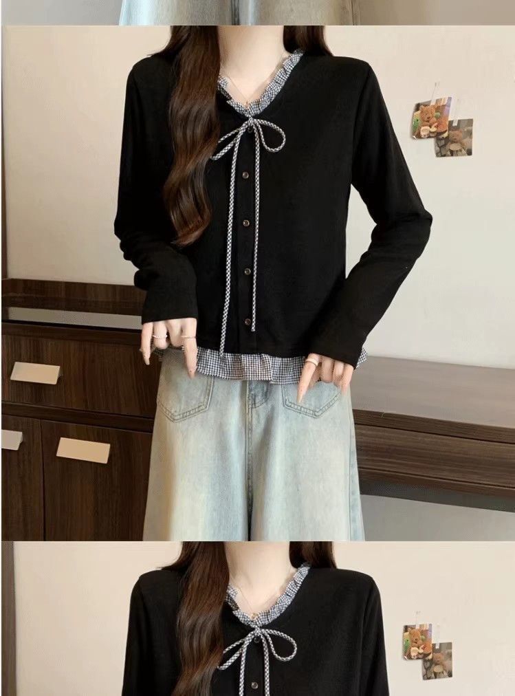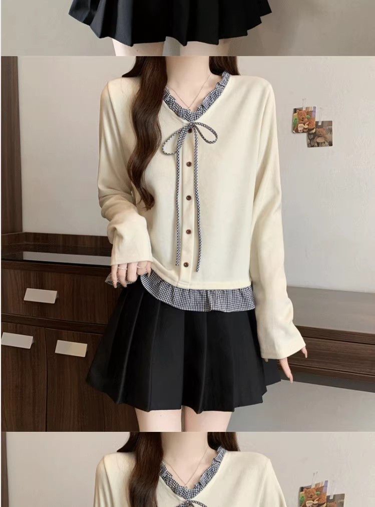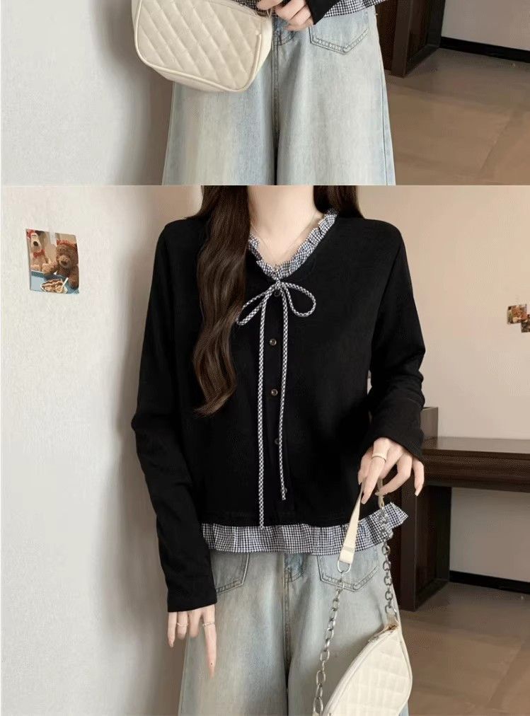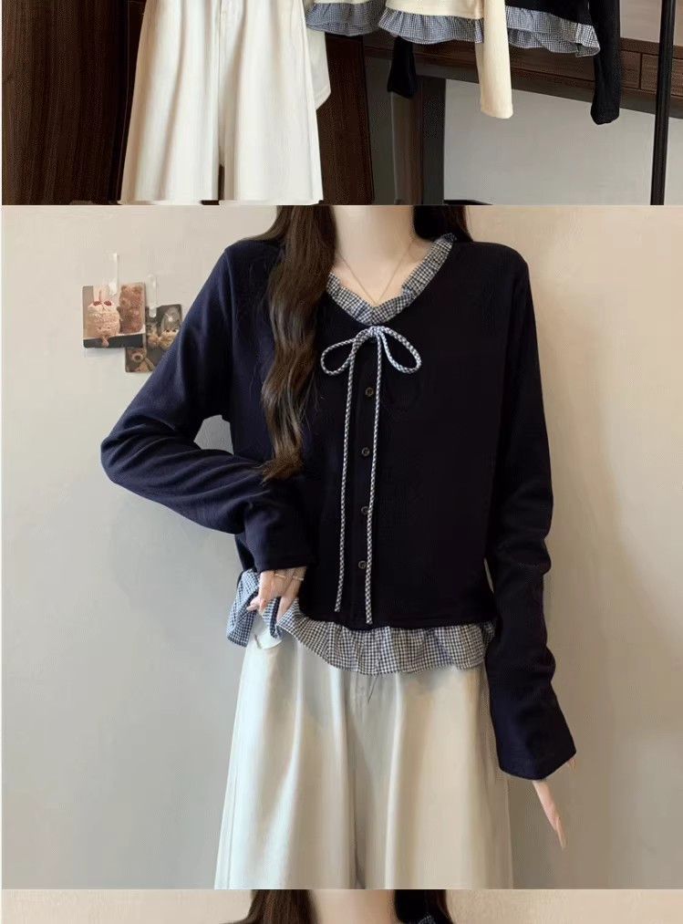 大码德绒木耳边V领假两件长袖衬衫女秋冬季新款胖mm显瘦遮肉上衣