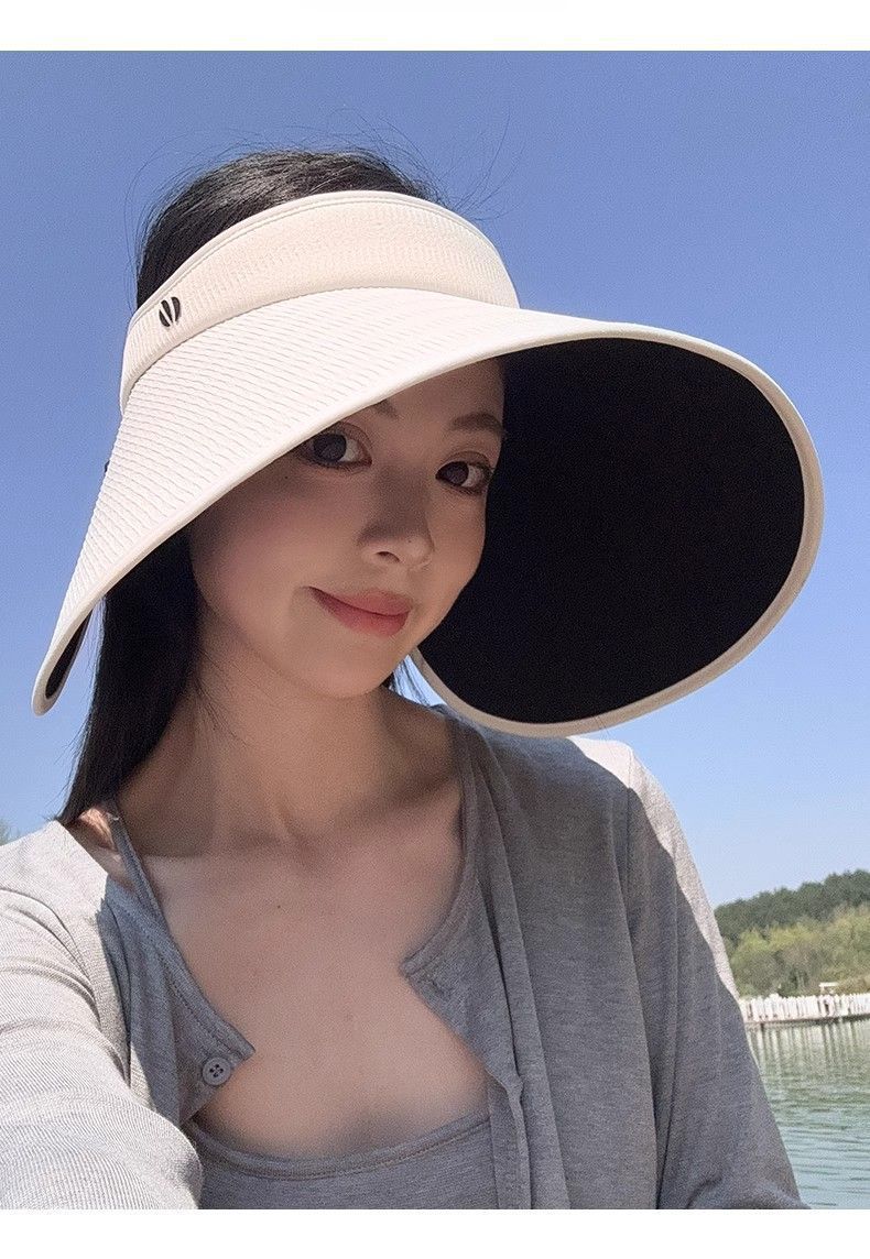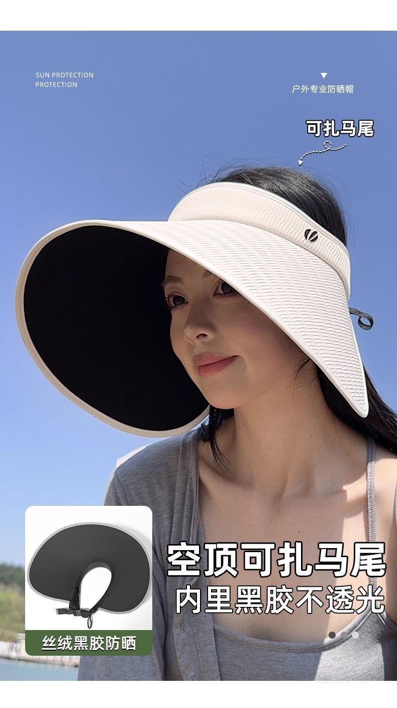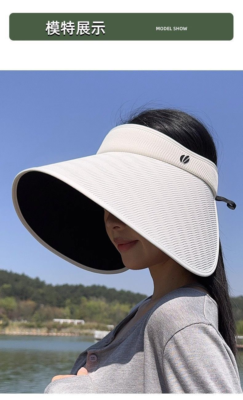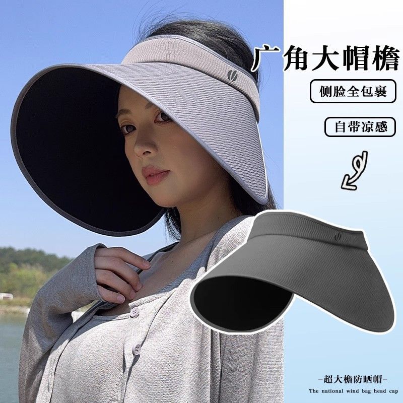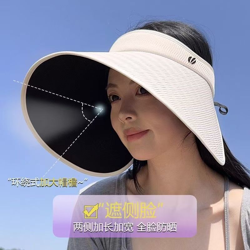 批发蕉下同款夏季加大檐UV防紫外线空顶帽子女遮阳防晒黑胶灯罩帽