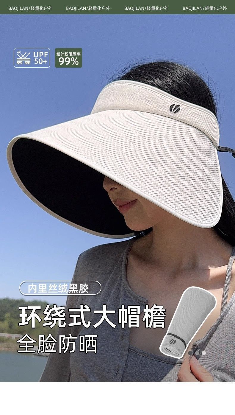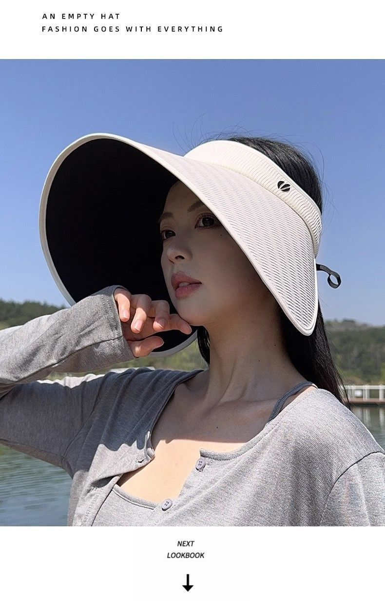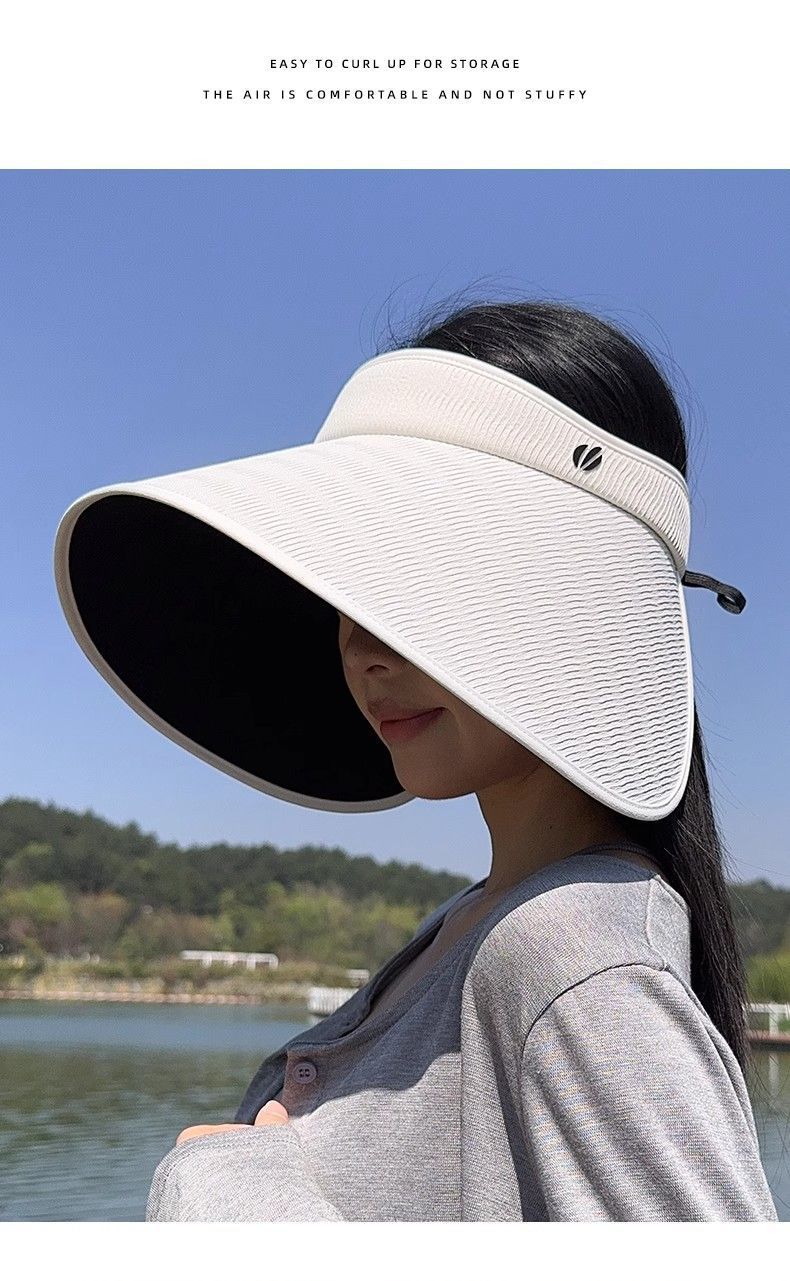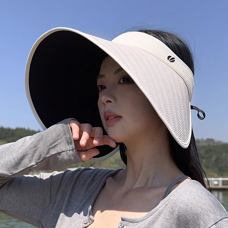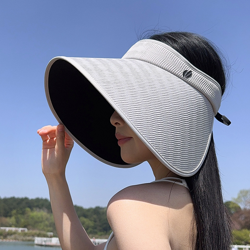 批发蕉下同款夏季加大檐UV防紫外线空顶帽子女遮阳防晒黑胶灯罩帽