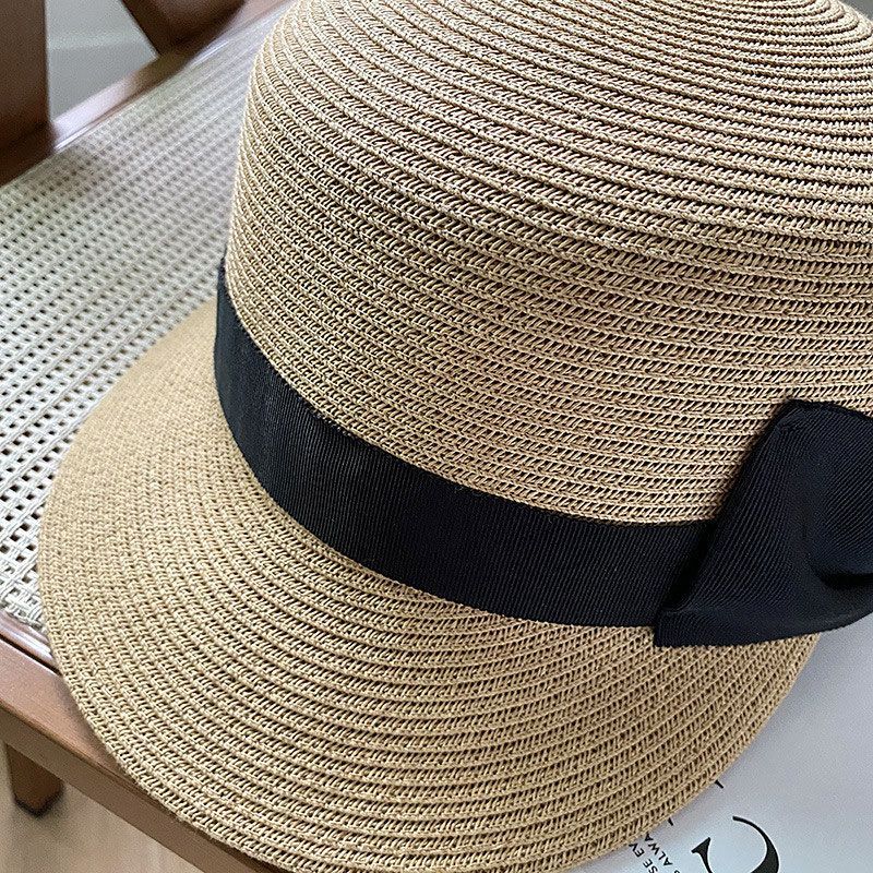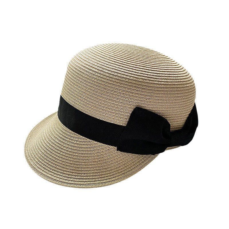 显脸小减龄蝴蝶结圆顶草编鸭舌帽女夏季草帽出游防晒遮阳马术帽子