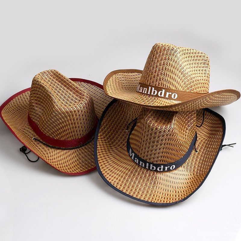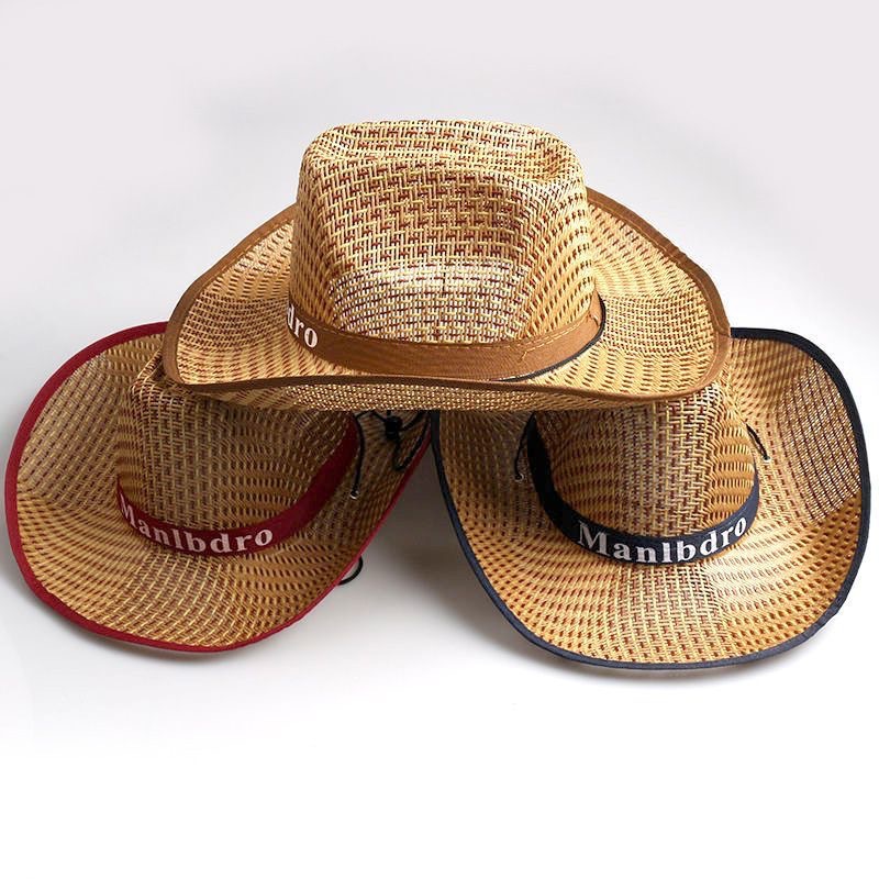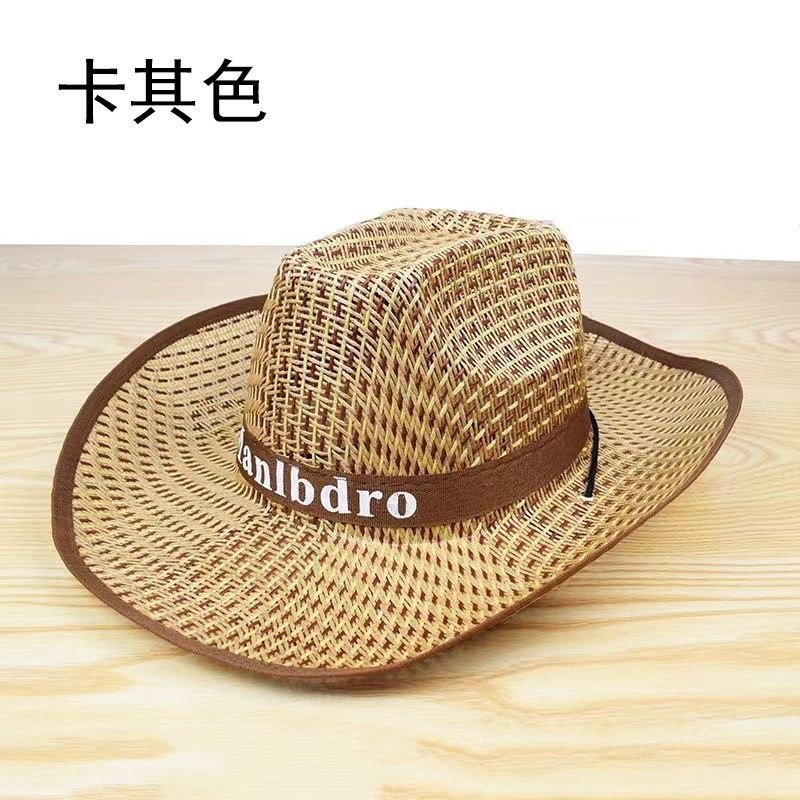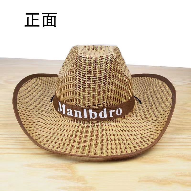 时尚民族风草帽男款夏季草编镂空大檐遮阳帽牛仔帽户外透气钓鱼帽