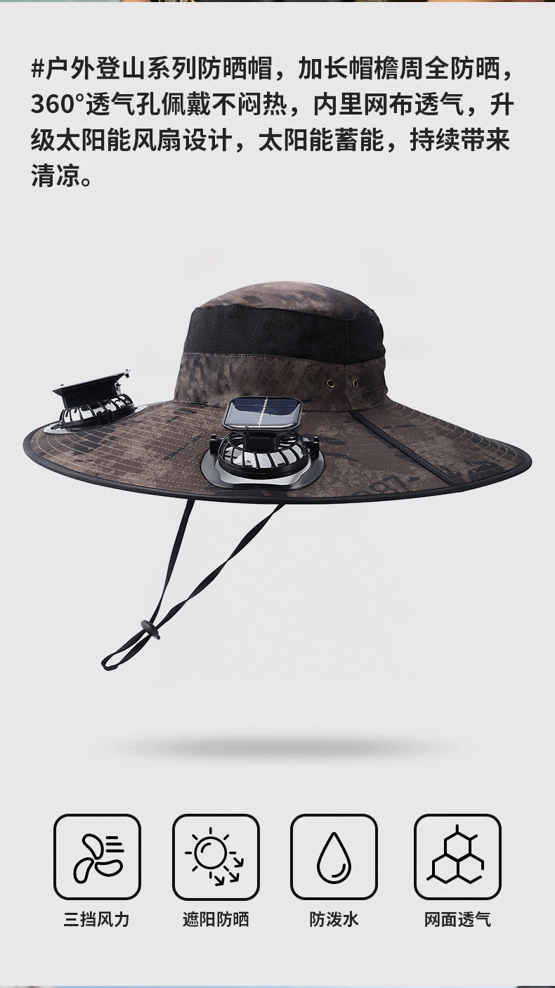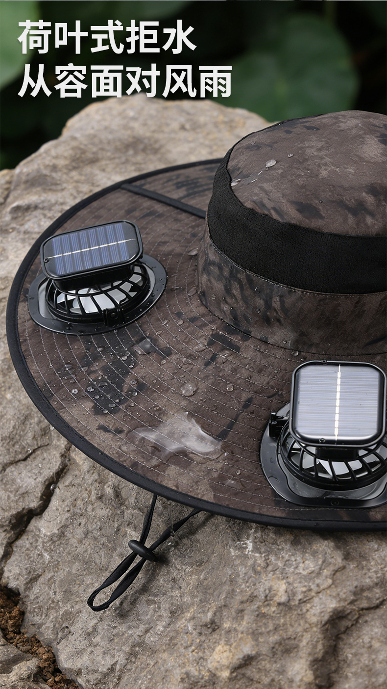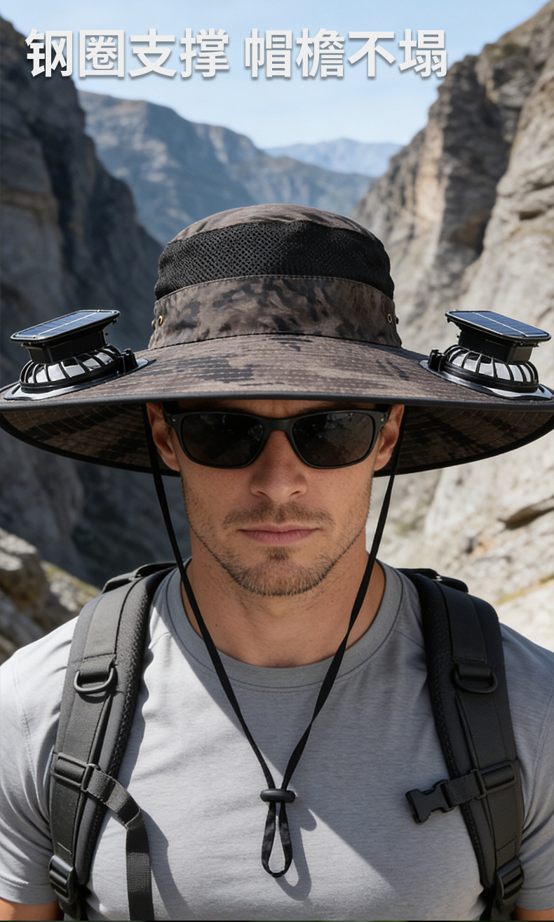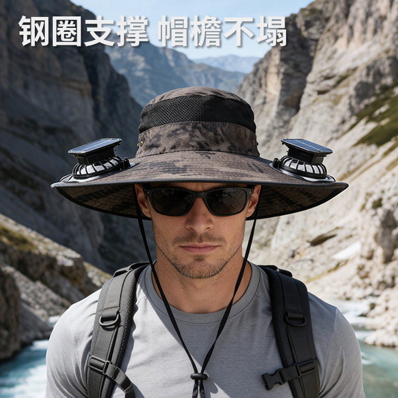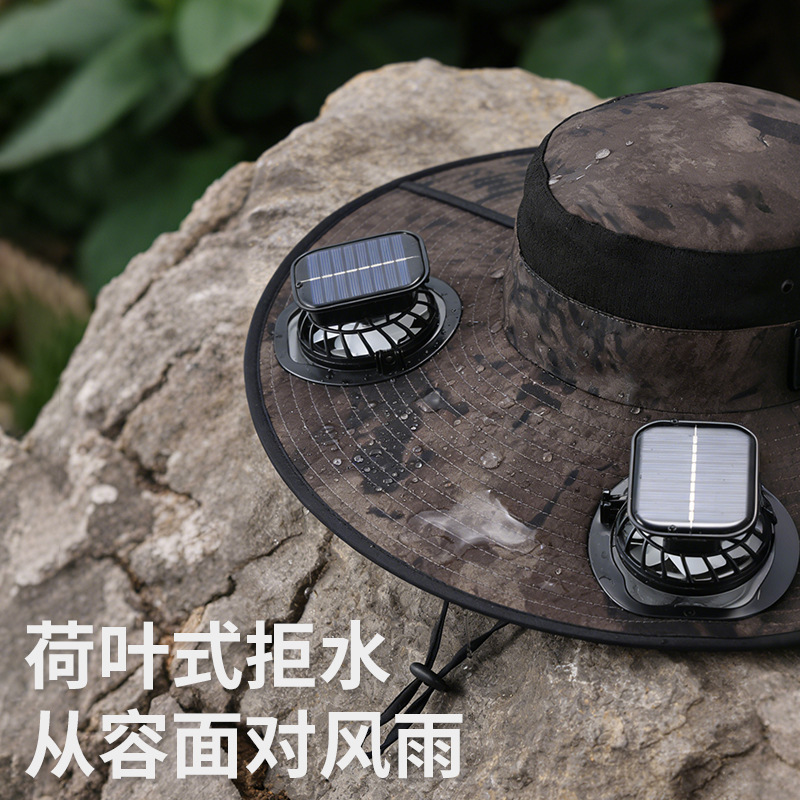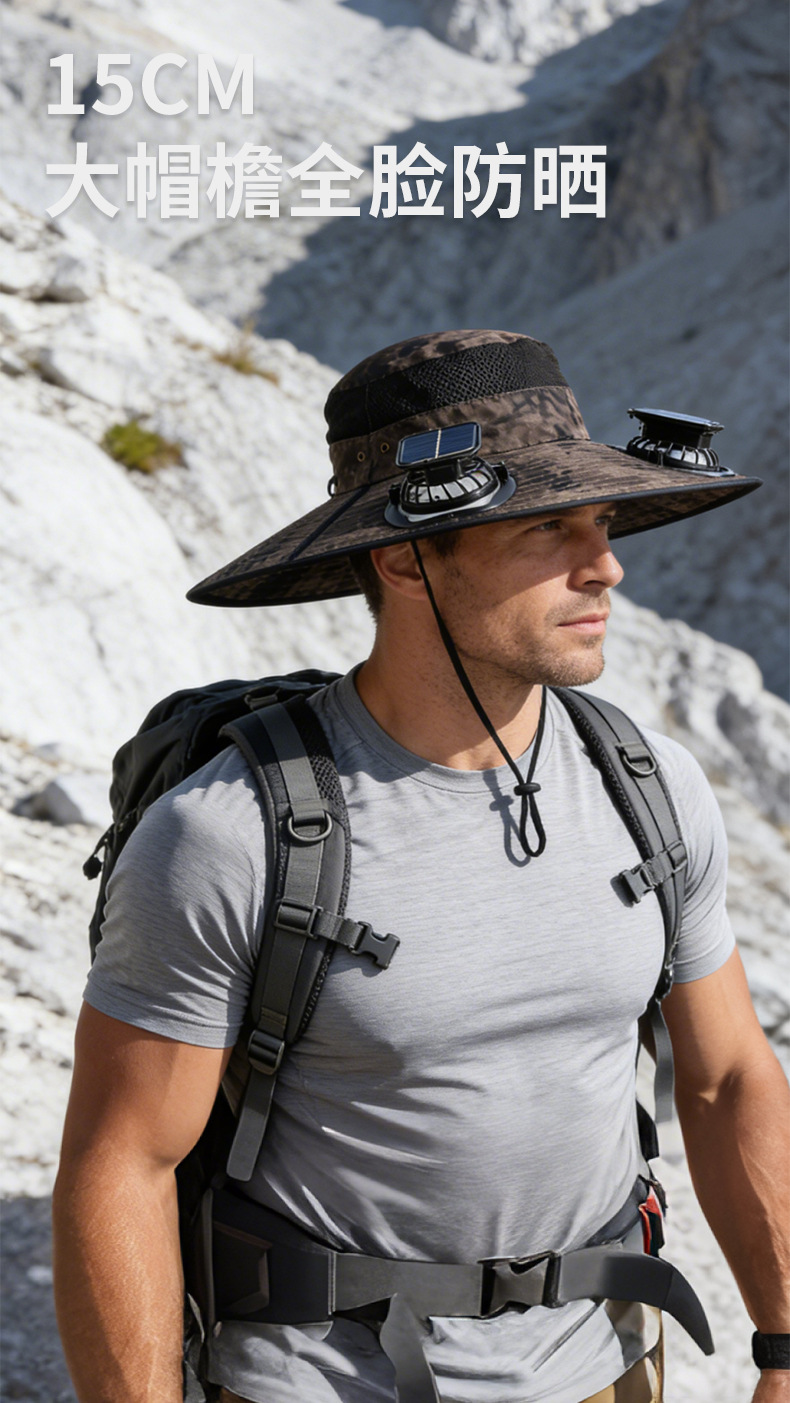 太阳能风扇帽高续航静音男夏季户外登山钓鱼帽子大帽檐防水防晒帽