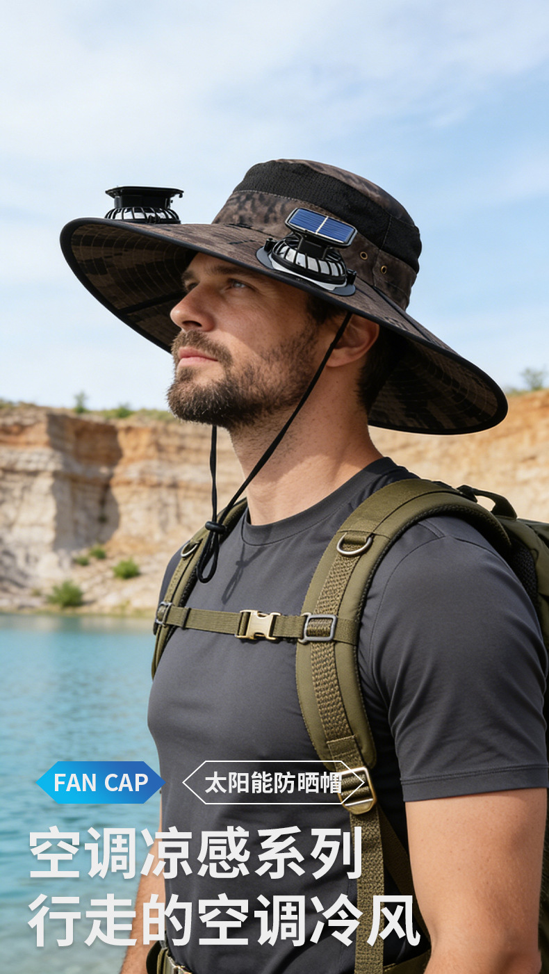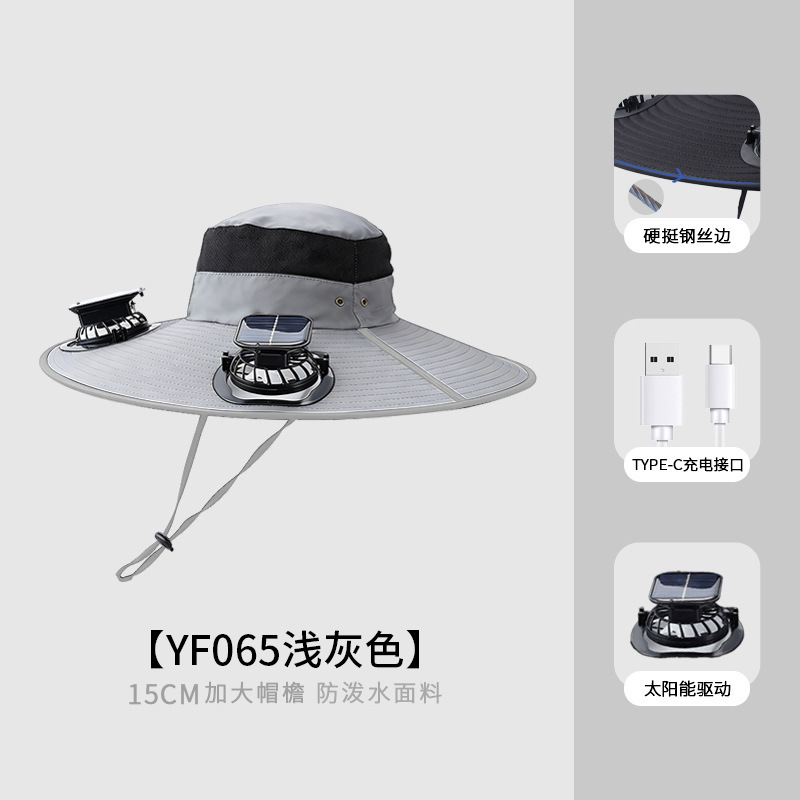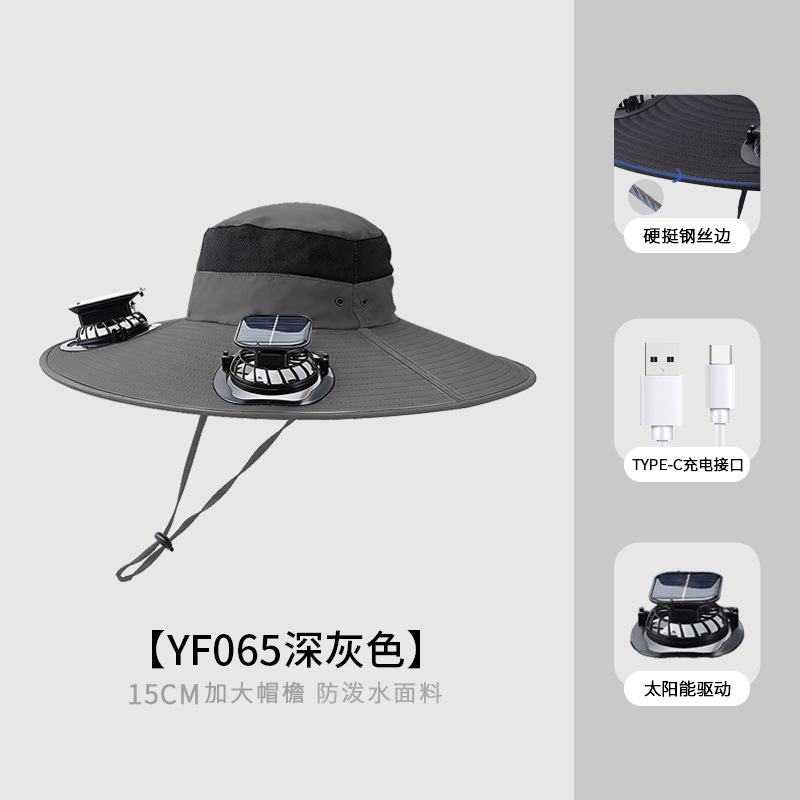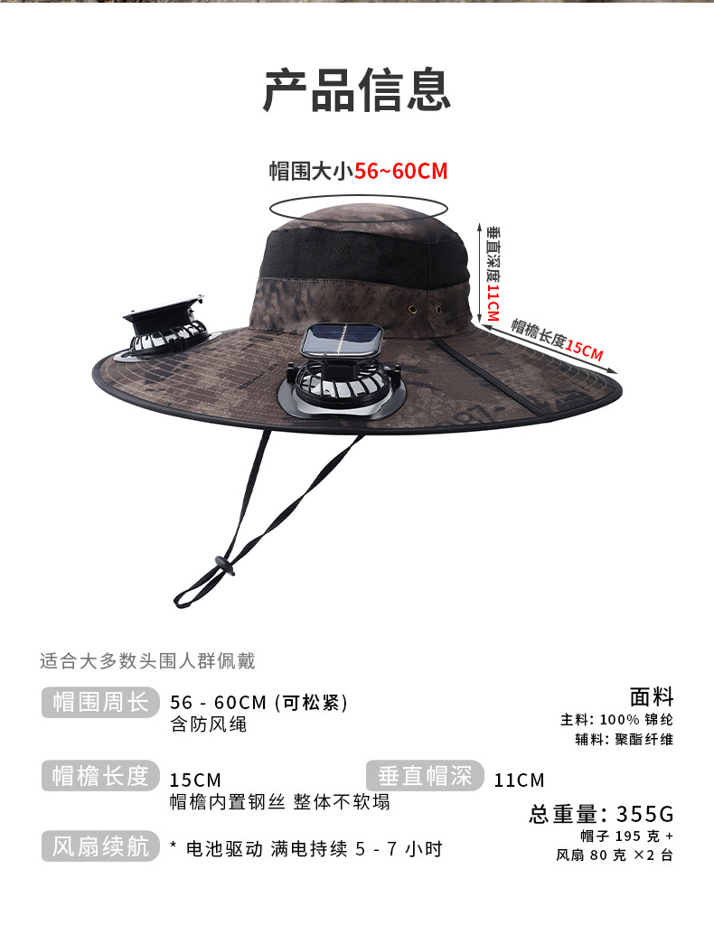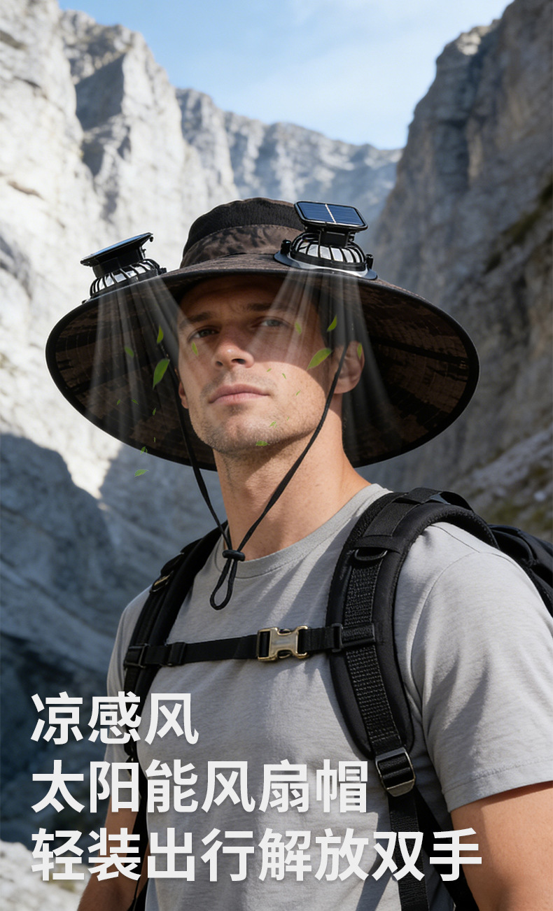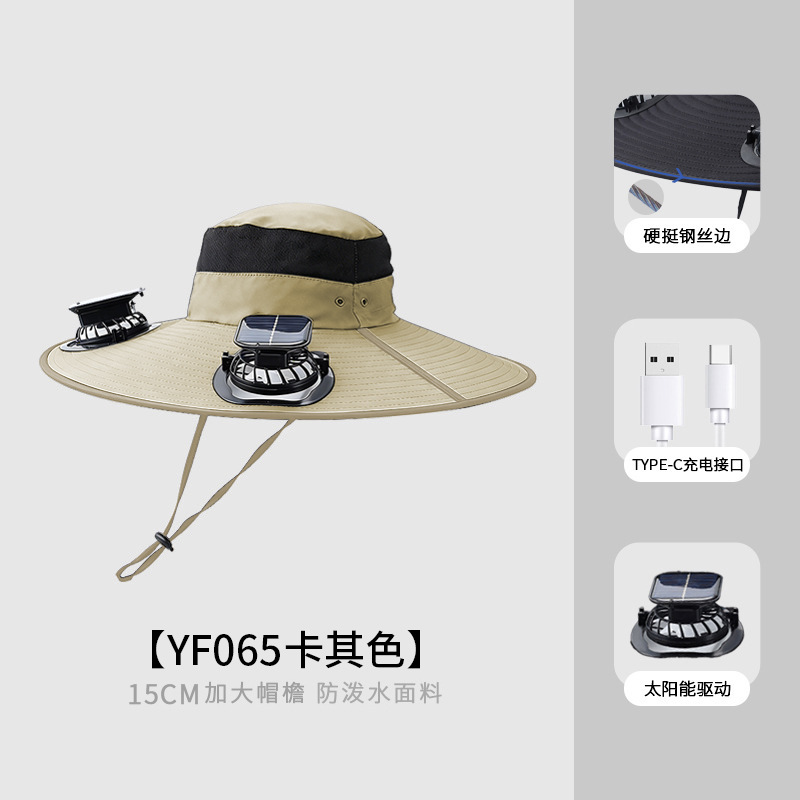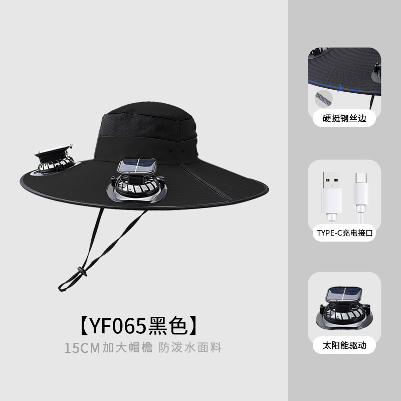 太阳能风扇帽高续航静音男夏季户外登山钓鱼帽子大帽檐防水防晒帽