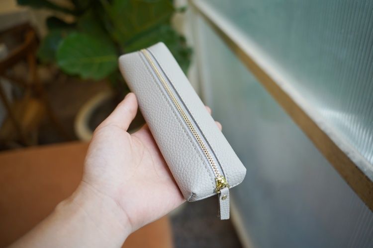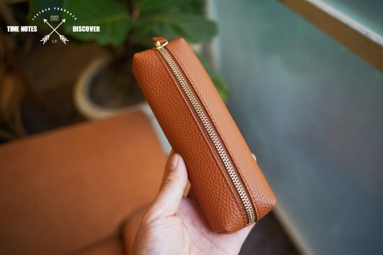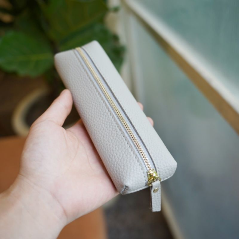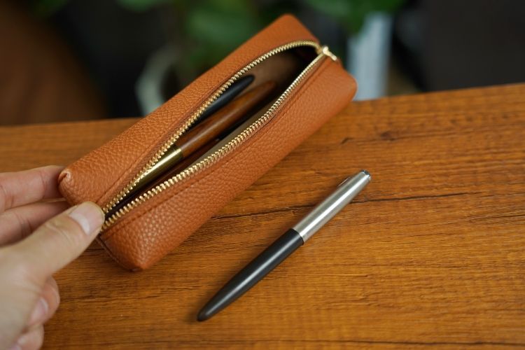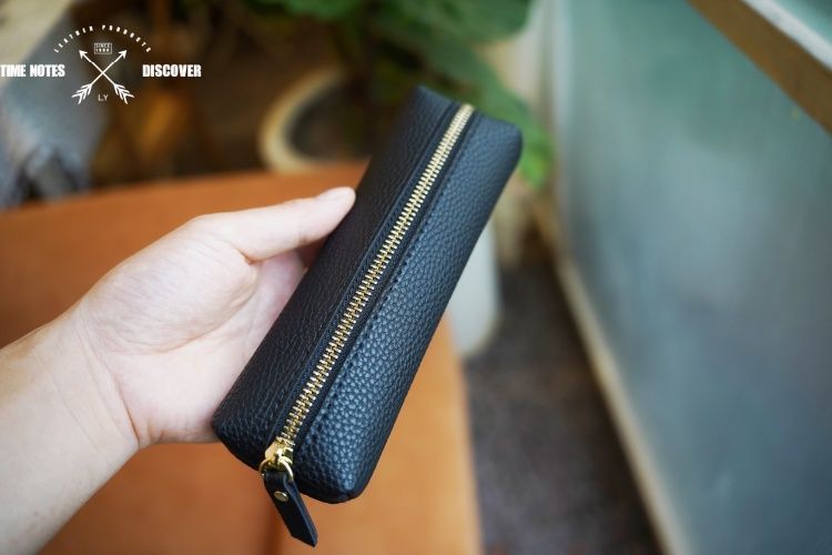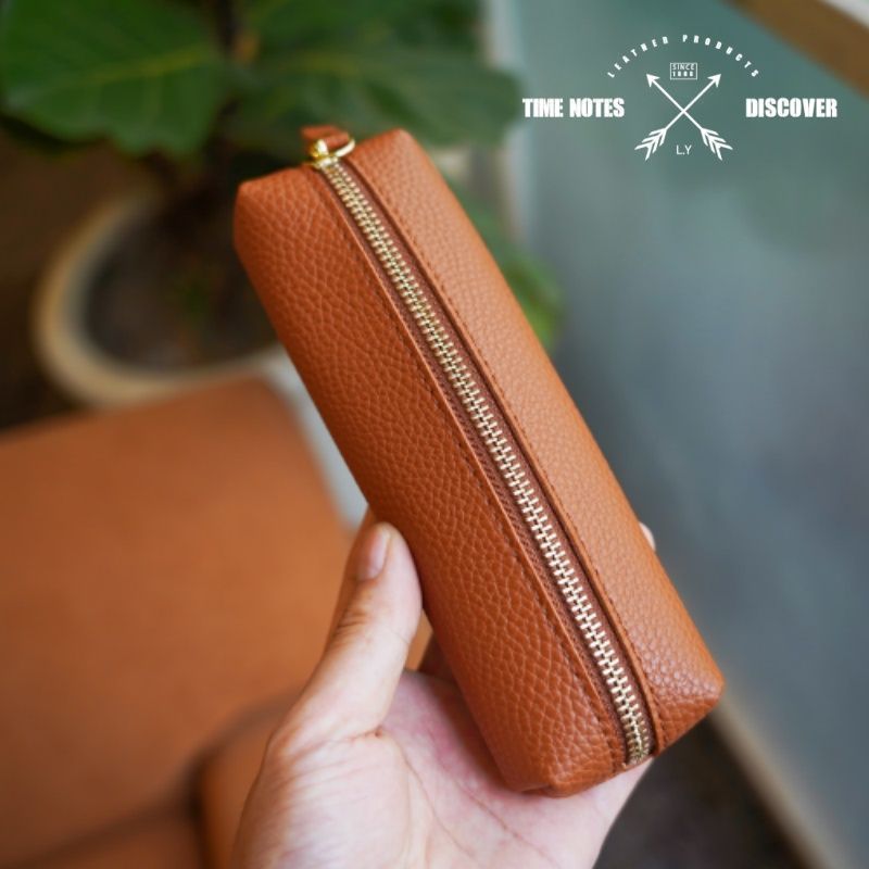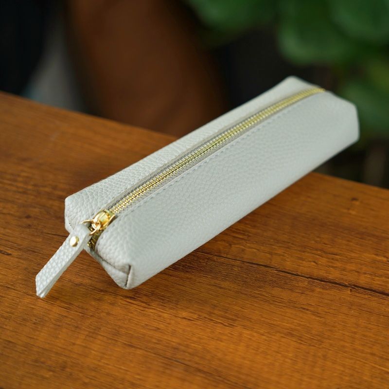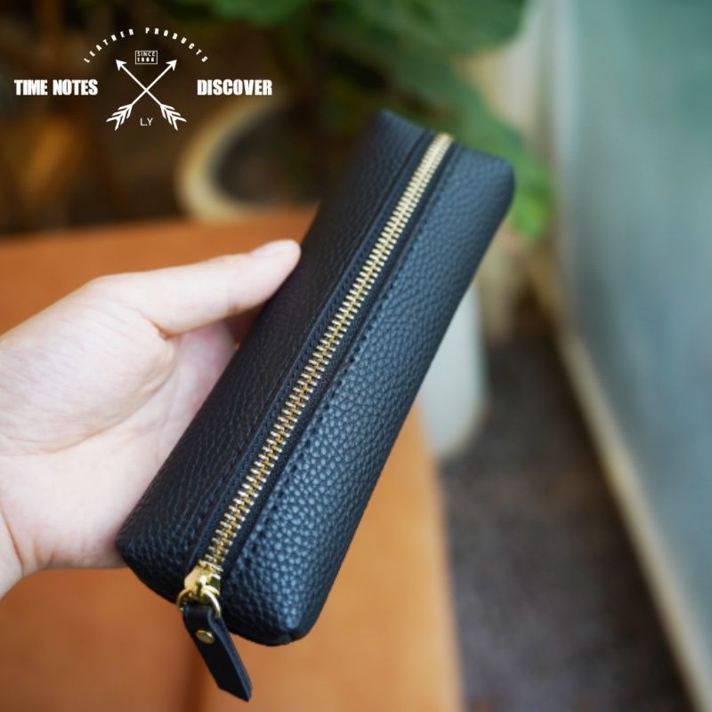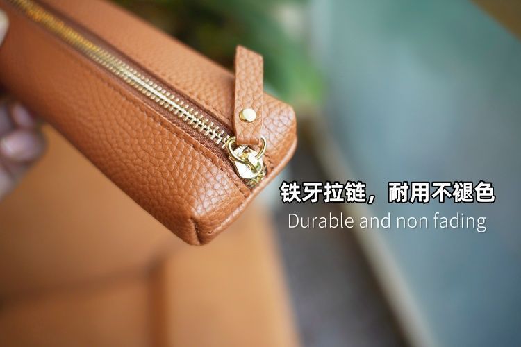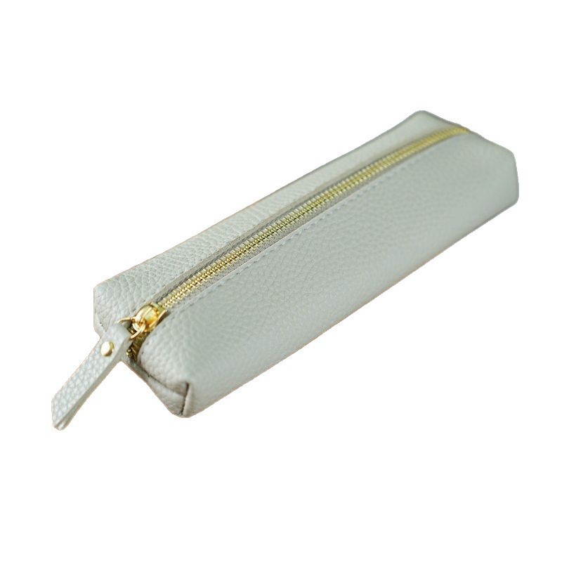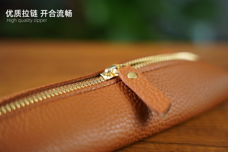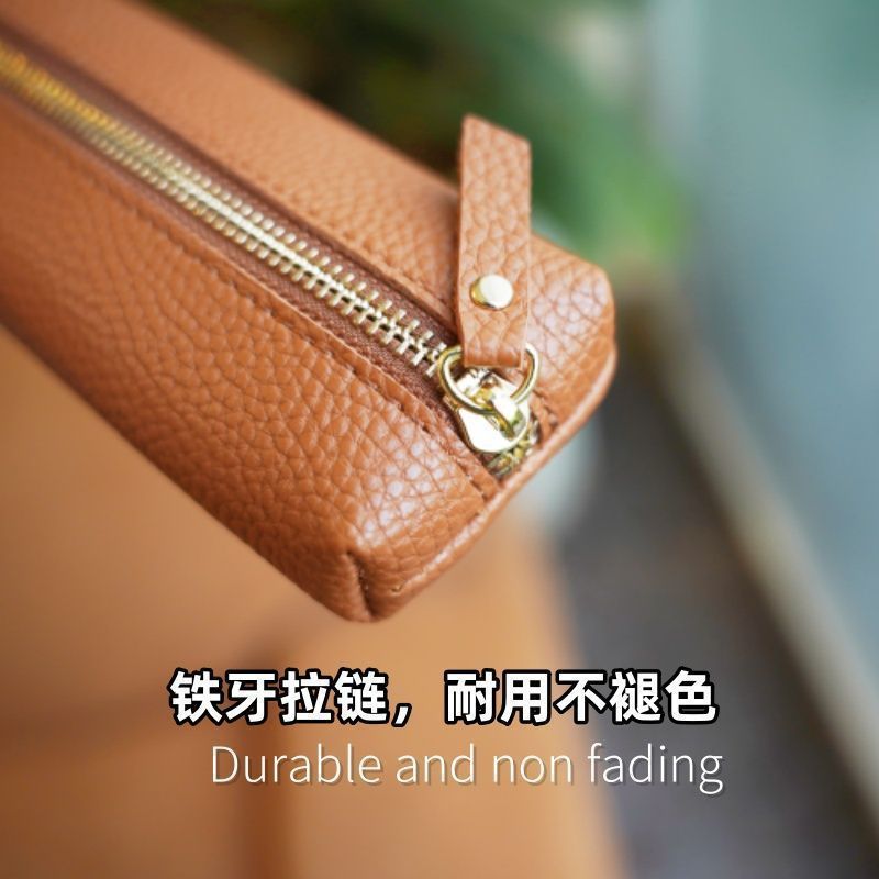 简约皮质笔袋商务办公钢笔收纳袋签字笔便携式防漏拉链款文具袋