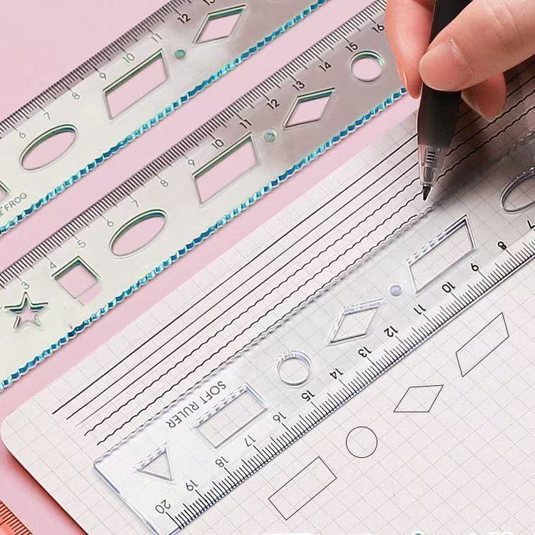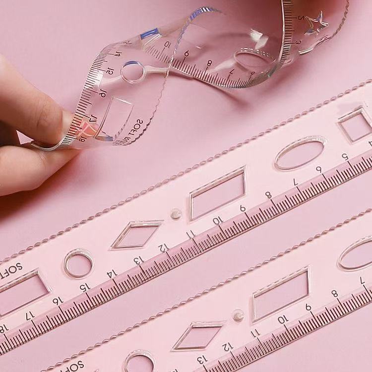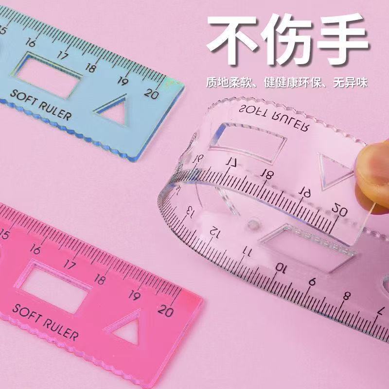 软尺小学生直尺测量20cm带波浪线可弯曲多功能尺子曲线防断绘图
