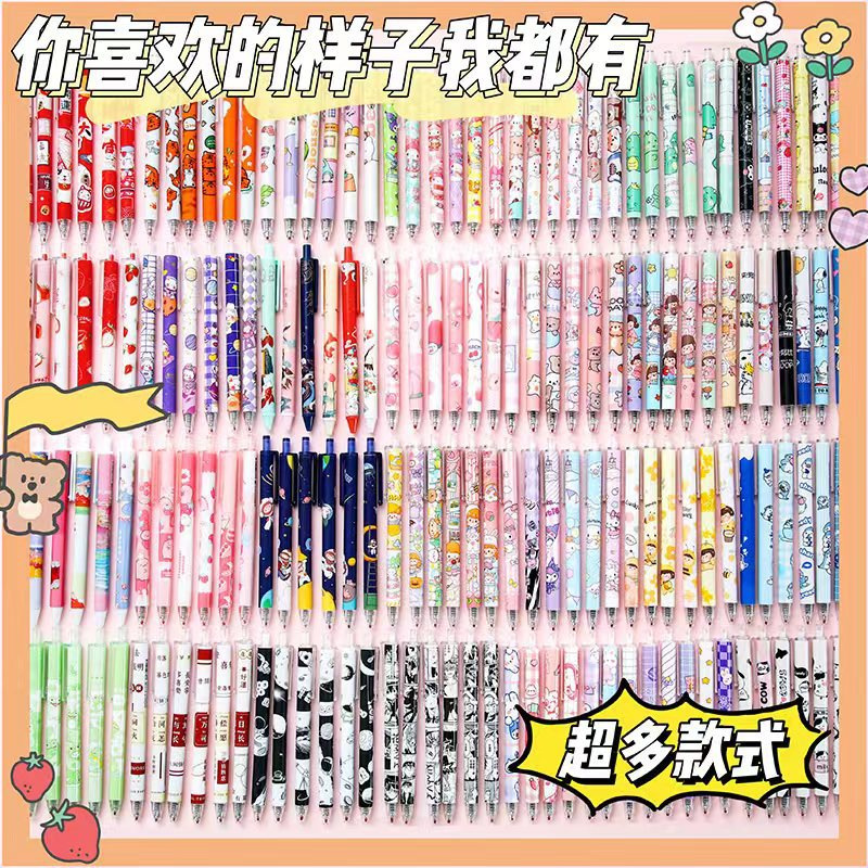 按动笔可爱风笔高颜值学生按压式0.5中性笔刷题笔圆珠笔黑笔批发