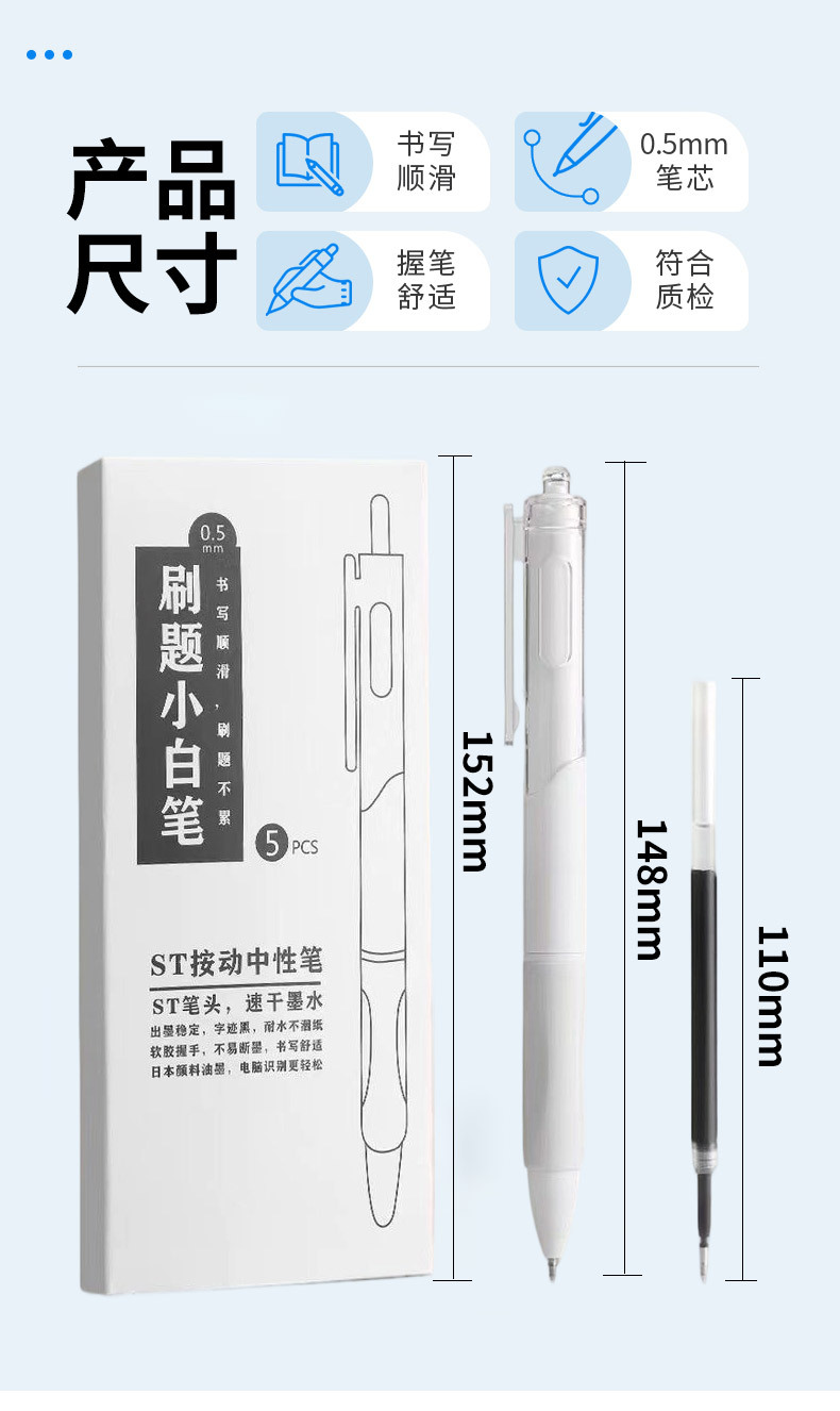 st头刷题笔小白笔速干笔按动中性笔高颜值办公用品学生文具签字笔