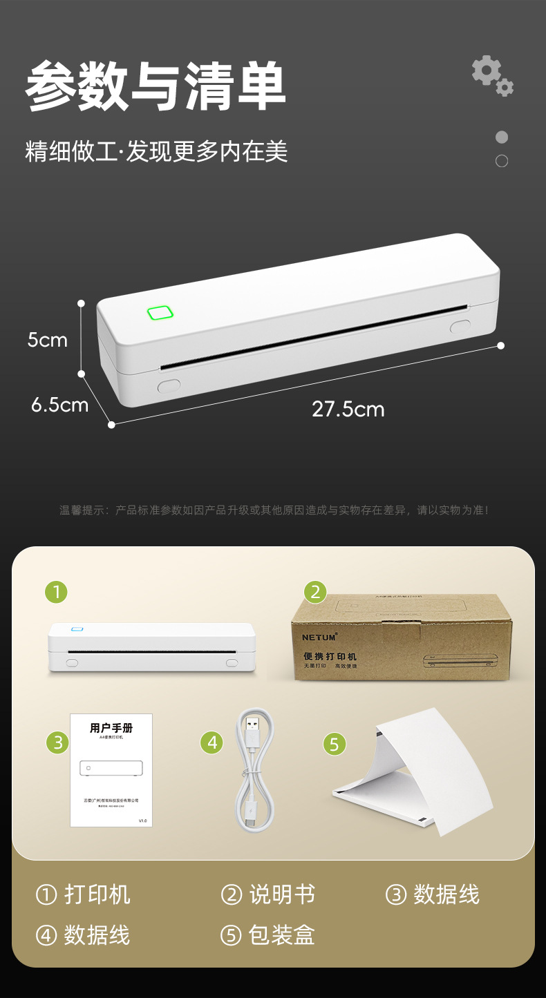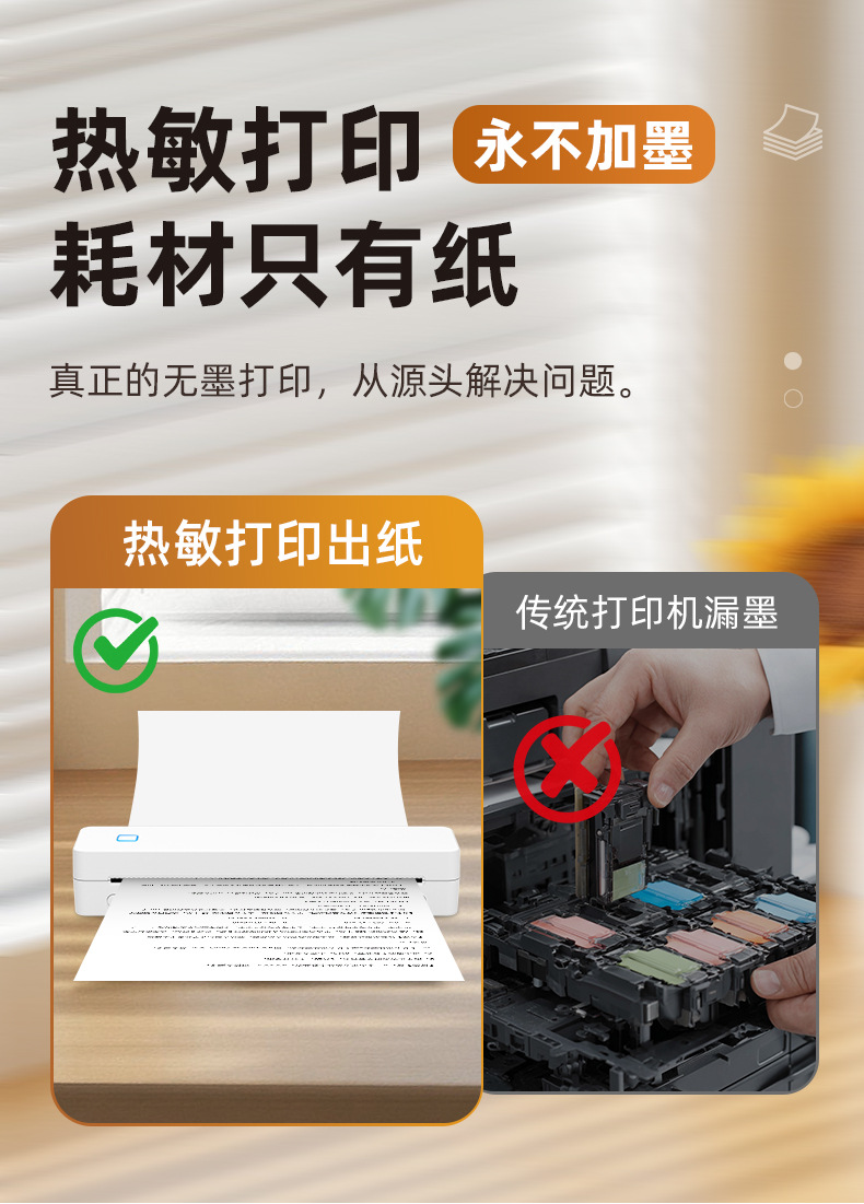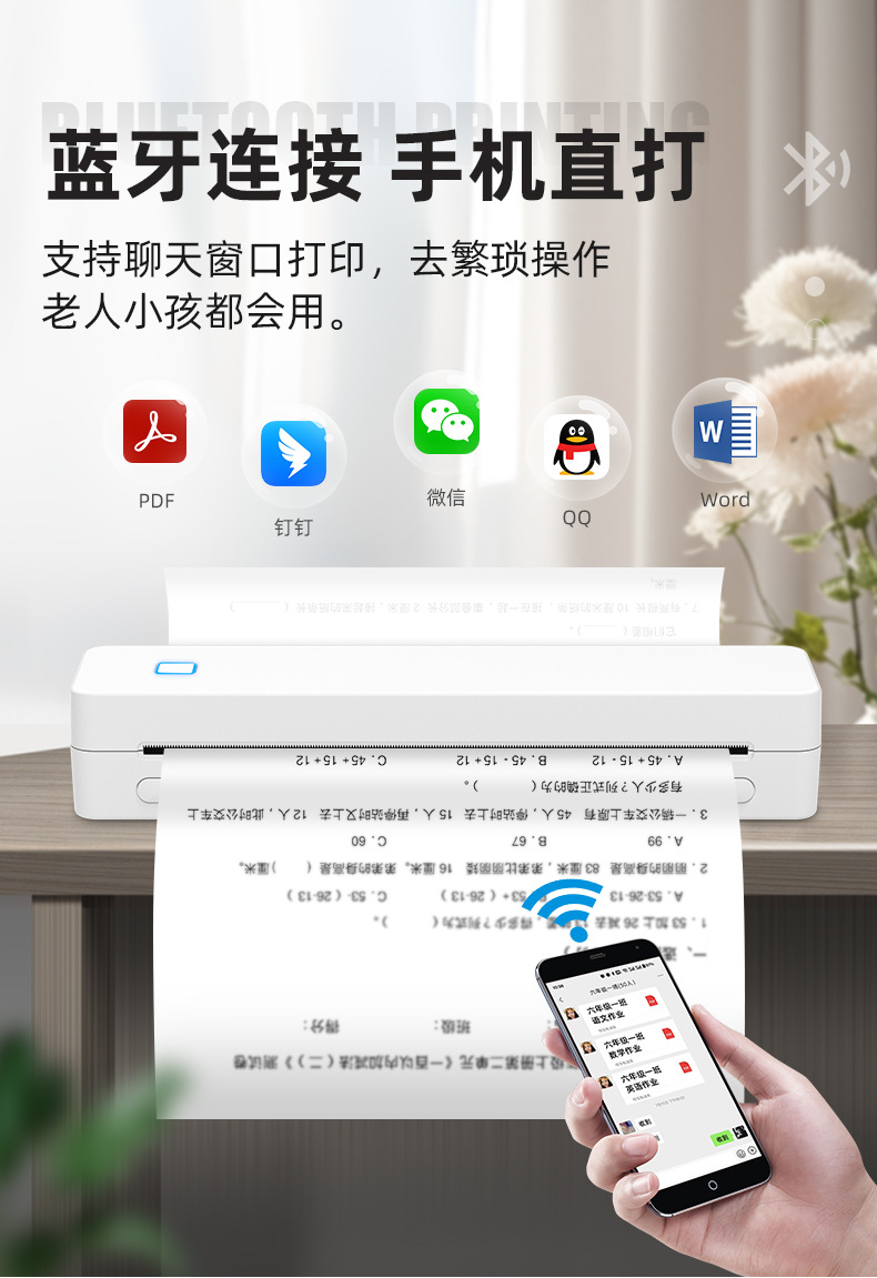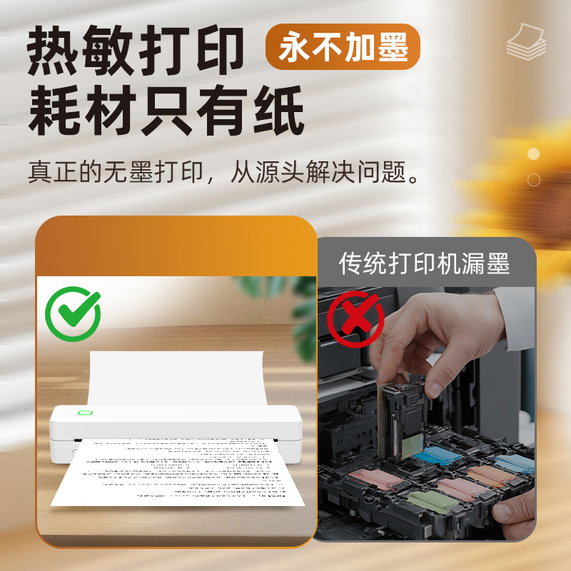 热敏打印机小型迷你照片A4打印机便携式无线蓝牙无墨家用作业打印