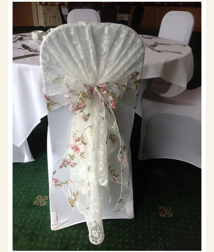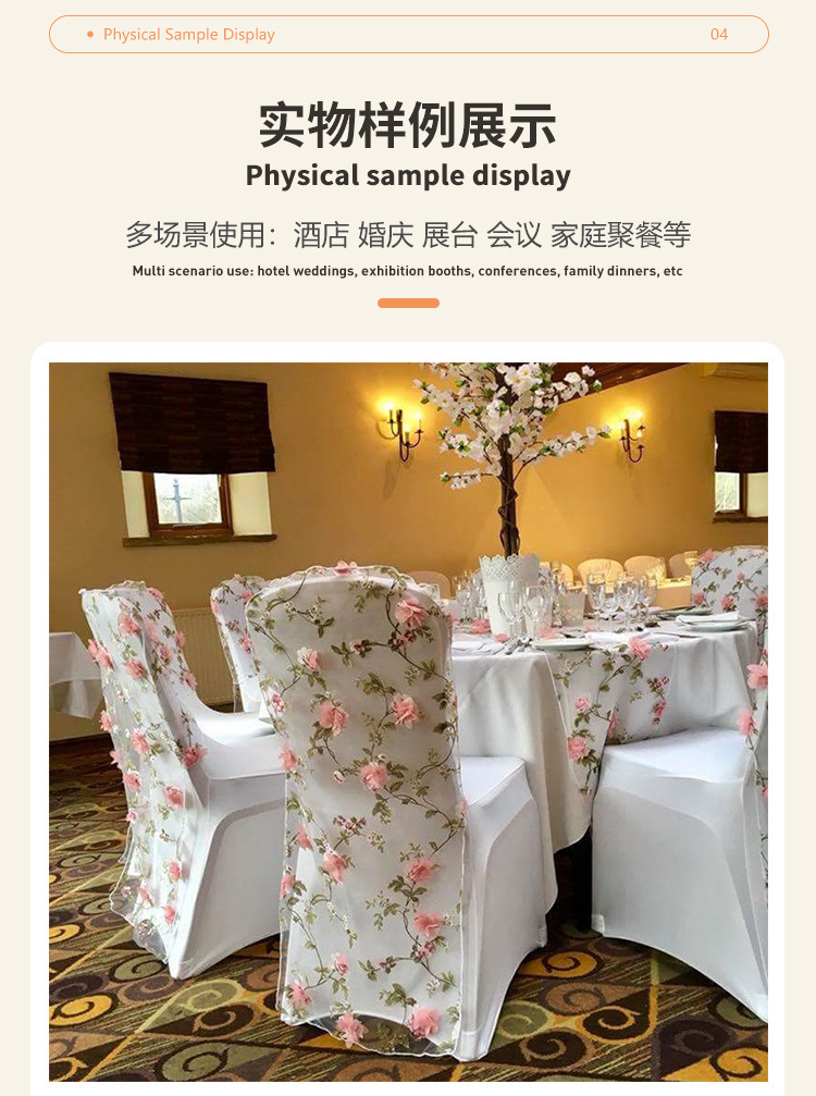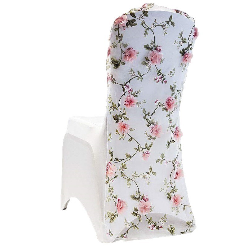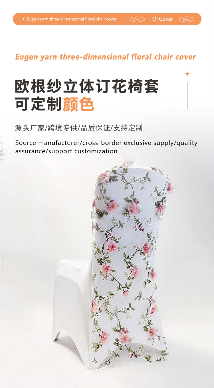 跨境酒店餐椅欧根纱立体订花椅套美式圆桌旗桌布批发椅背帽