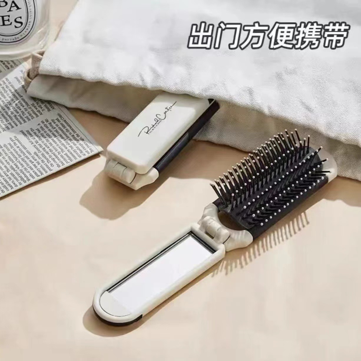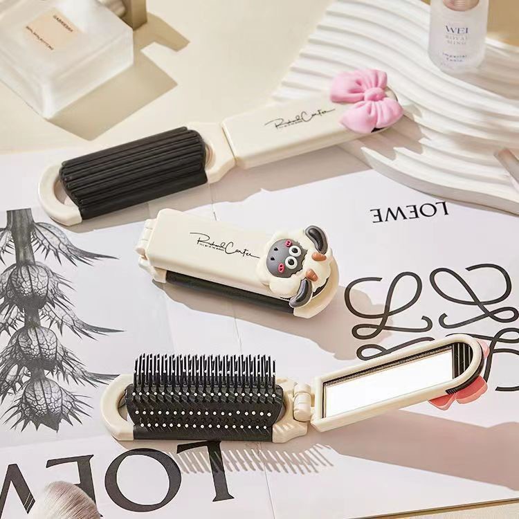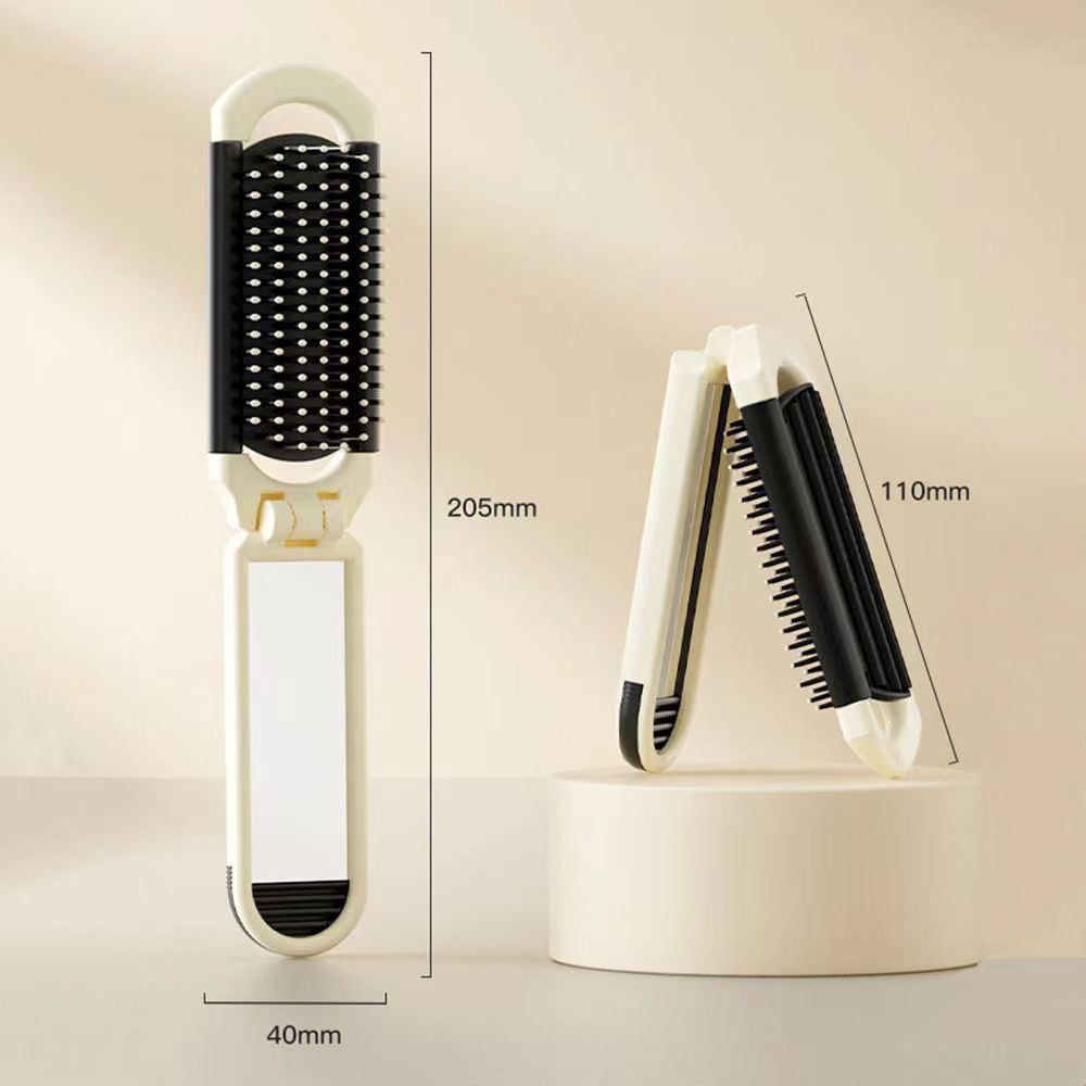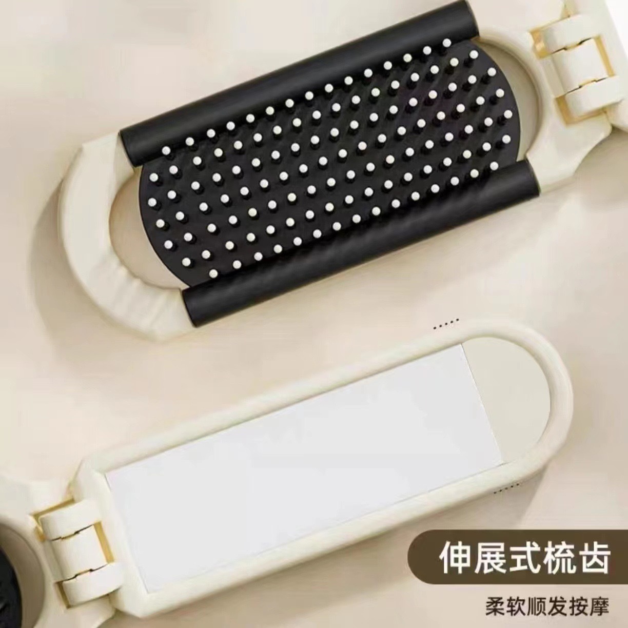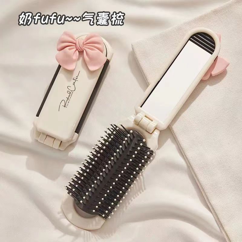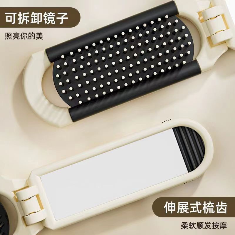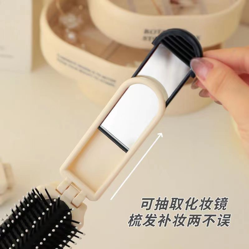 奶白折叠梳子随身便携迷你小镜子一体气囊气垫梳厂家气囊按摩