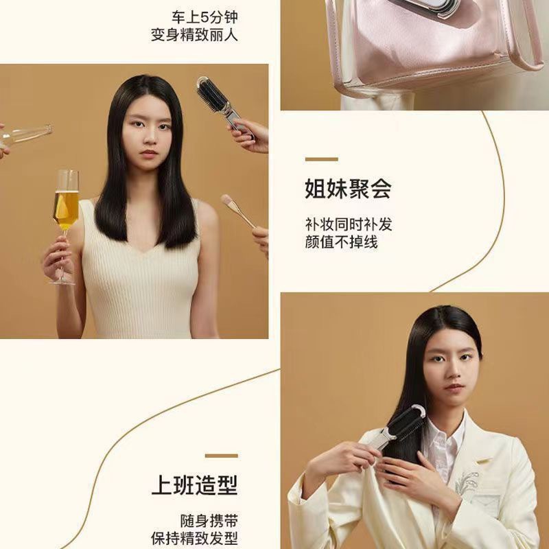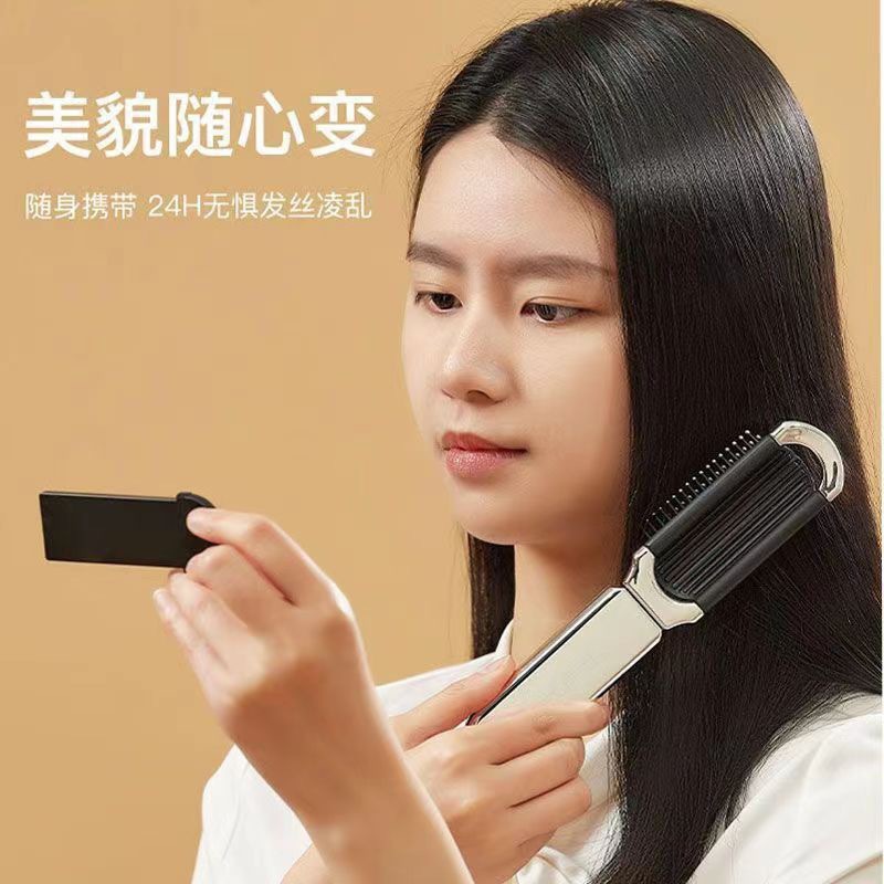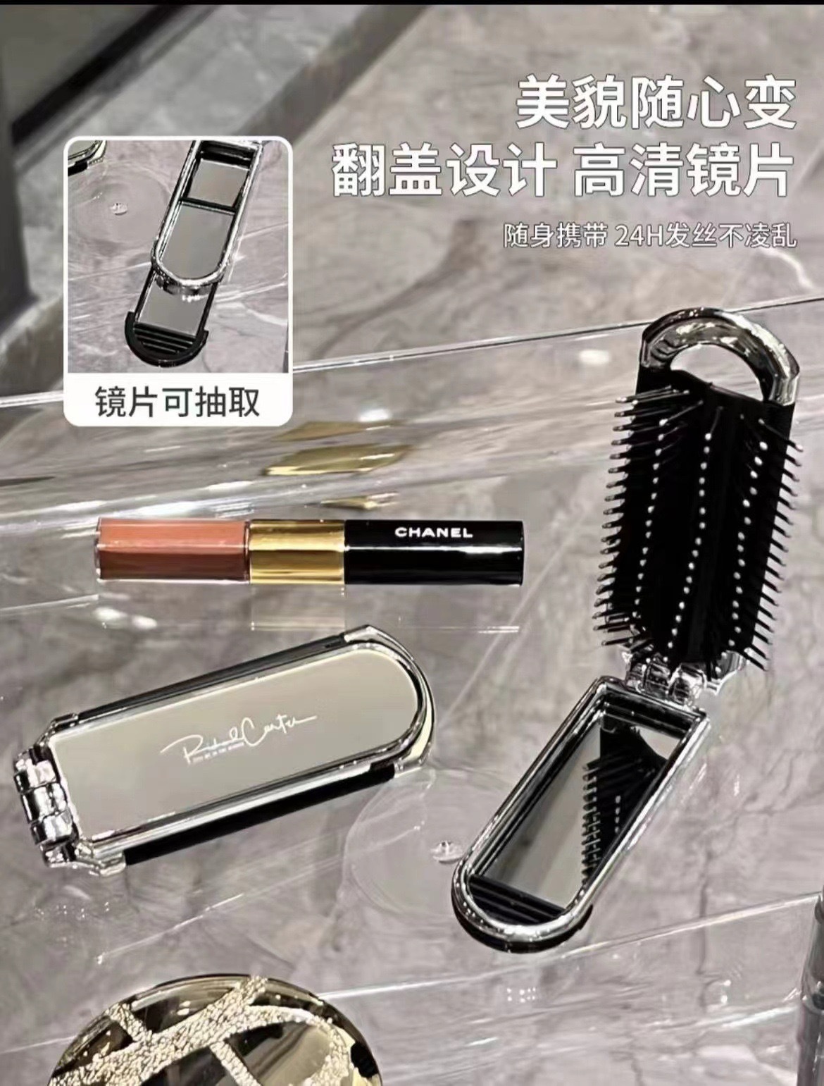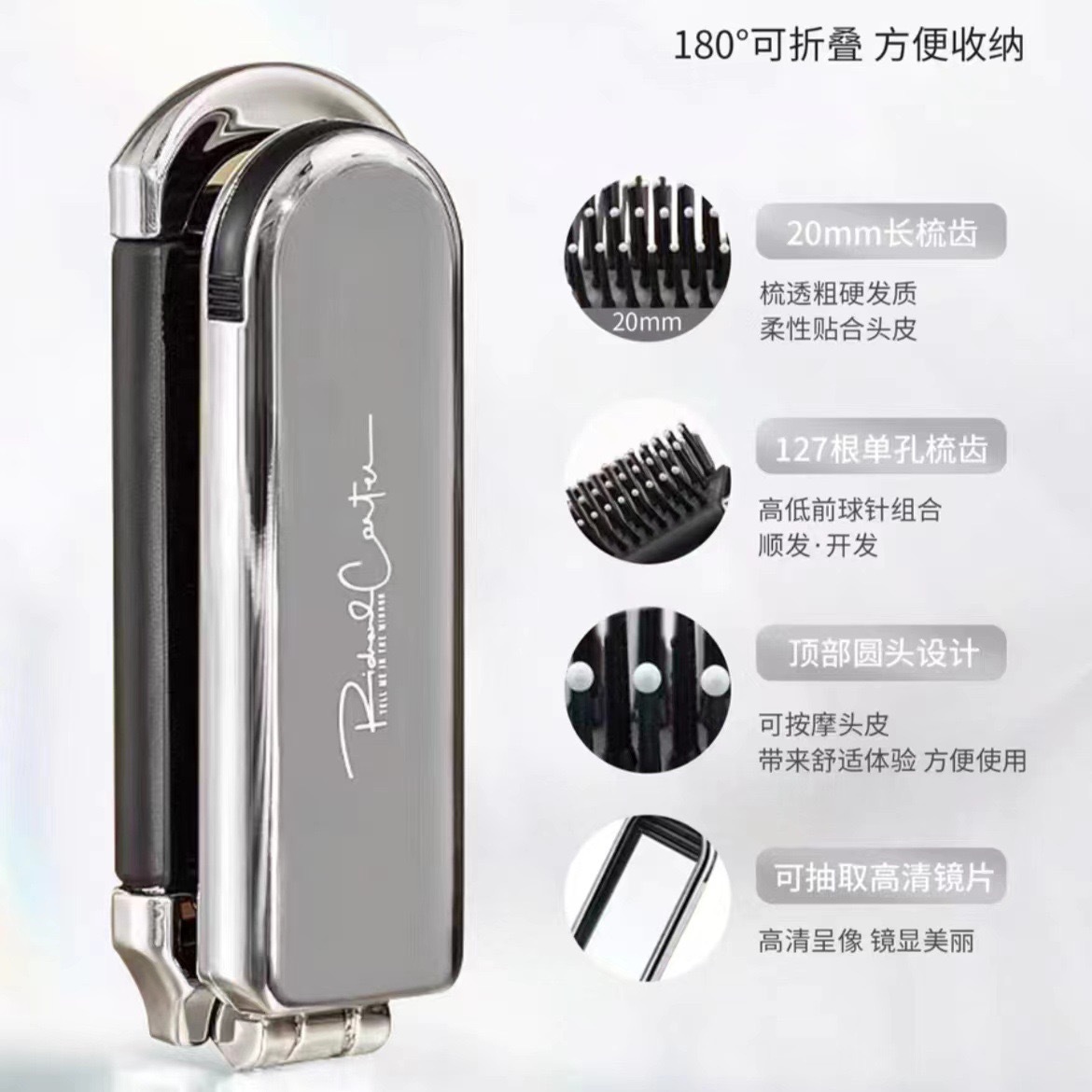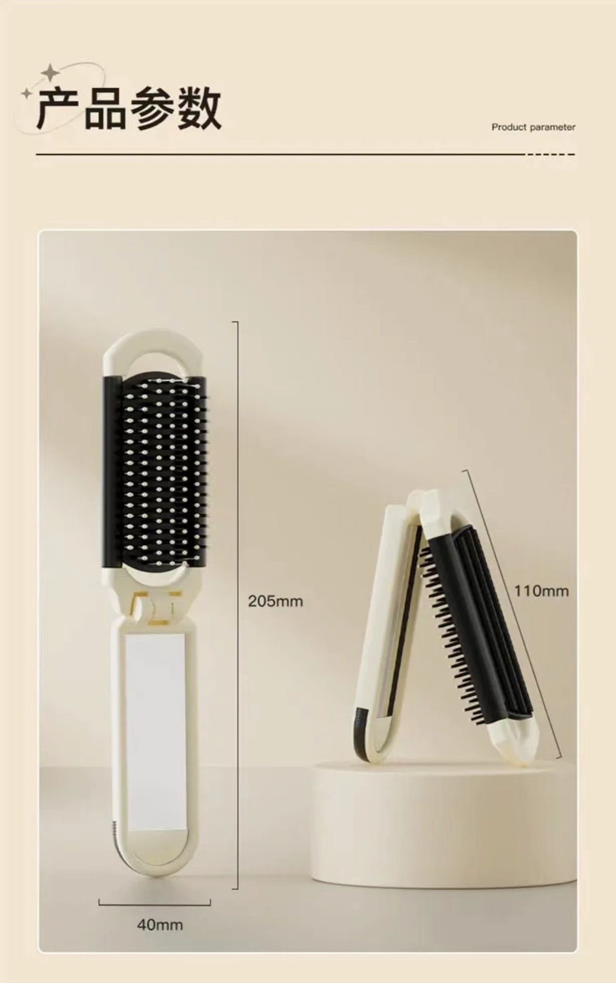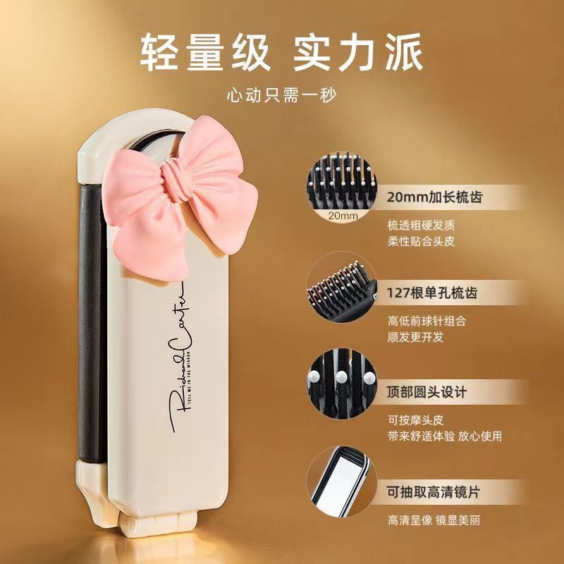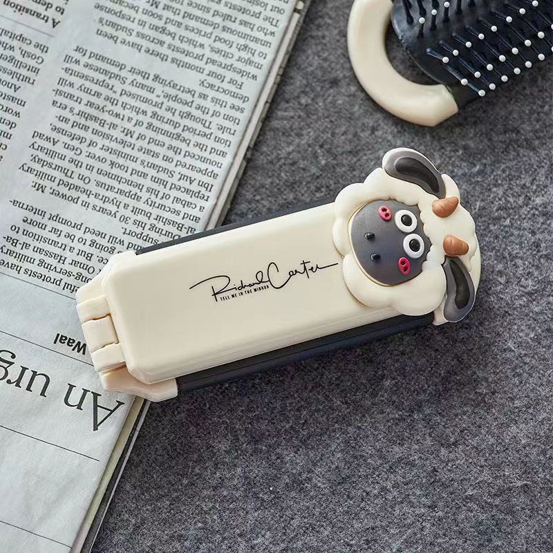 奶白折叠梳子随身便携迷你小镜子一体气囊气垫梳厂家气囊按摩