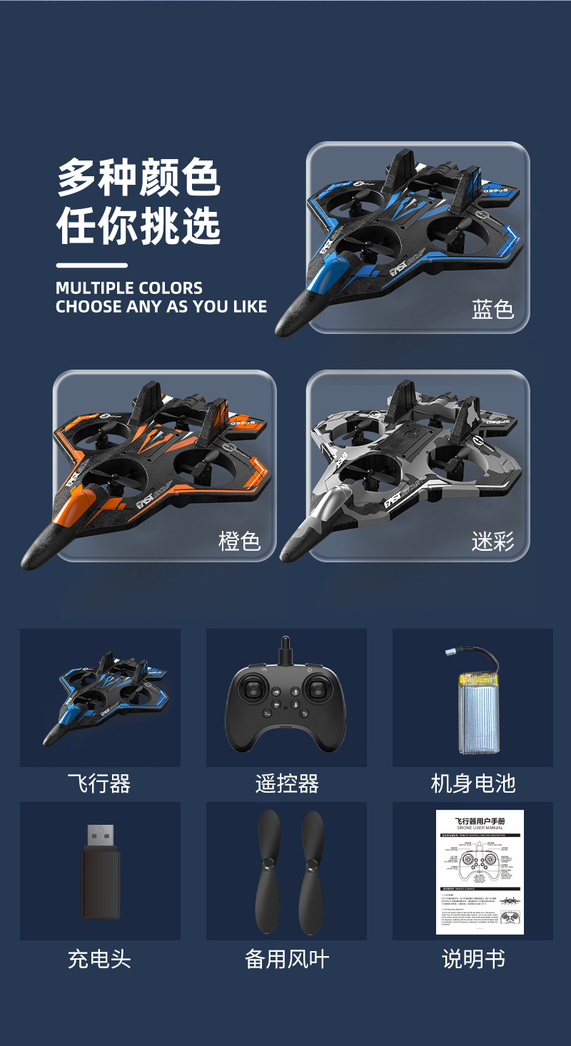 2026新款遥控飞机定高耐摔泡沫重力滑翔机灯光四轴新手无人机