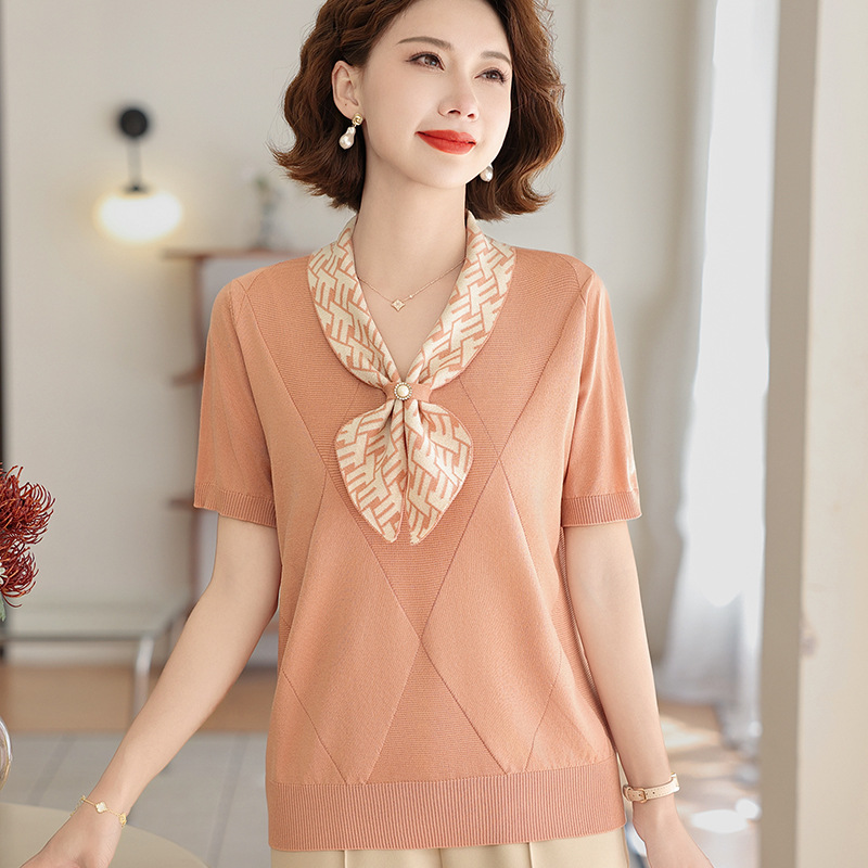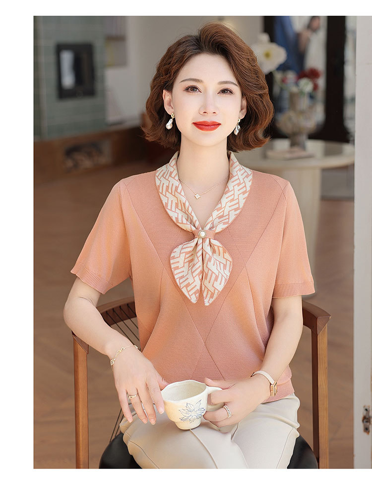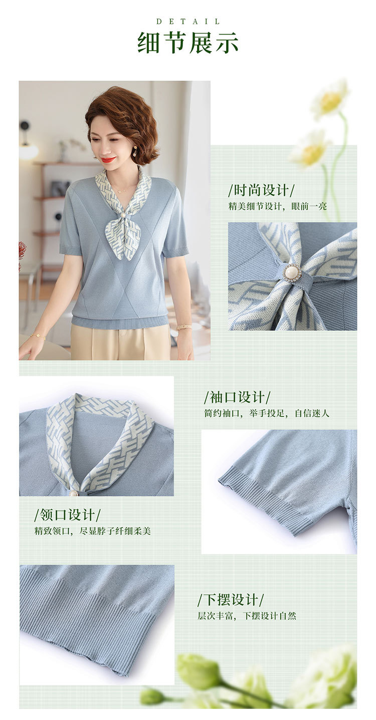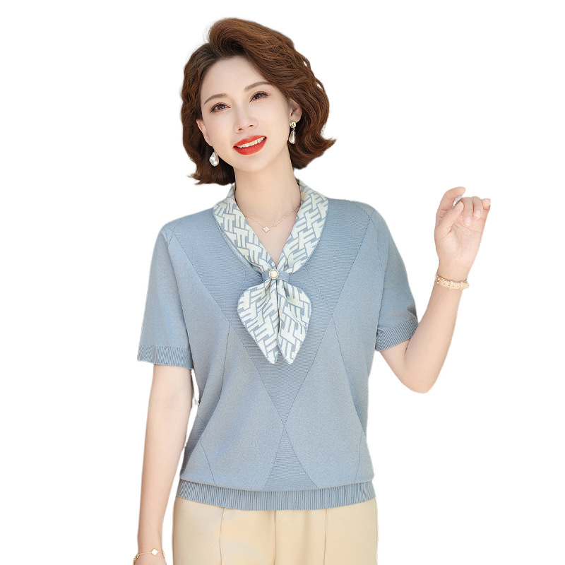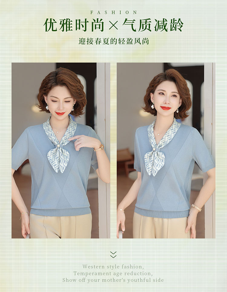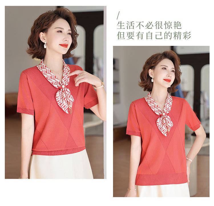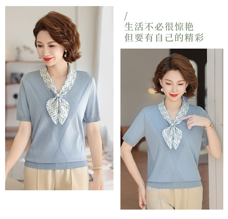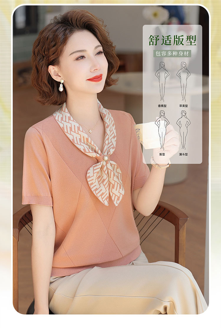 妈妈夏装短袖冰丝上衣40岁50中老年女装夏季薄款减龄T恤时尚套装