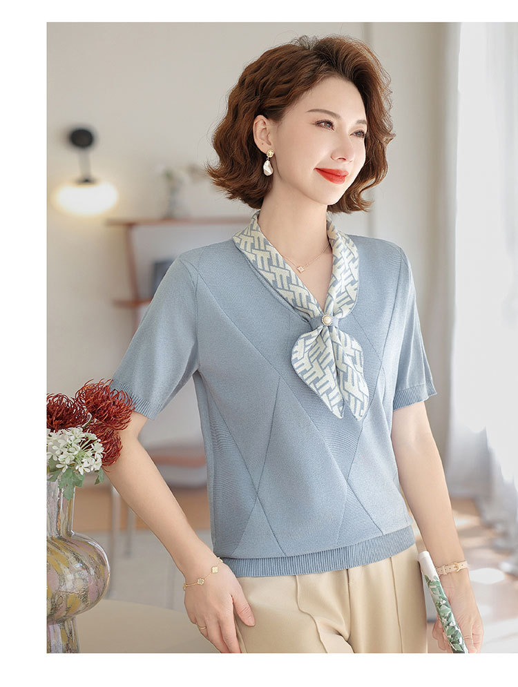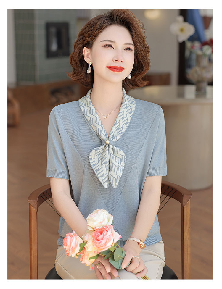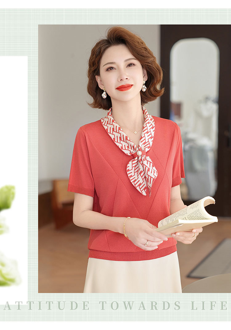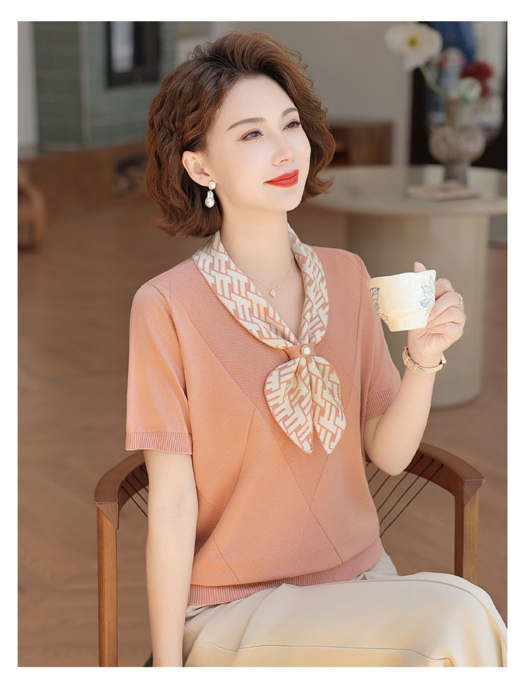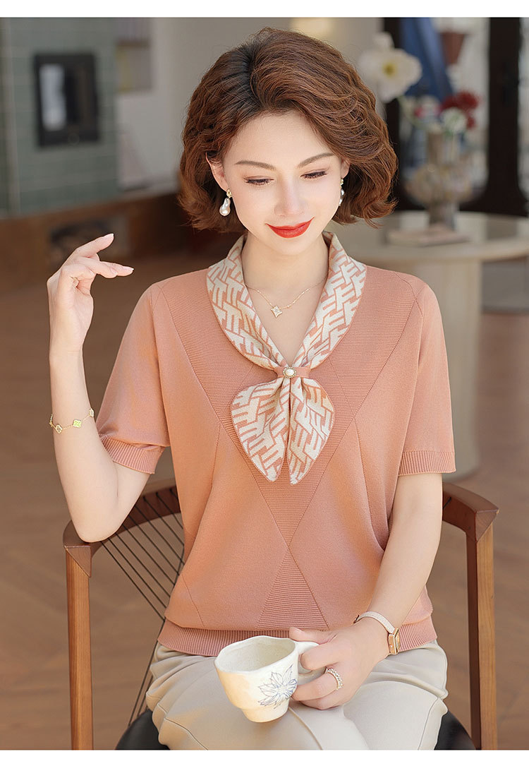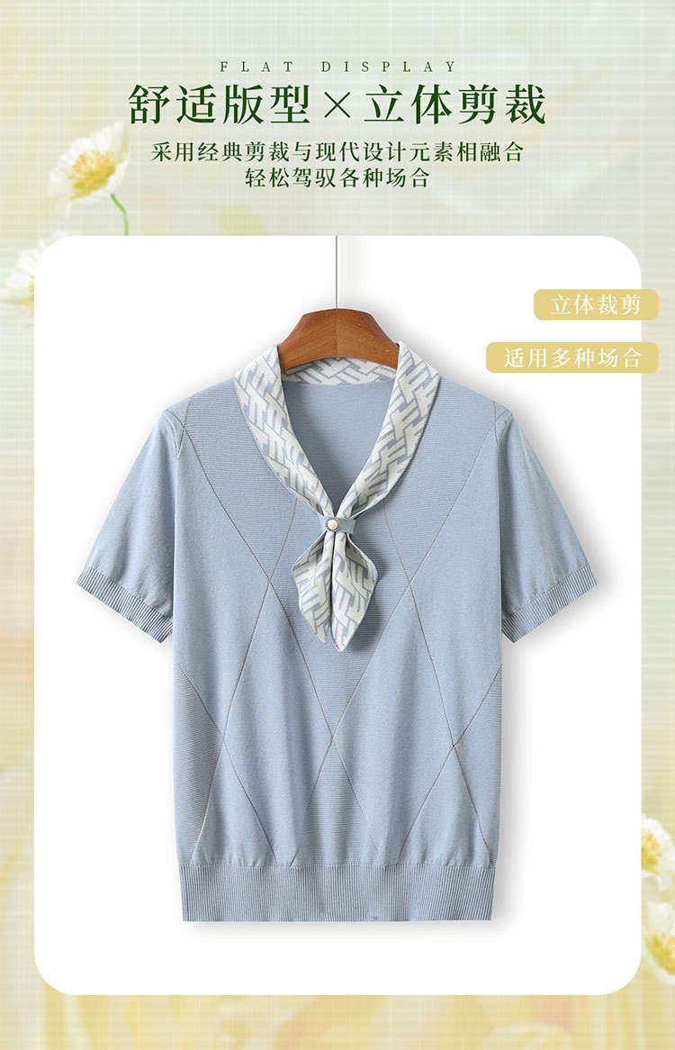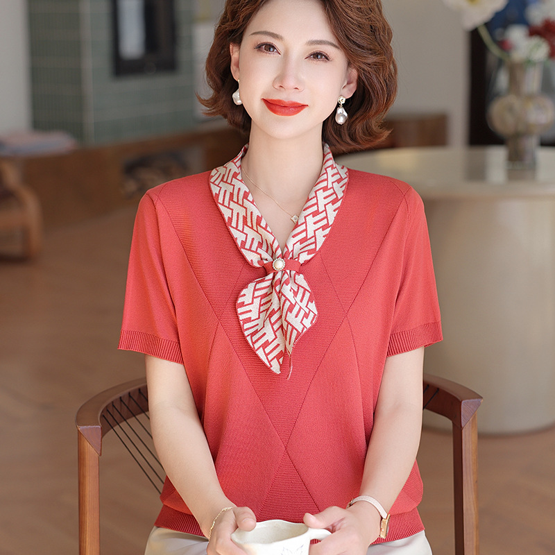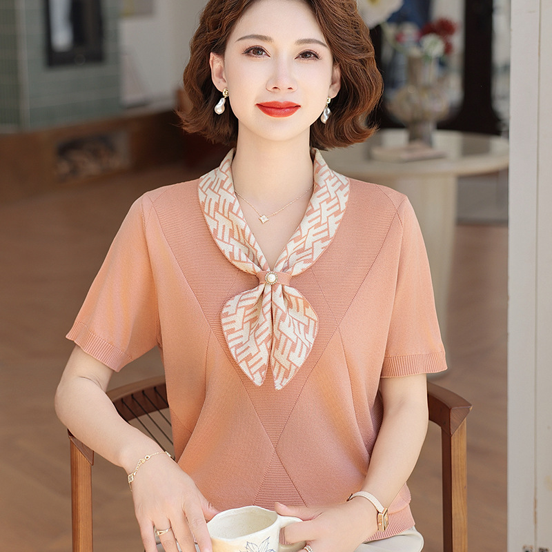 妈妈夏装短袖冰丝上衣40岁50中老年女装夏季薄款减龄T恤时尚套装