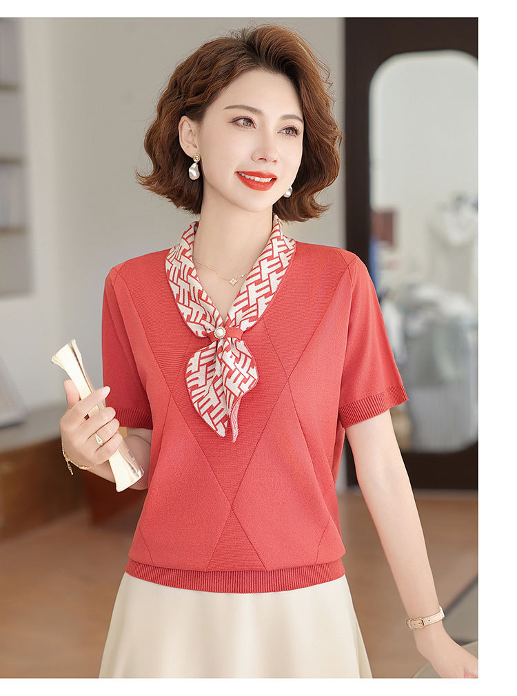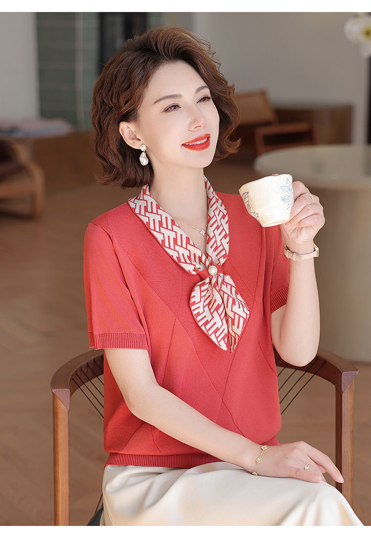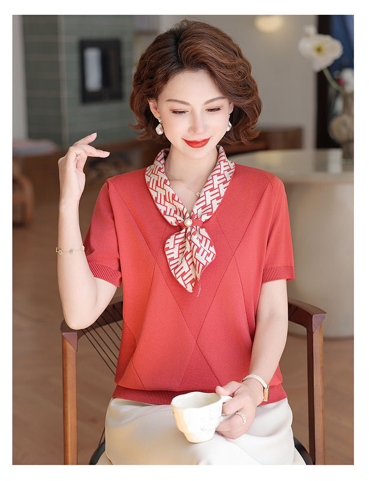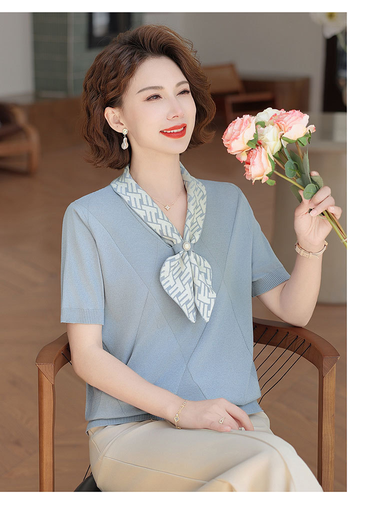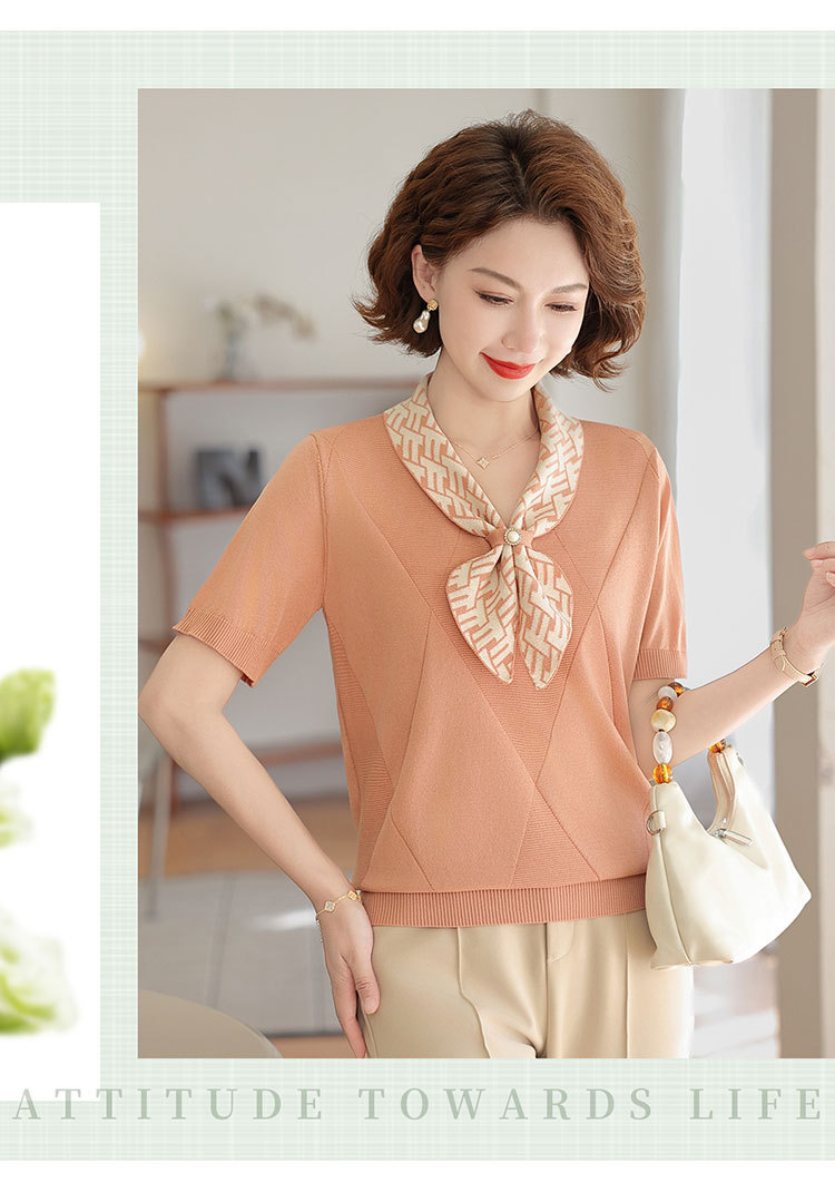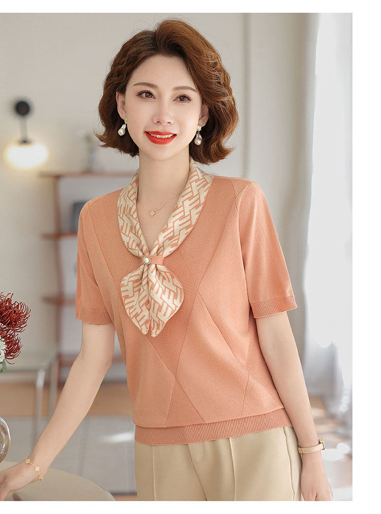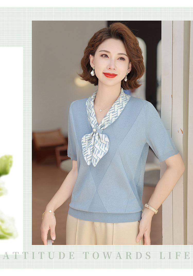 妈妈夏装短袖冰丝上衣40岁50中老年女装夏季薄款减龄T恤时尚套装