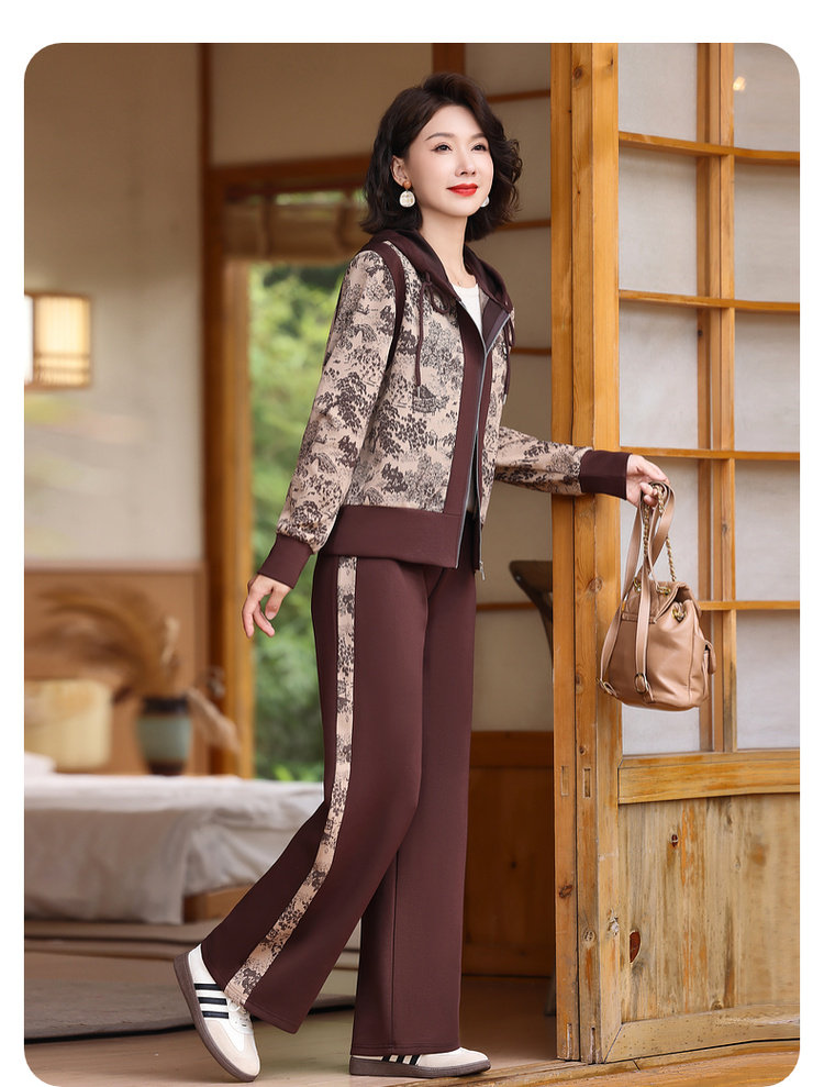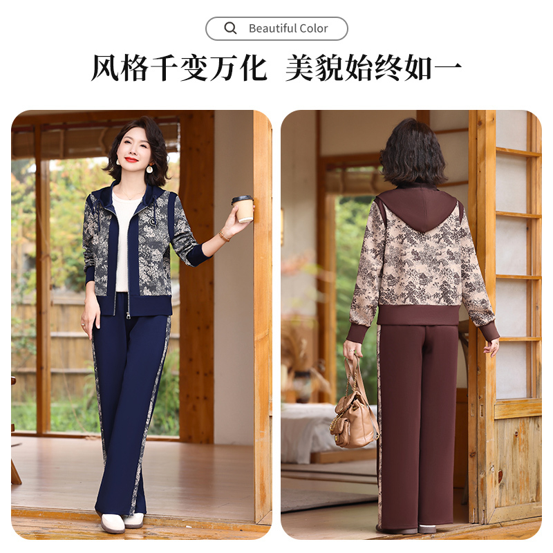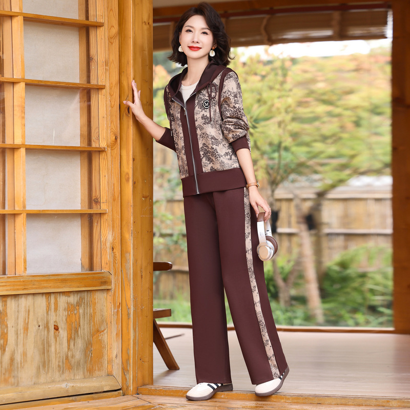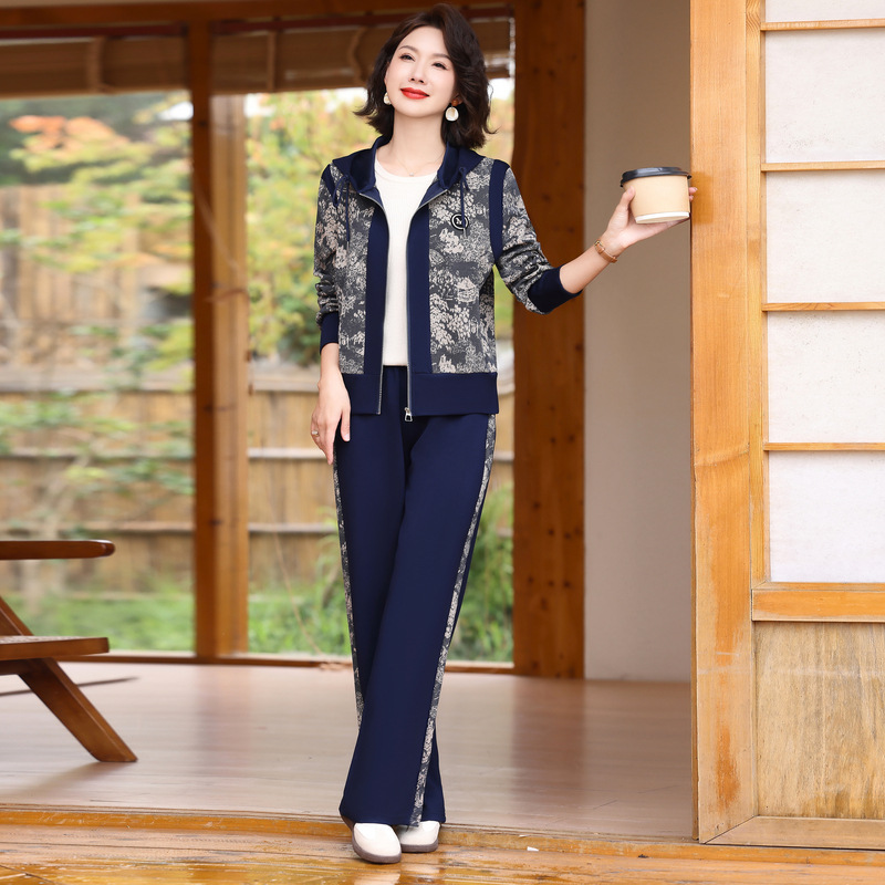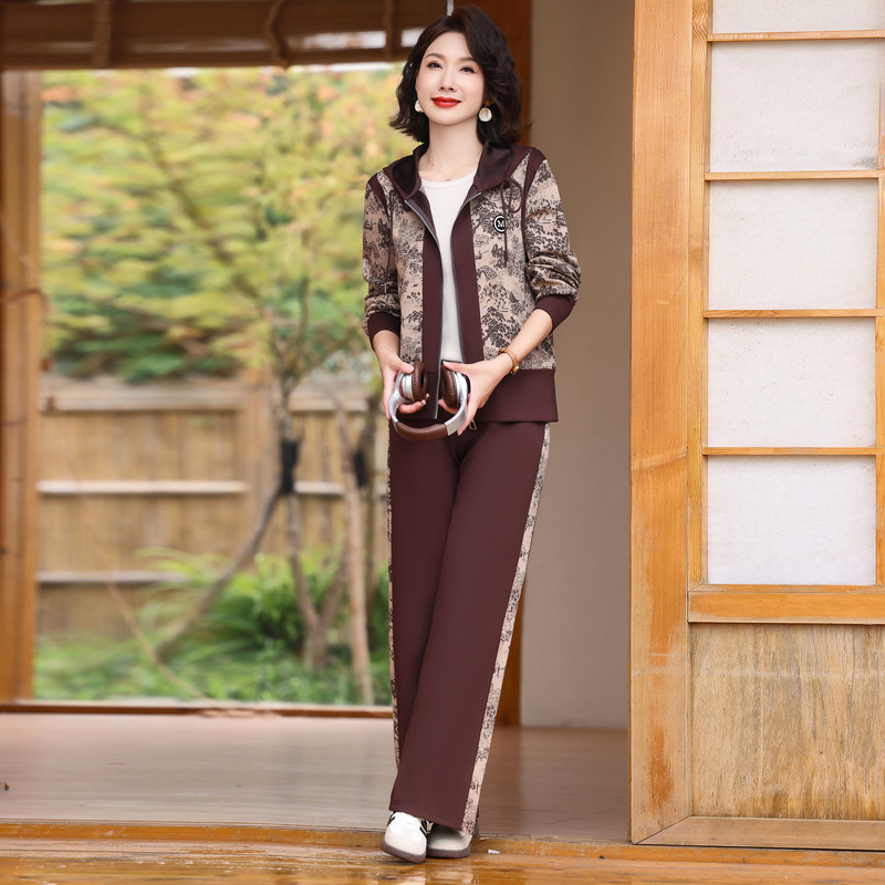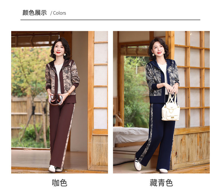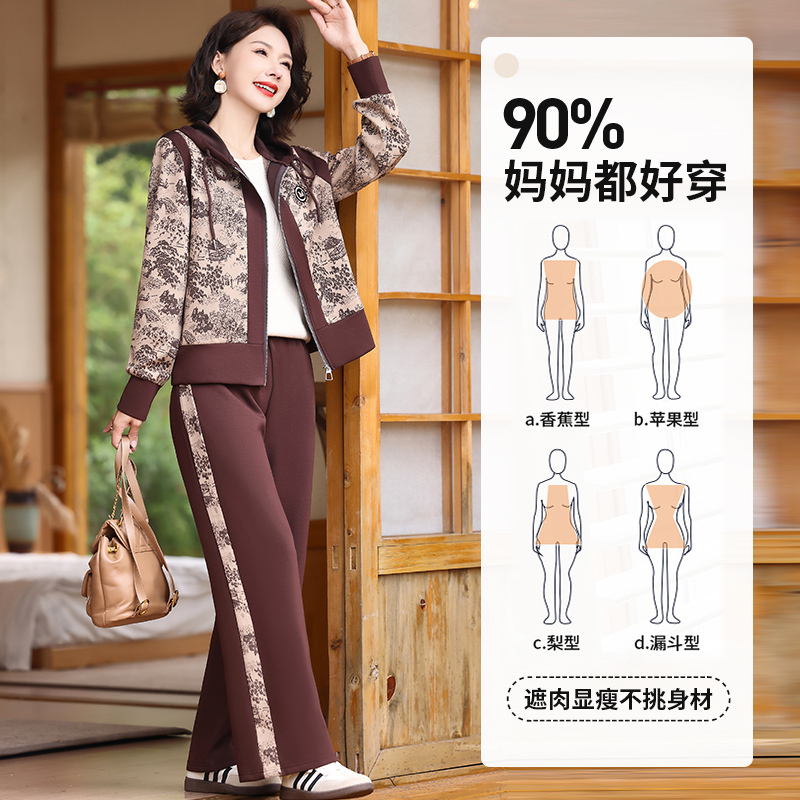 运动套装女中年妈妈春装2025新款洋气中老年春秋季休闲外套两件套