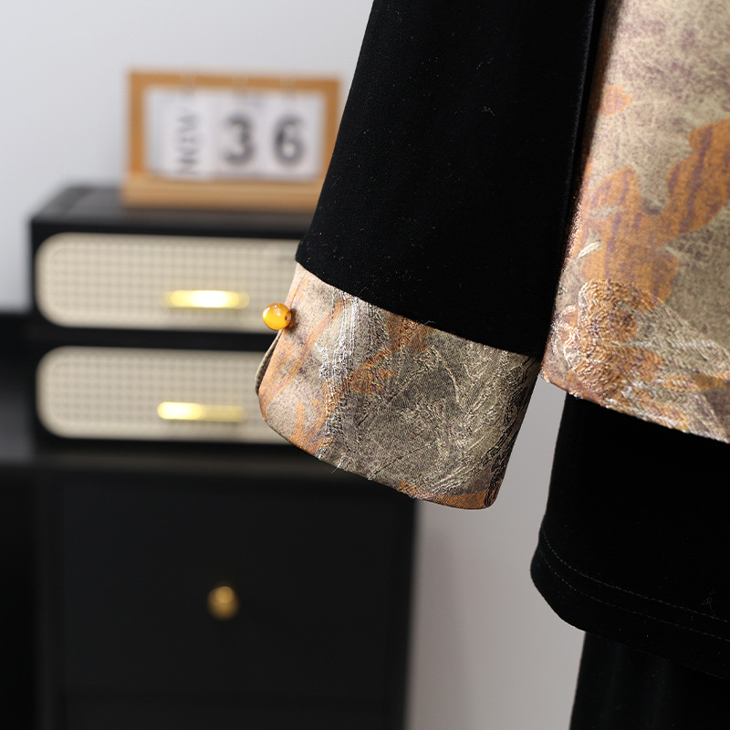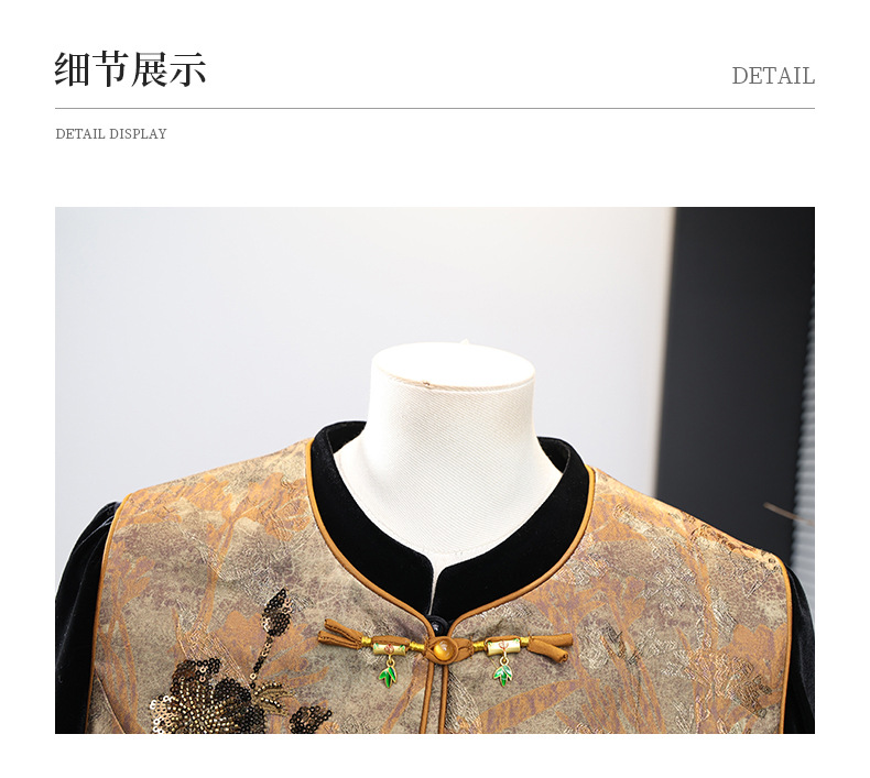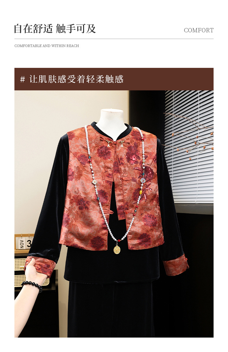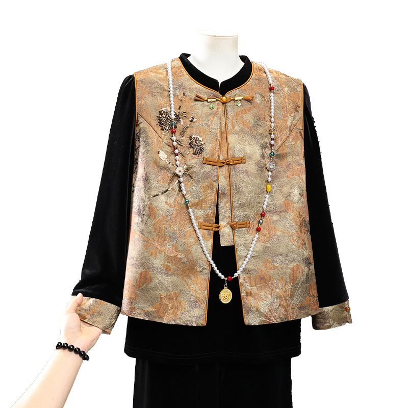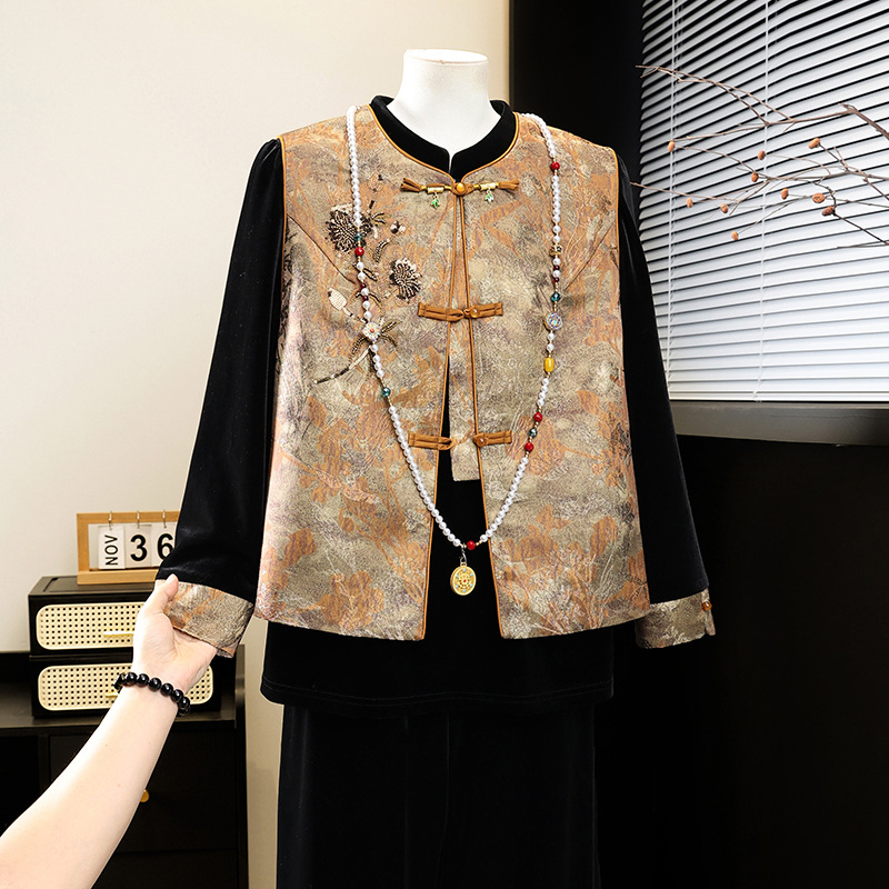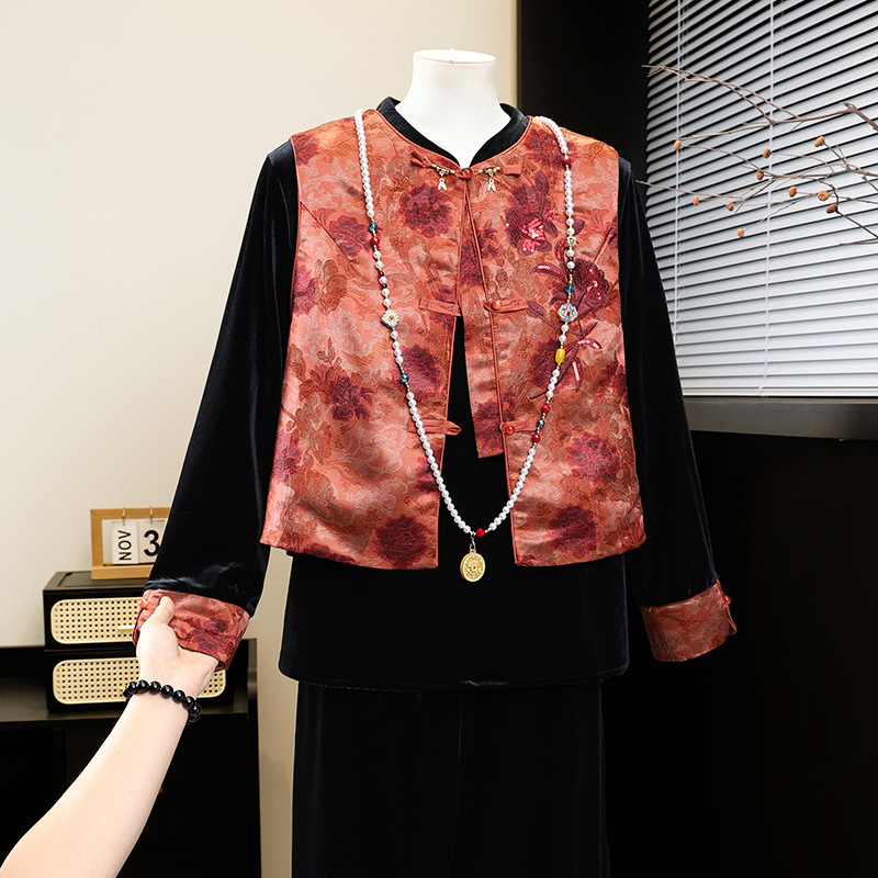新中式国风妈妈春装金丝绒套装中老年人女春秋马甲外套高档三件套