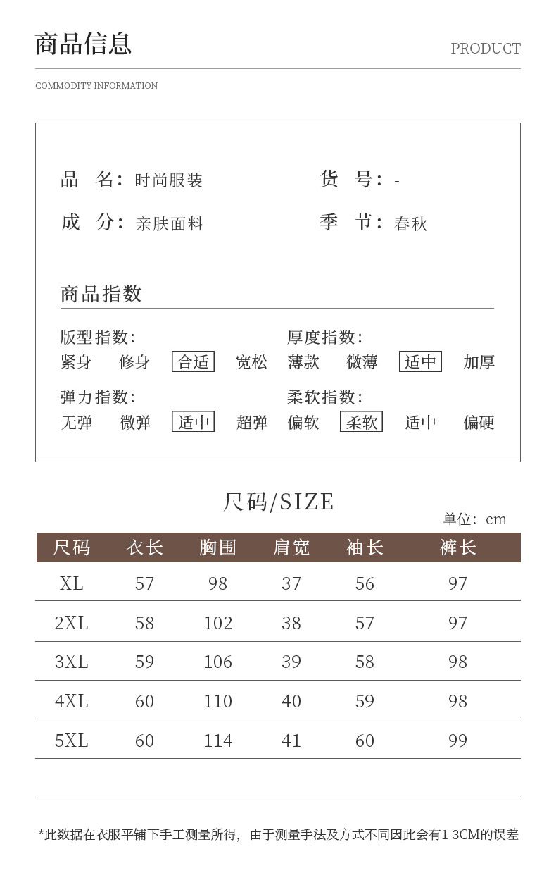 | 5XL(建议150-160斤) | USD $24.82 | 222 set available |