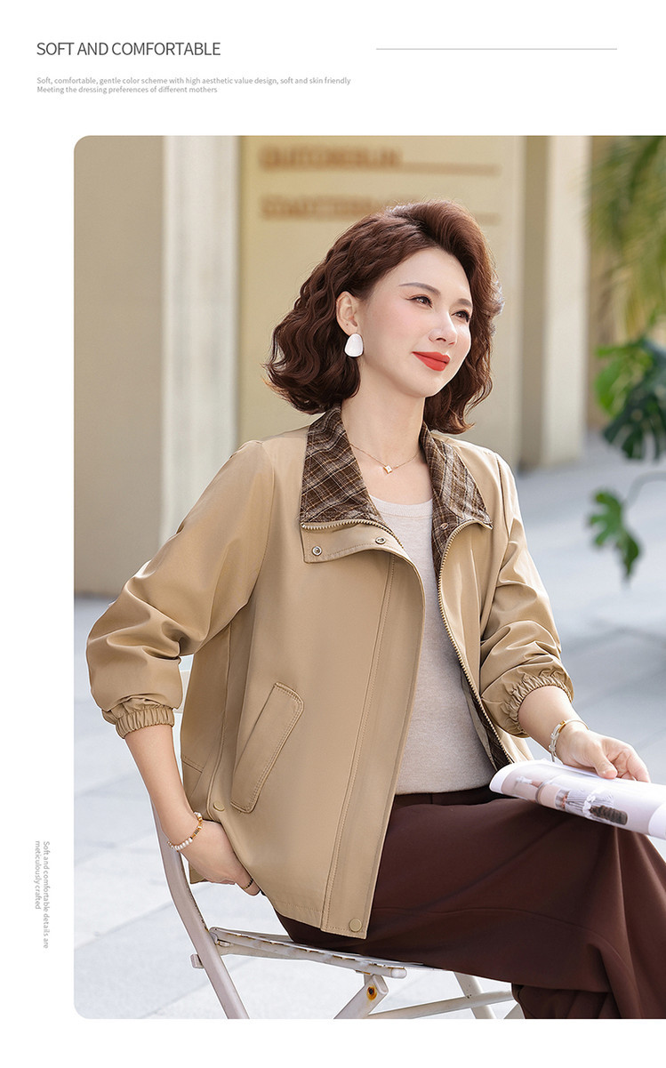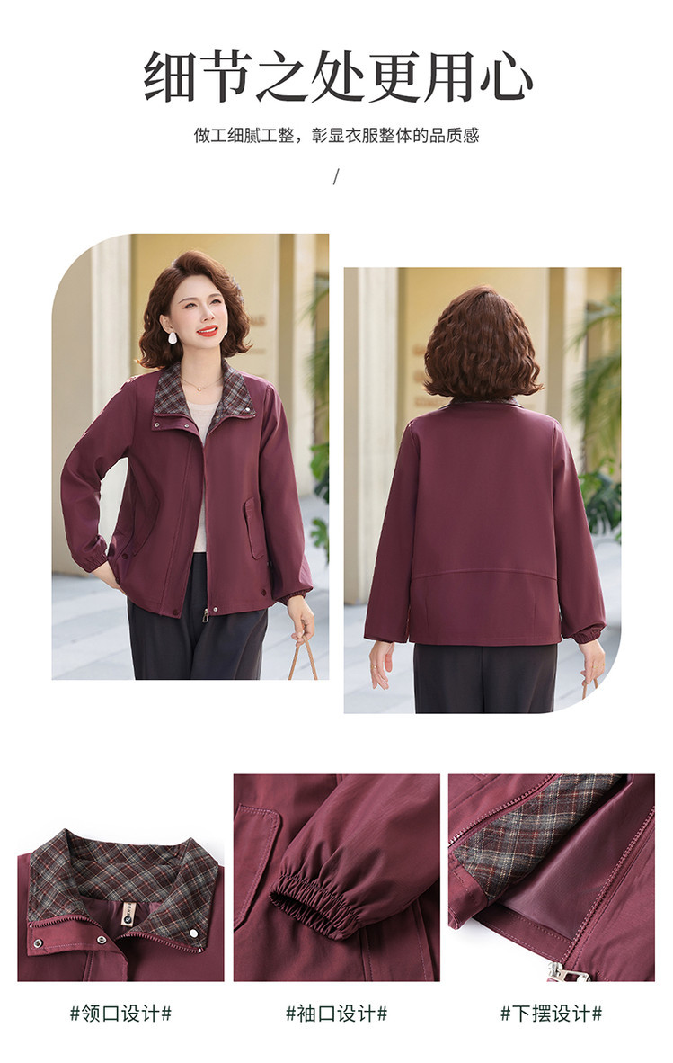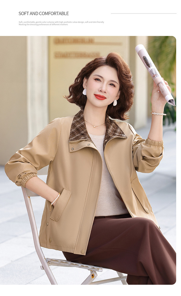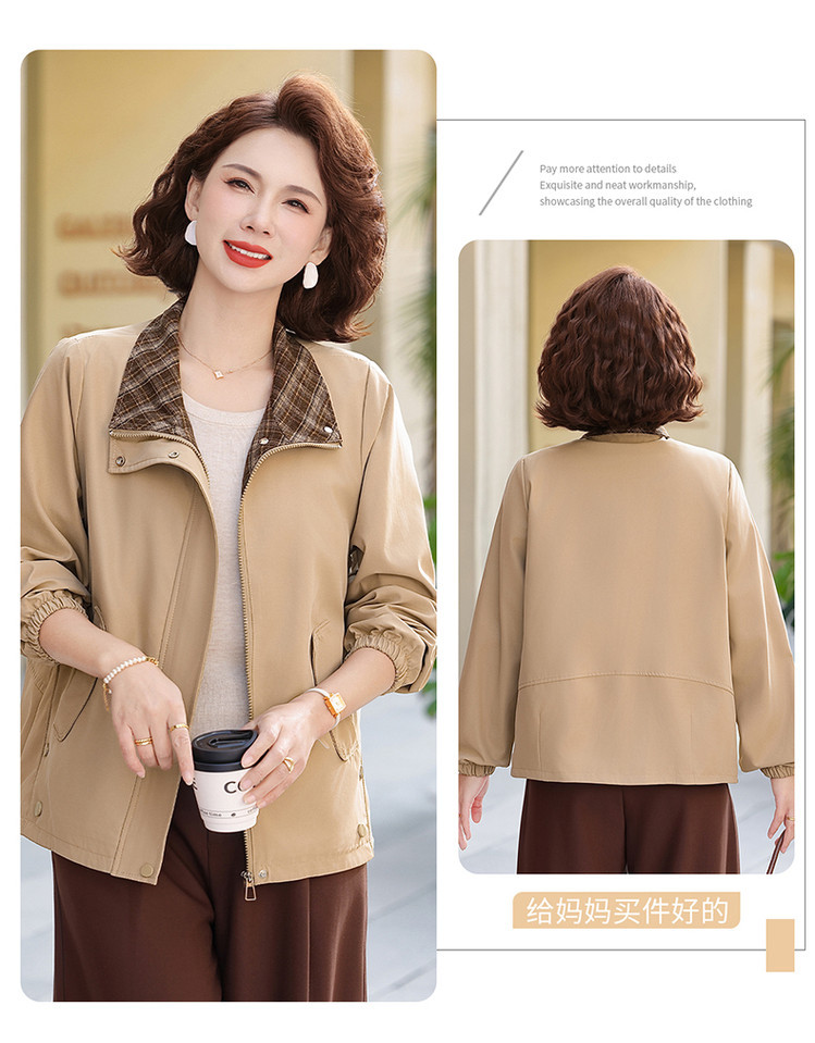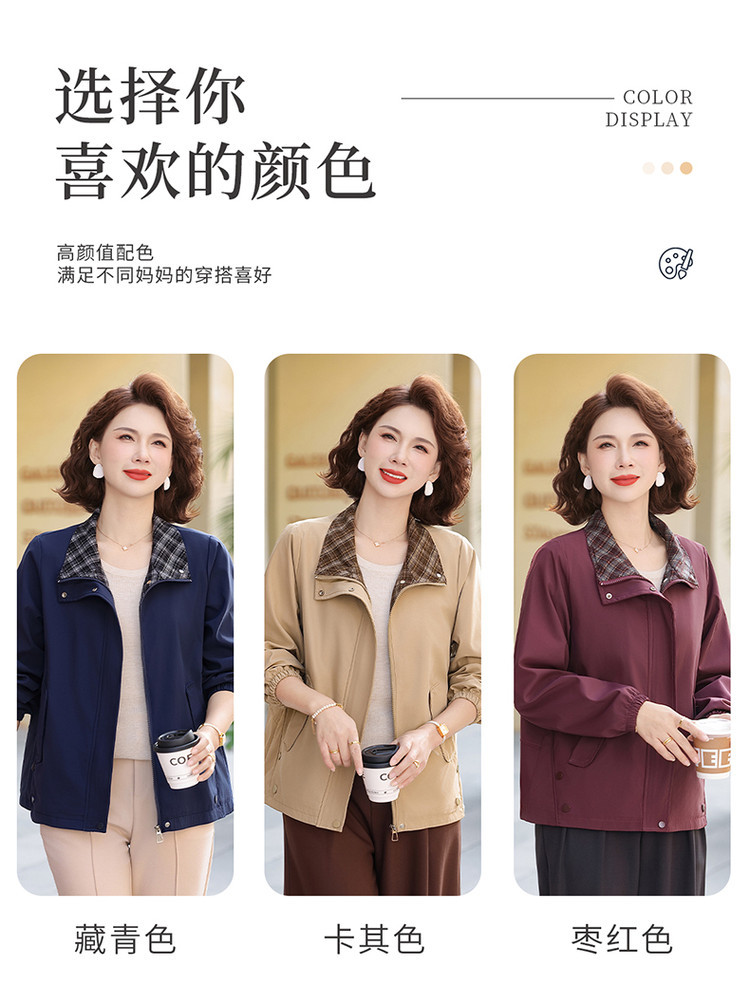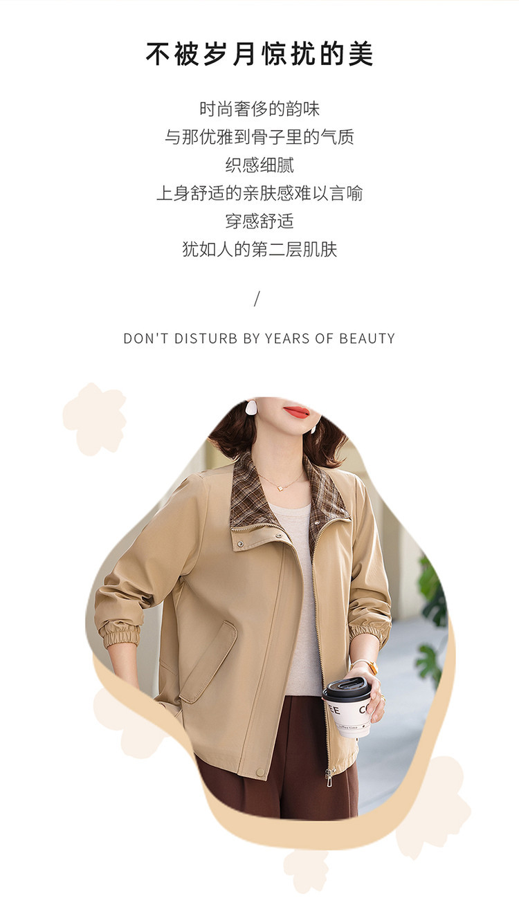妈妈春装外套短款洋气风衣薄款翻领新款中老年女春秋夹克时尚上衣