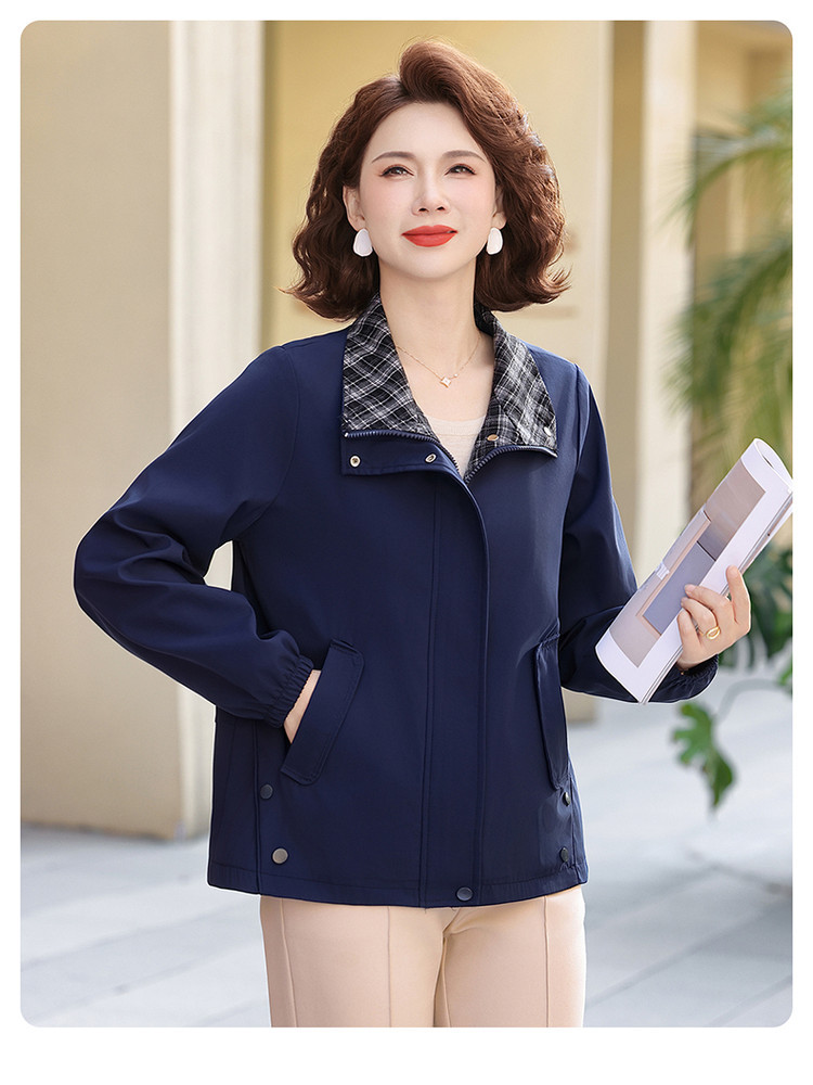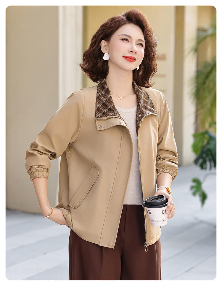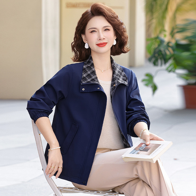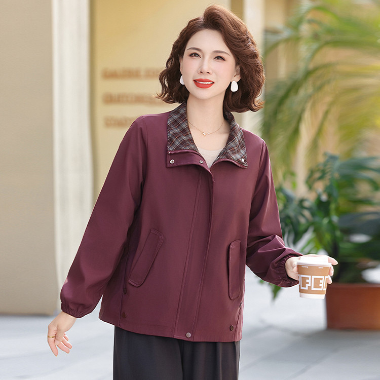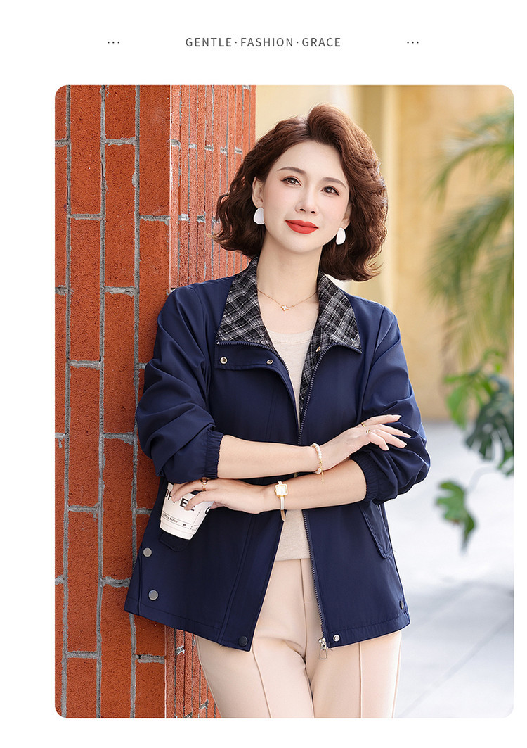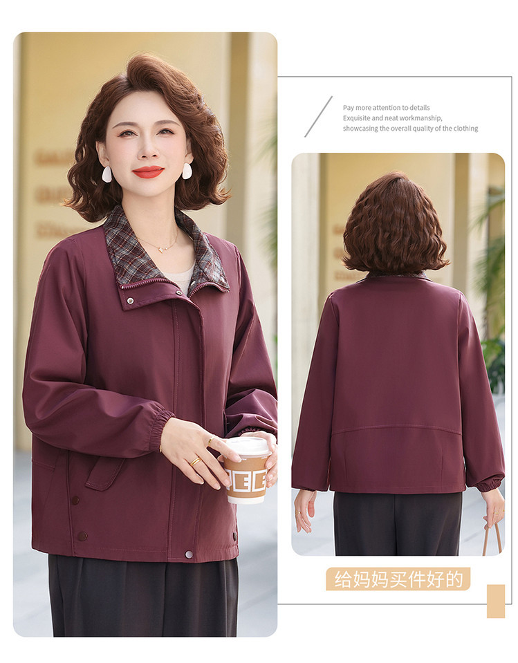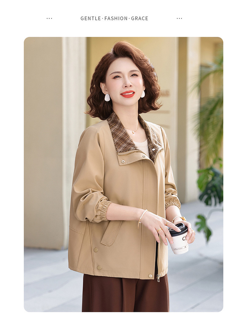 妈妈春装外套短款洋气风衣薄款翻领新款中老年女春秋夹克时尚上衣