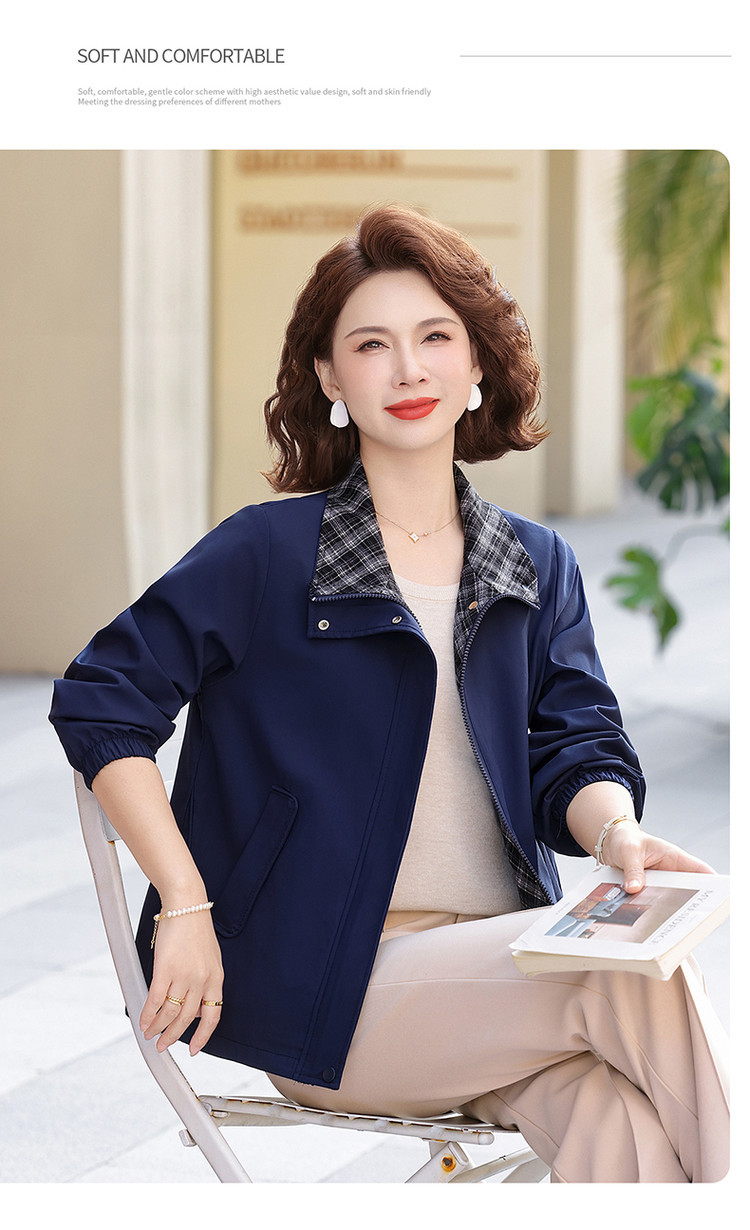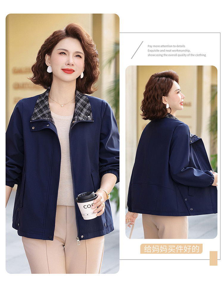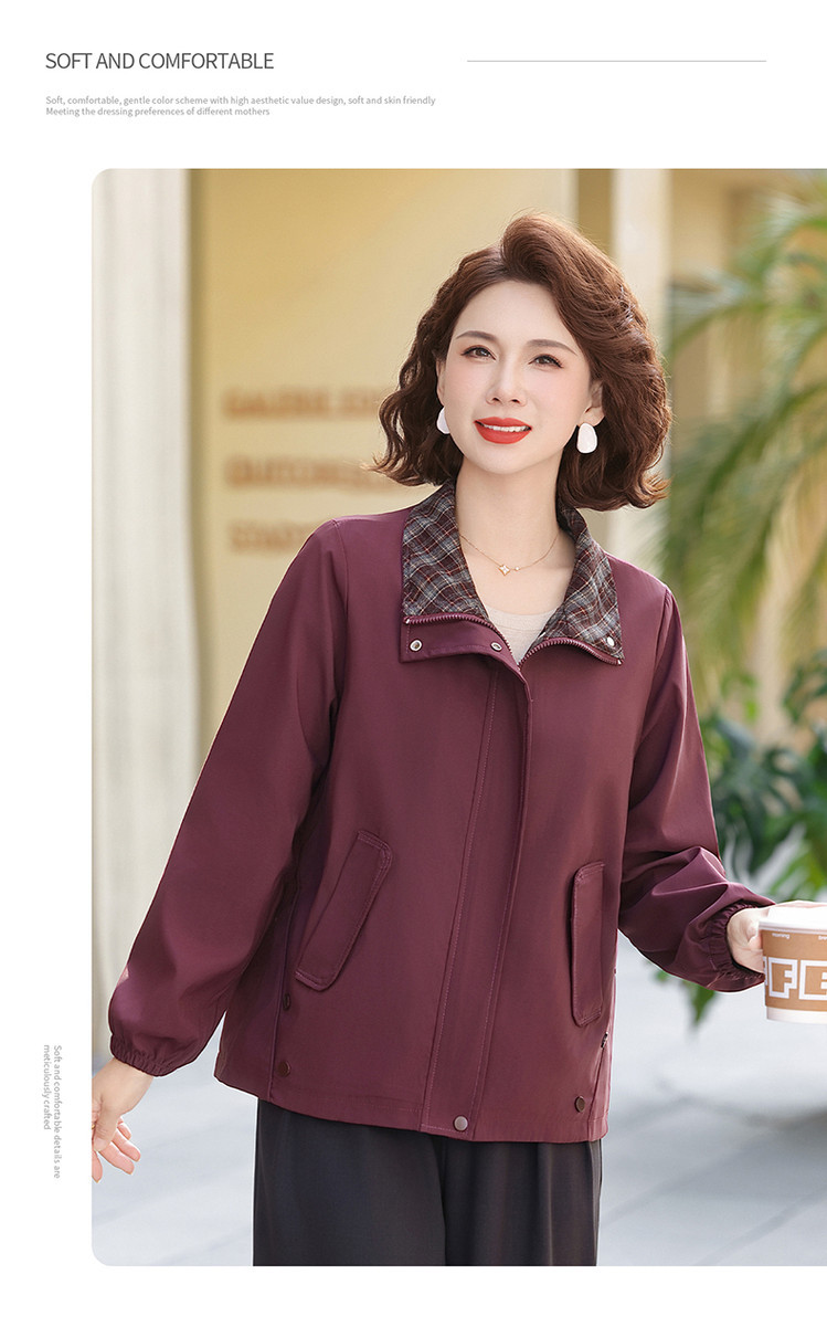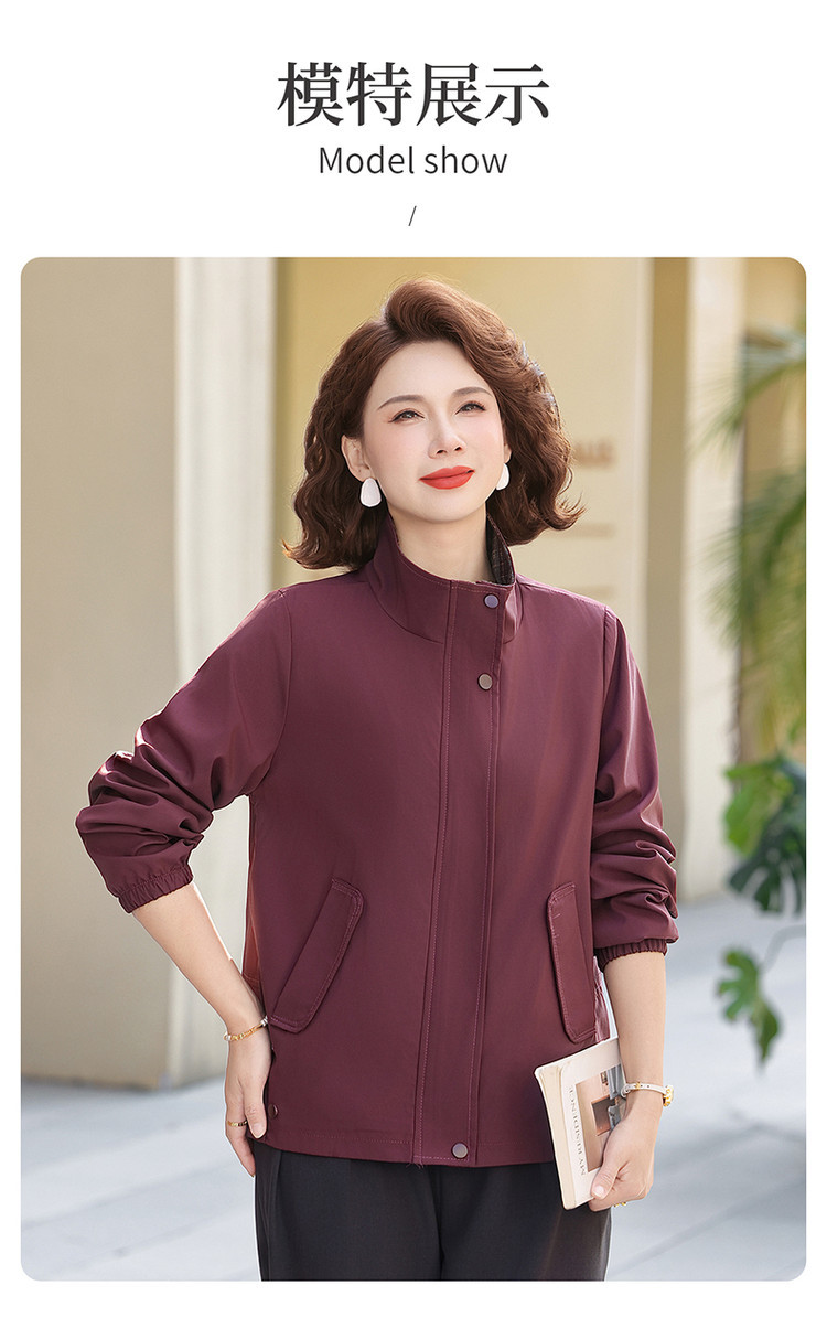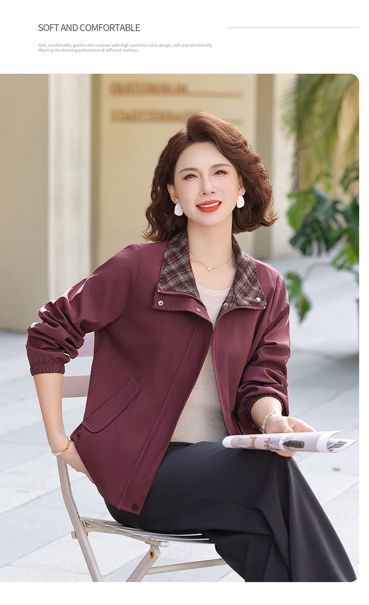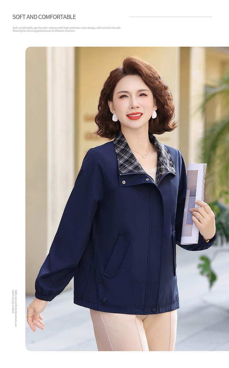 妈妈春装外套短款洋气风衣薄款翻领新款中老年女春秋夹克时尚上衣