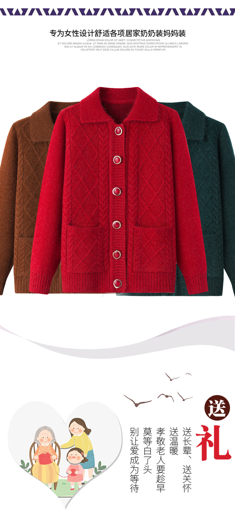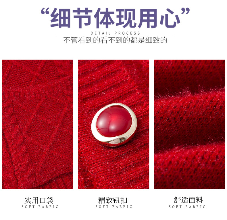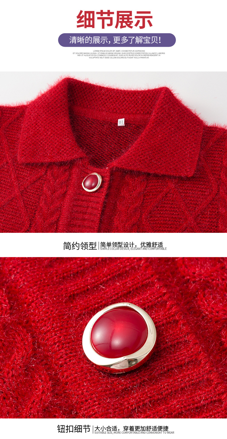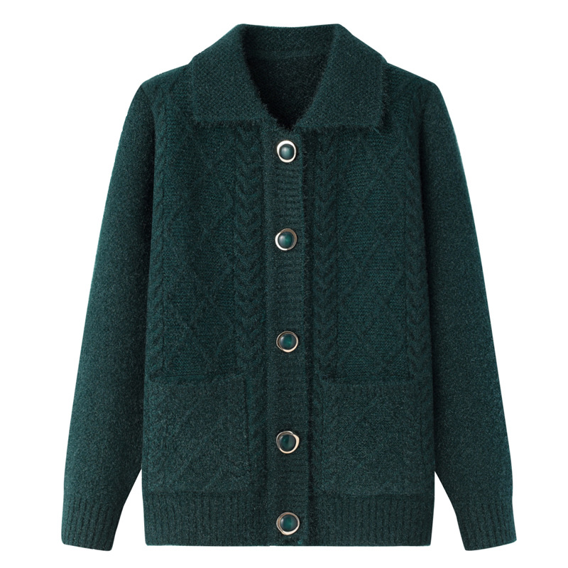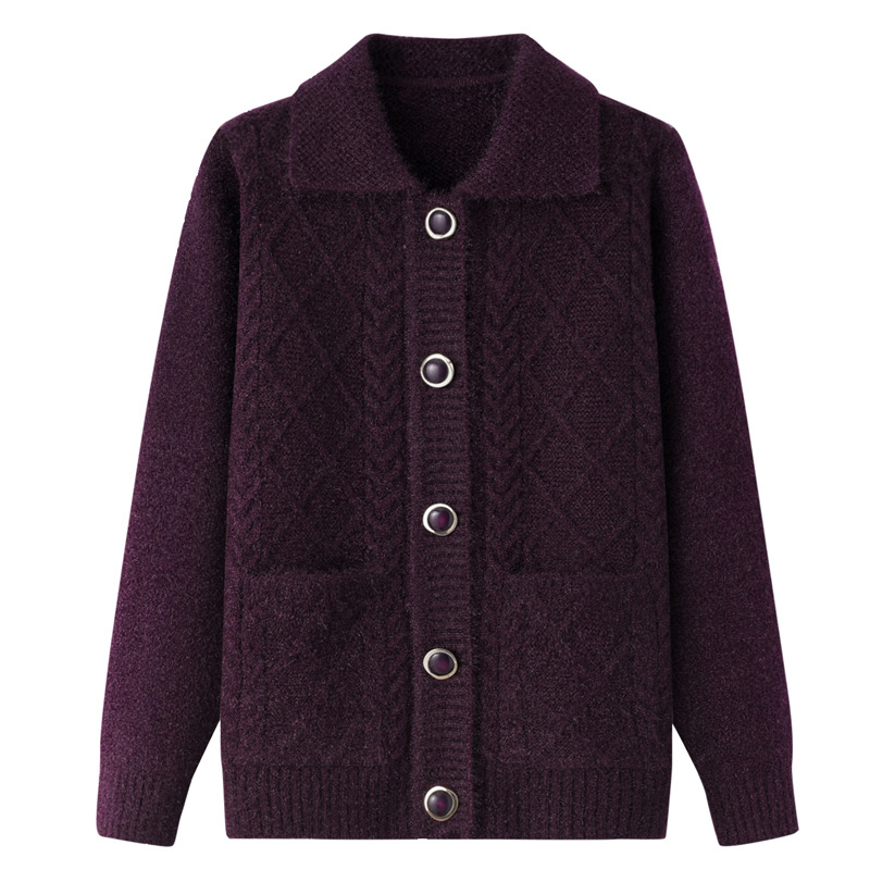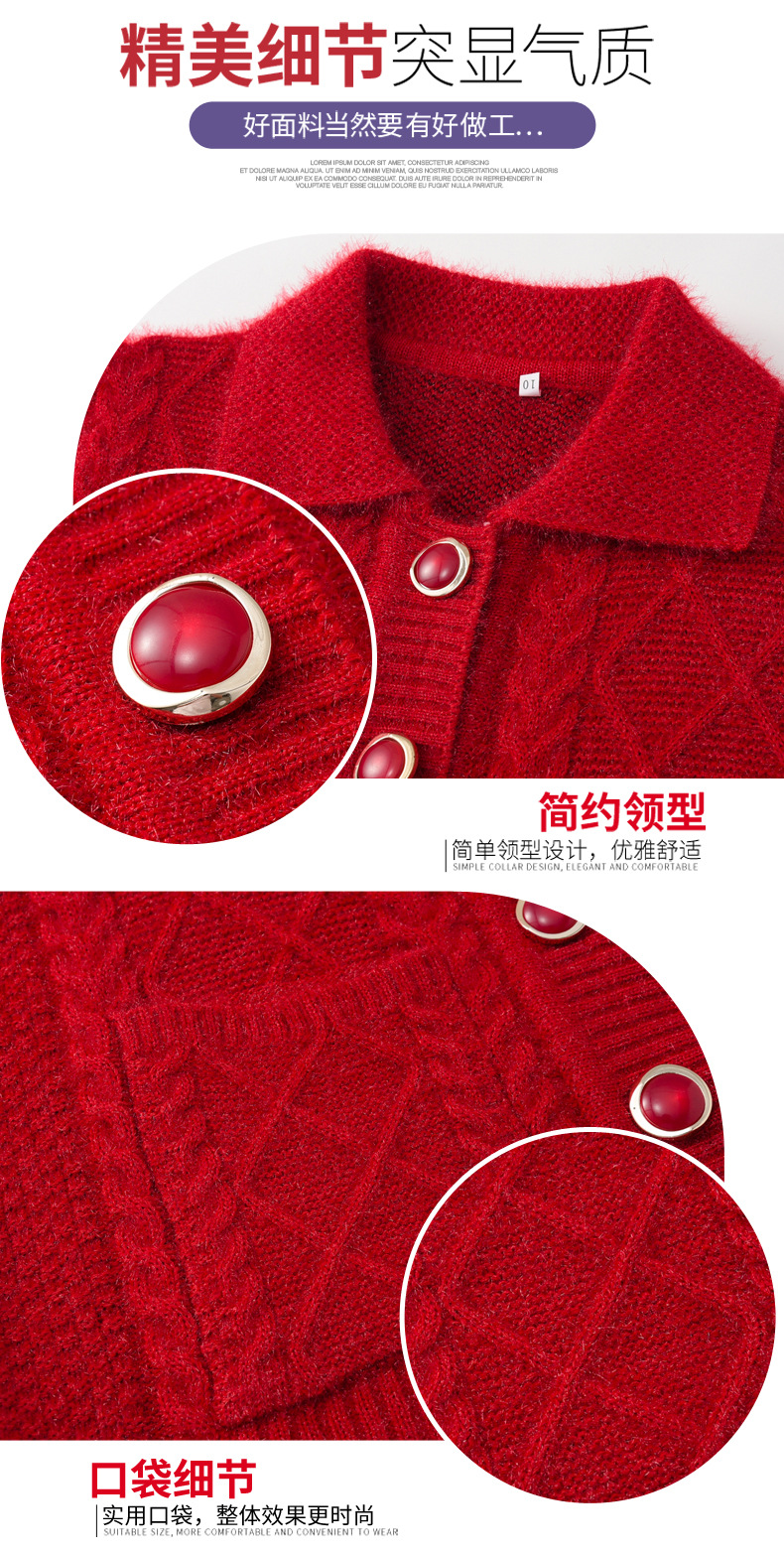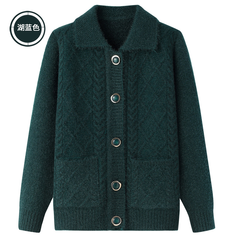 老年人秋冬外套女奶奶装加厚翻领妈妈装针织衫开衫中老年毛衣春装