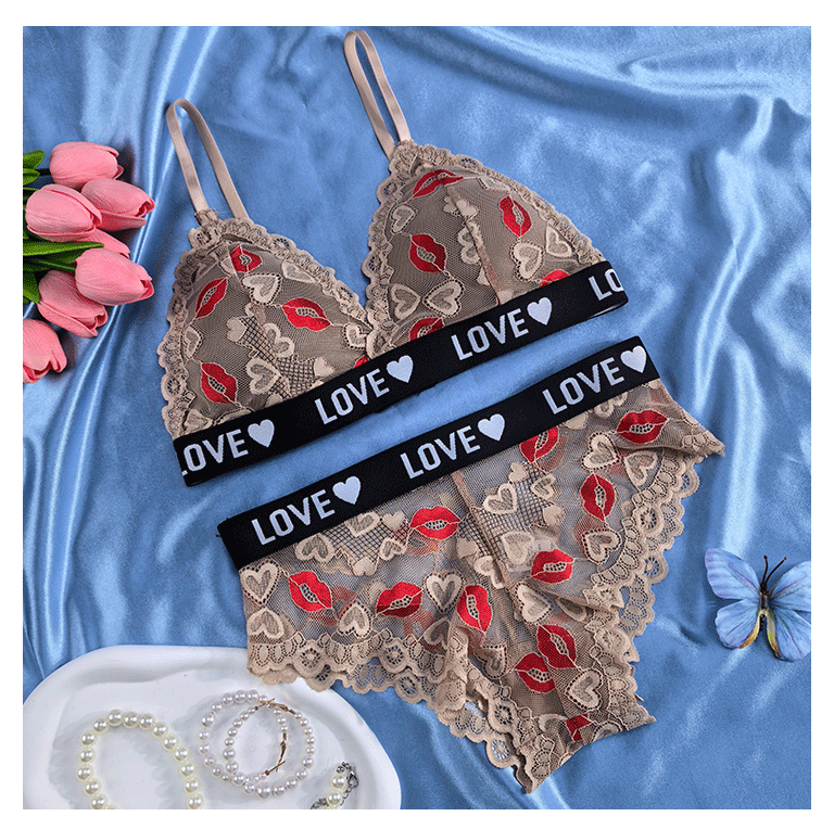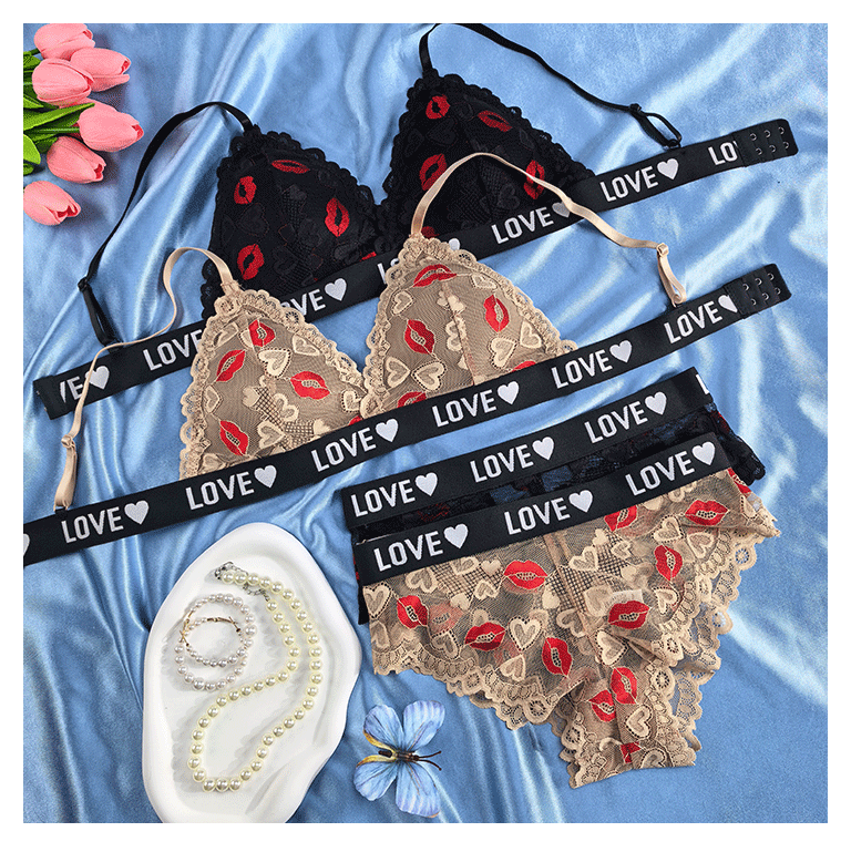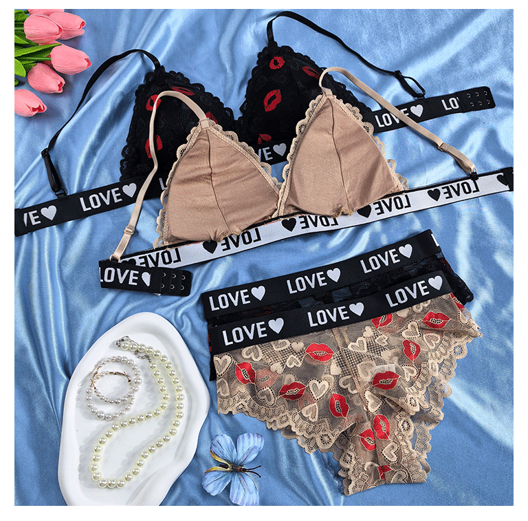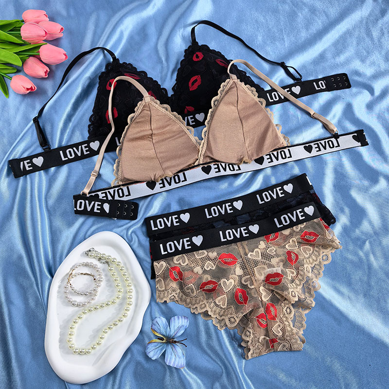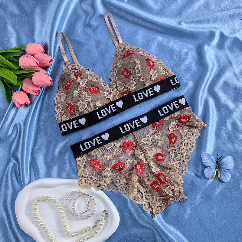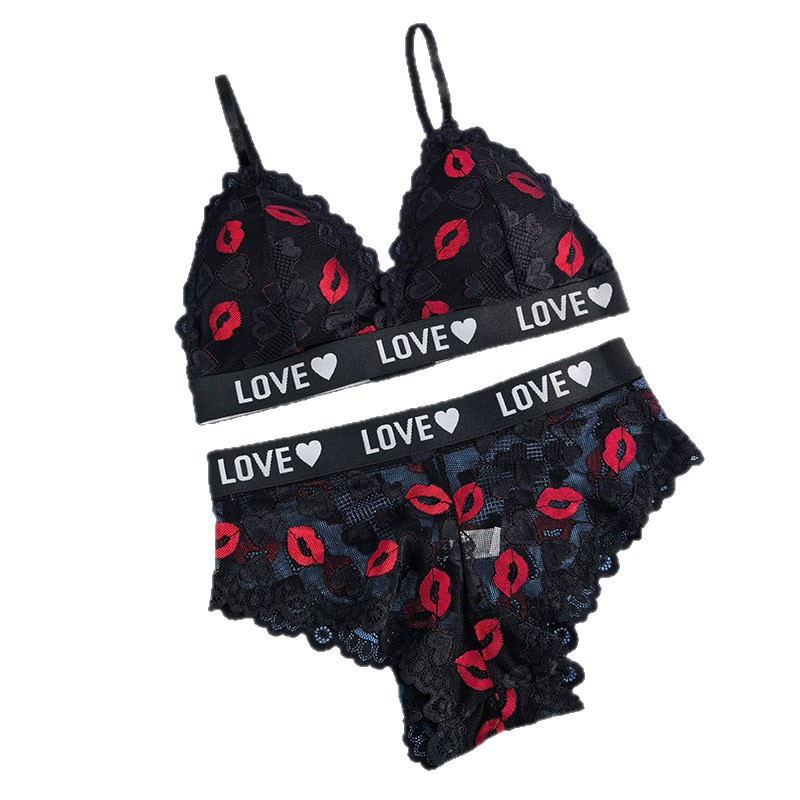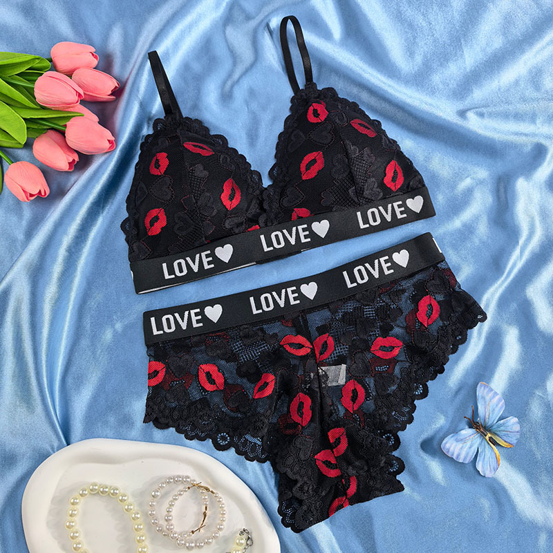 跨境欧美外贸专供文胸套装性感镂空透视诱惑聚拢内衣内裤薄杯透气