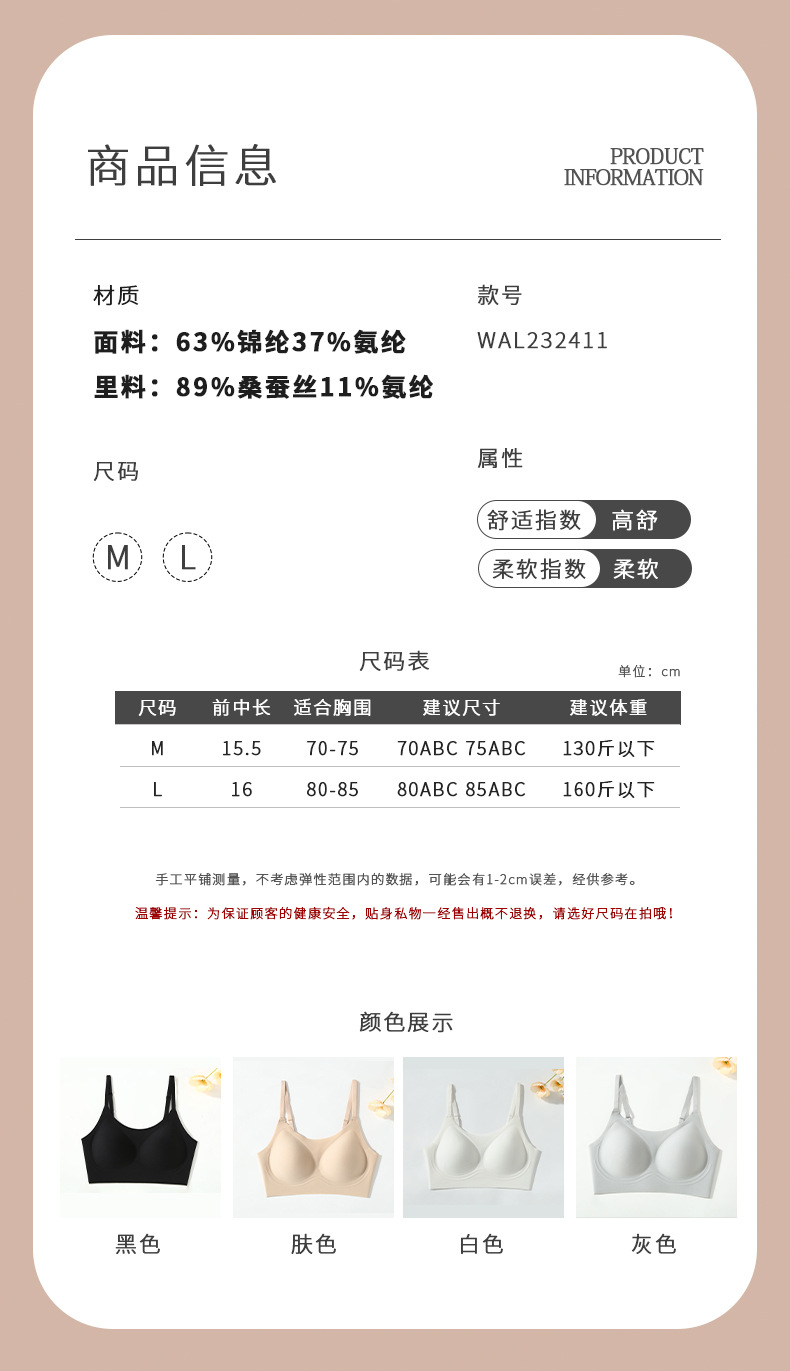 好桑缘 真丝桑蚕丝一片式无痕吊带内衣一体式无钢圈真丝内衣2411