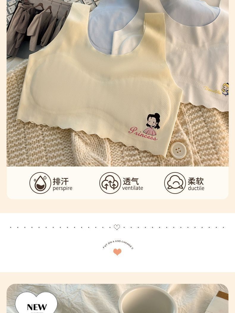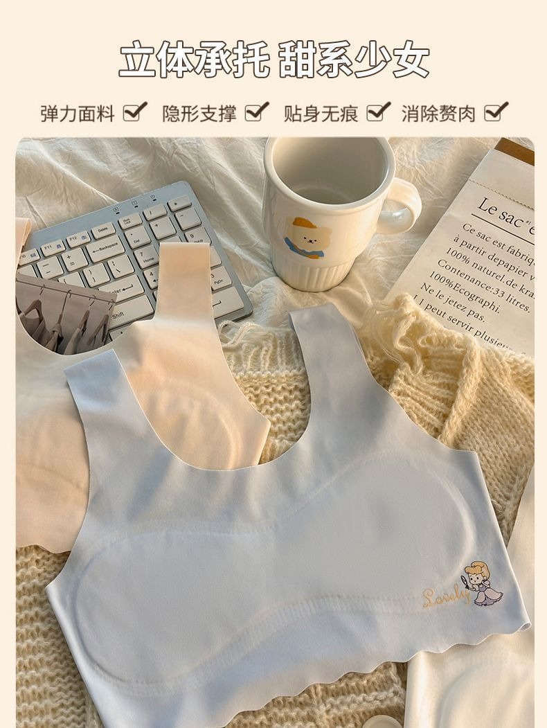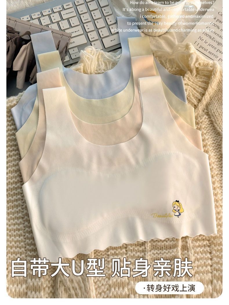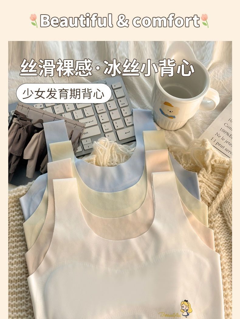 发育期少女内衣裹胸中女童抹胸冰丝无痕防走光小背心透气文胸薄款