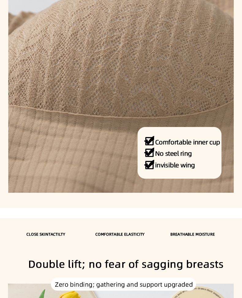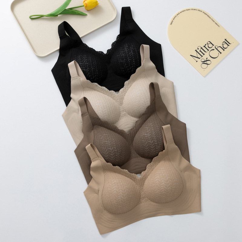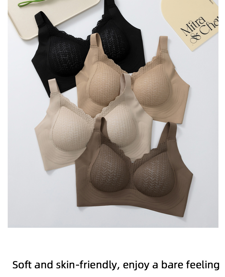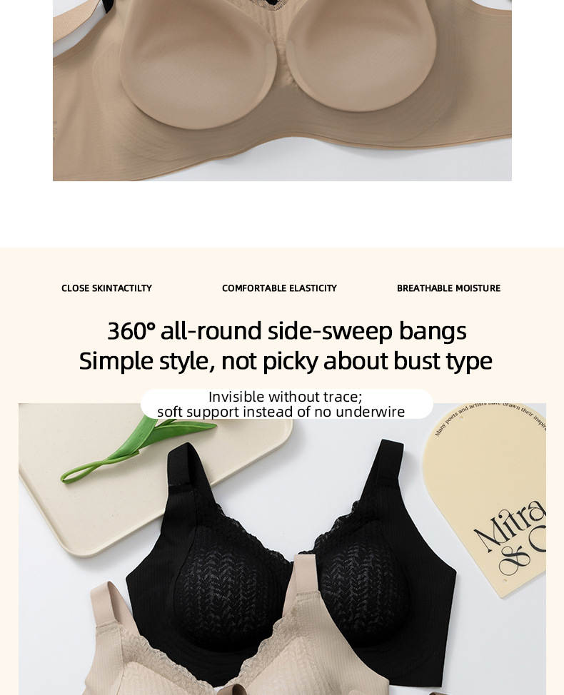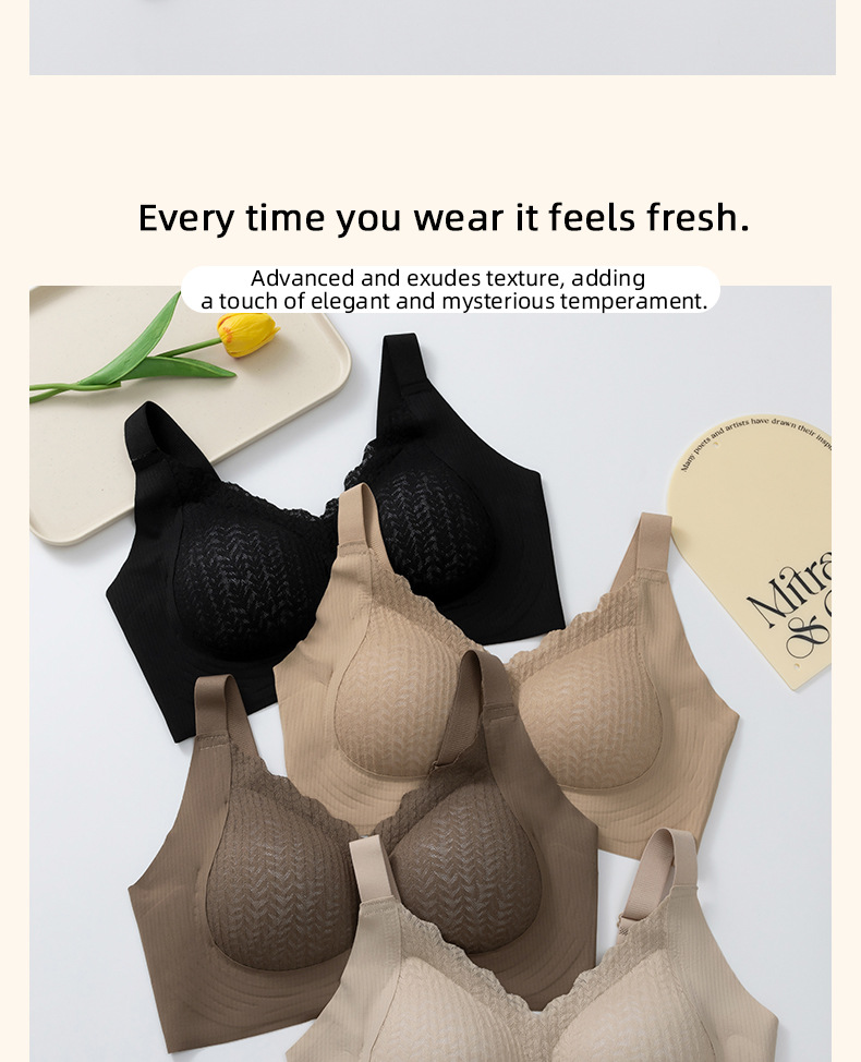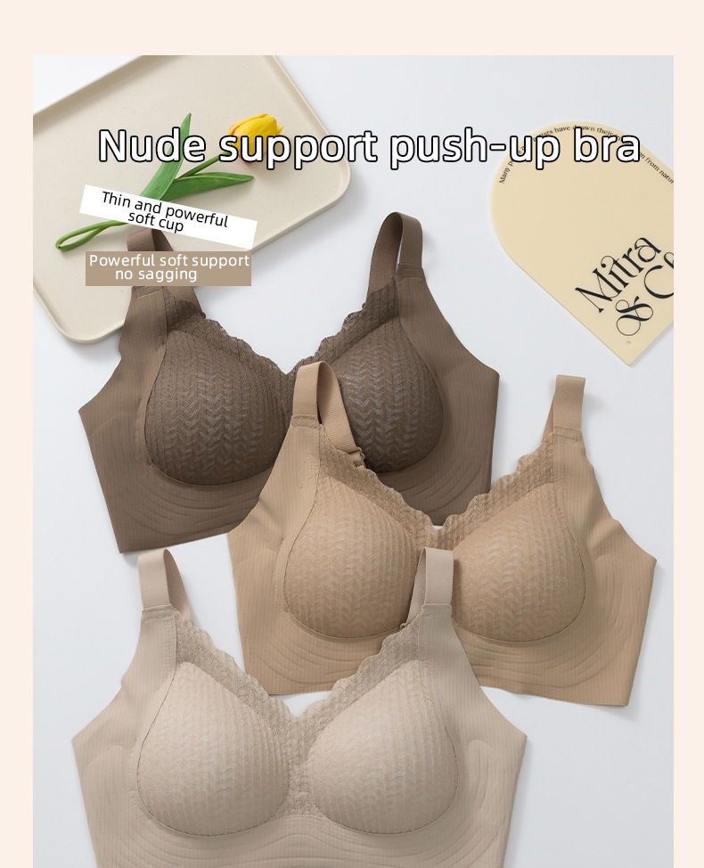 cross-border seamless underwear, wireless, anti-gravity lifting, makes big breasts look smaller, breast holding, foreign trade women‘s lace underwear