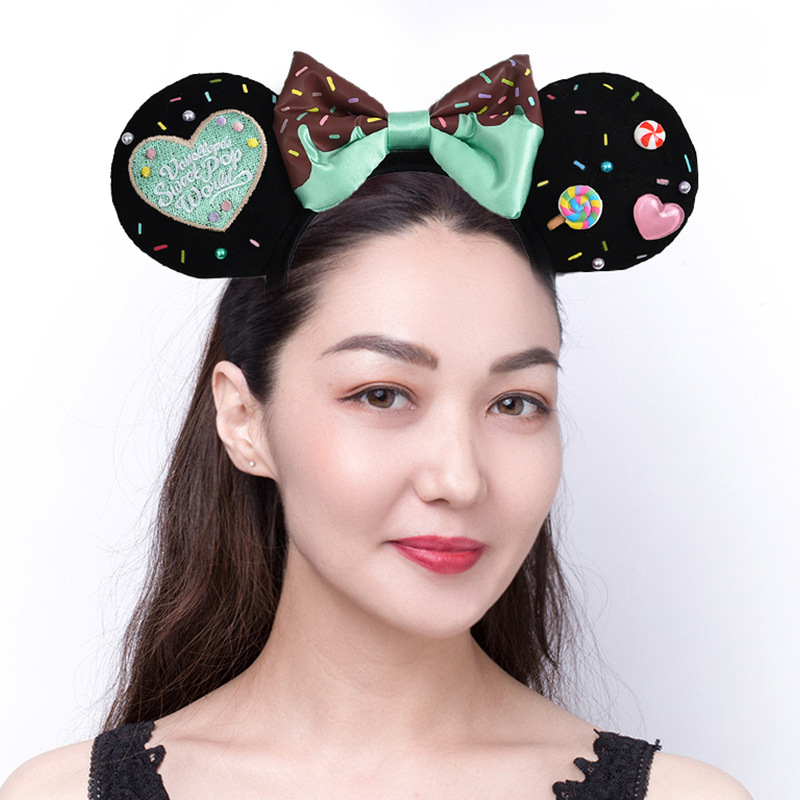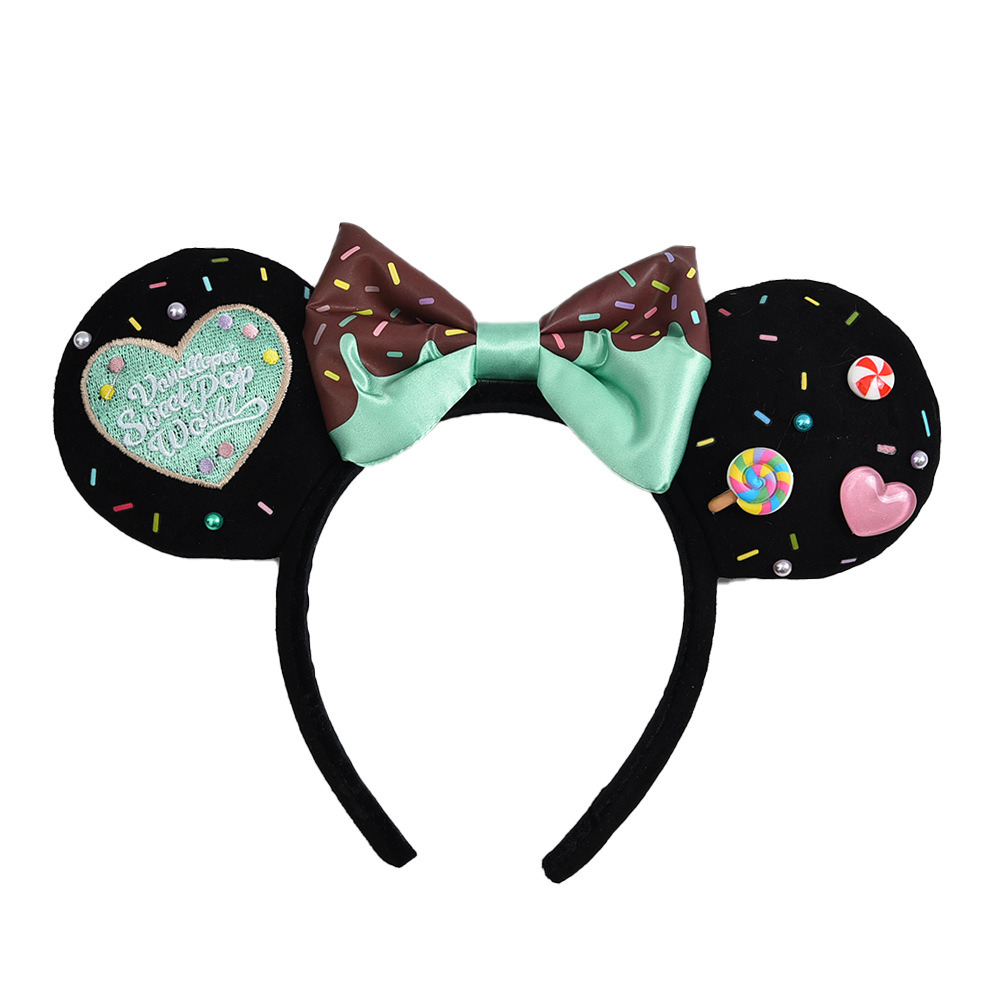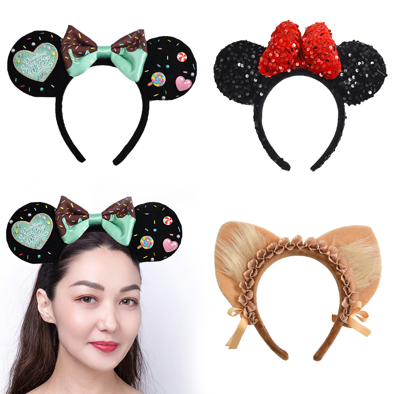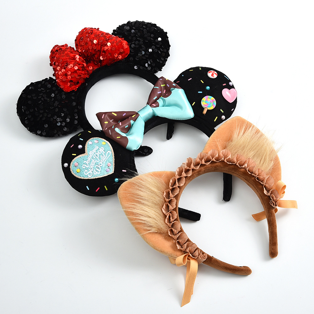 新款爱心刺绣圆耳朵头箍蝴蝶结发箍游乐园公主拍照狐狸耳朵头饰