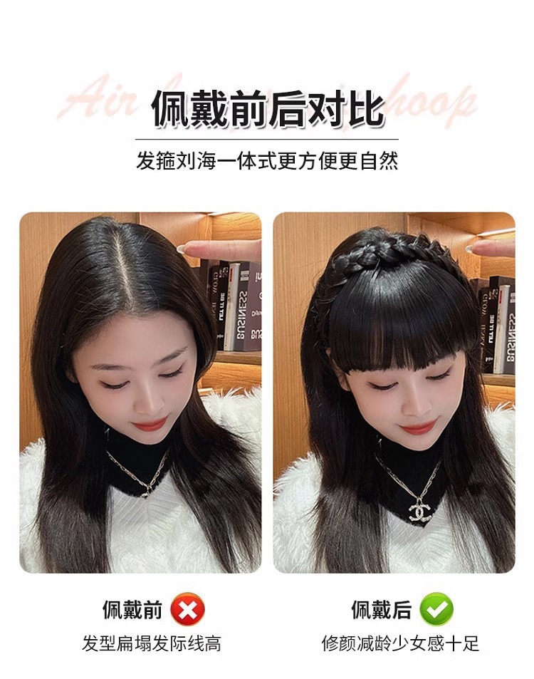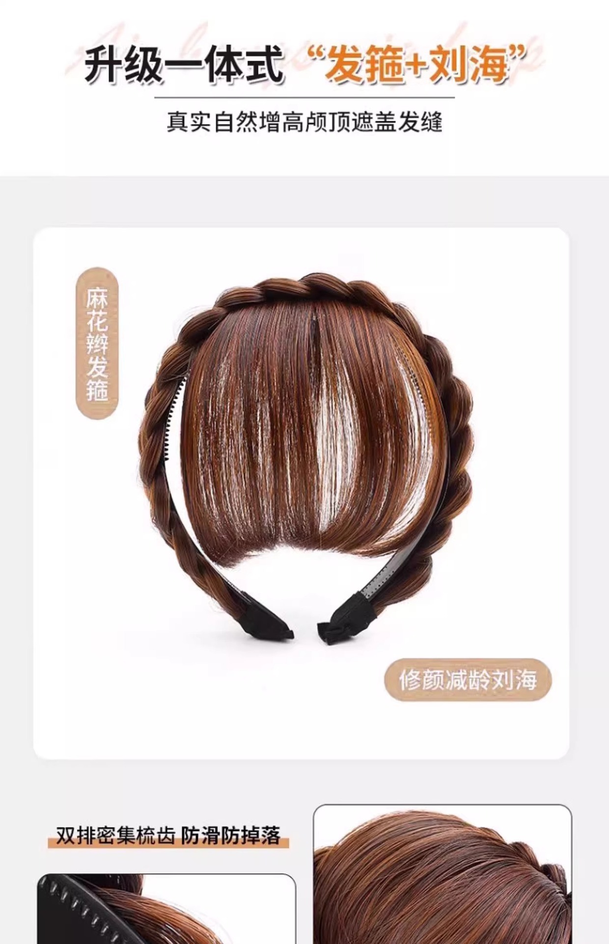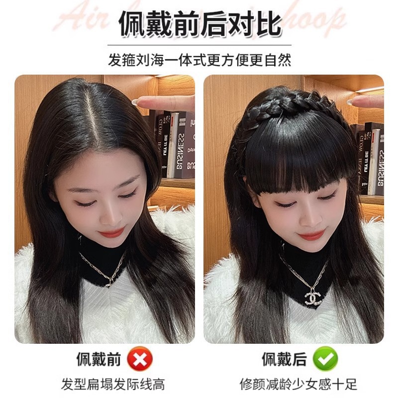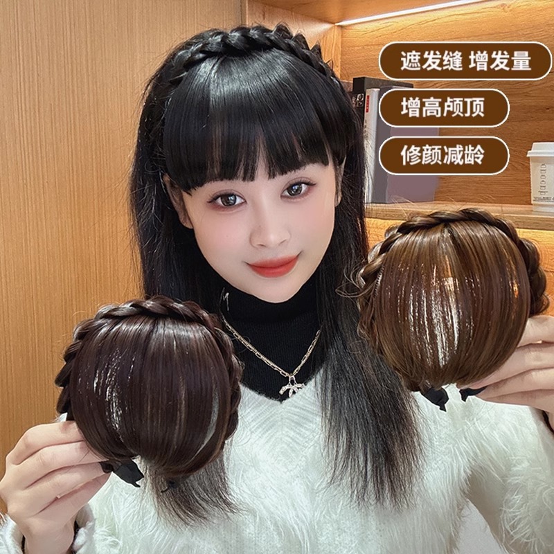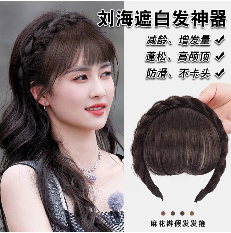 麻花辫假发发箍刘海一体遮白发神器高颅顶压发头箍头饰发捆发卡女