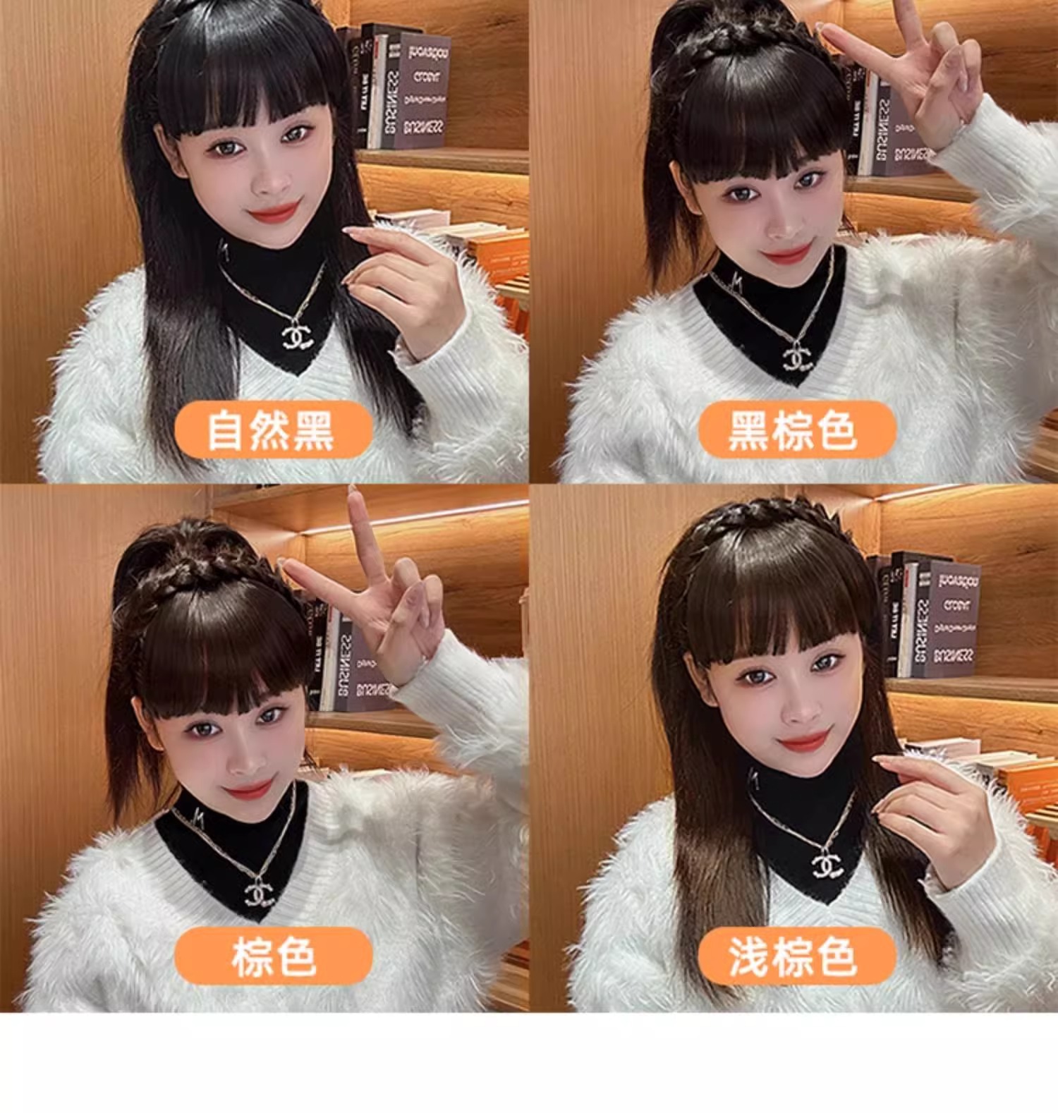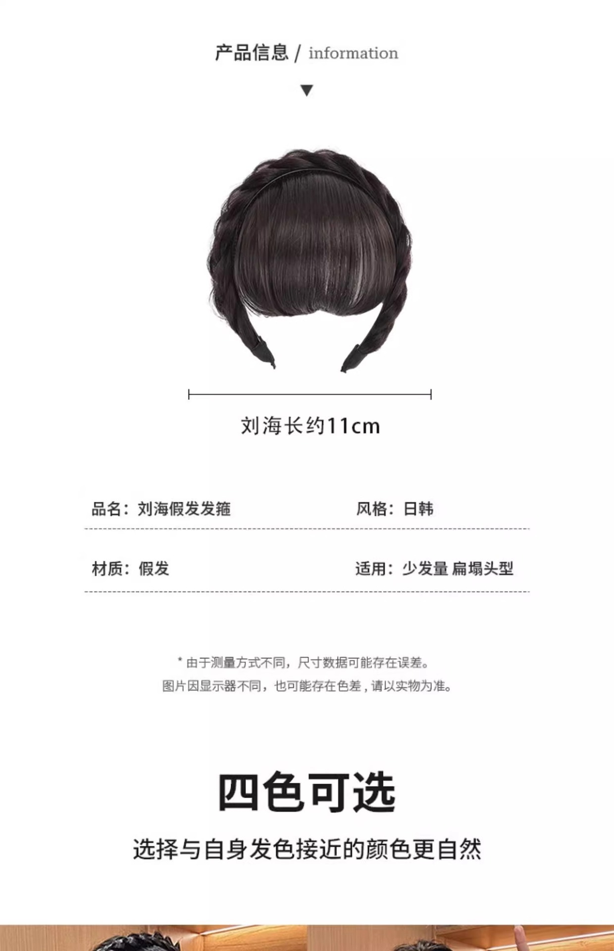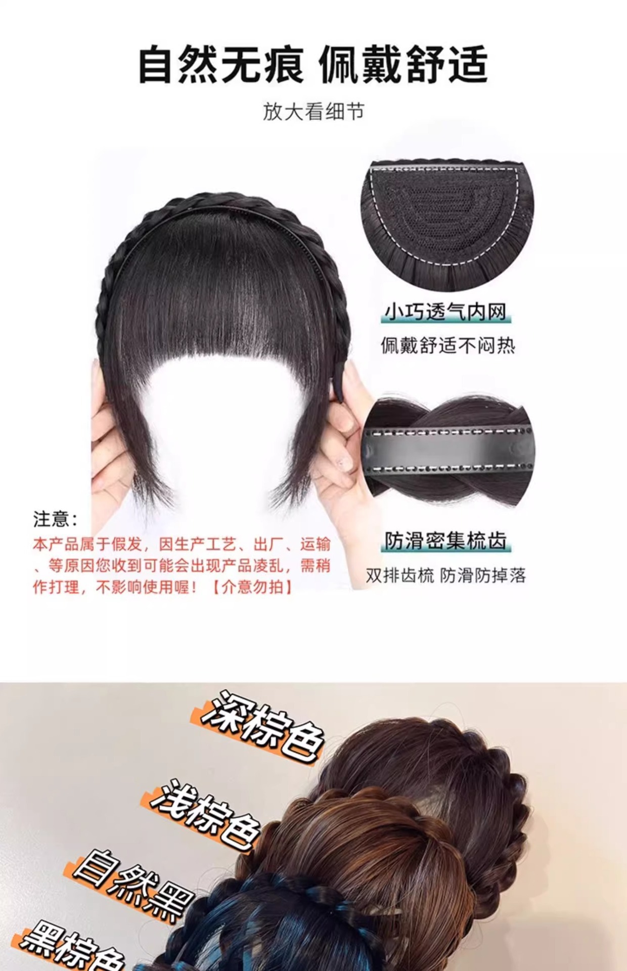 麻花辫假发发箍刘海一体遮白发神器高颅顶压发头箍头饰发捆发卡女