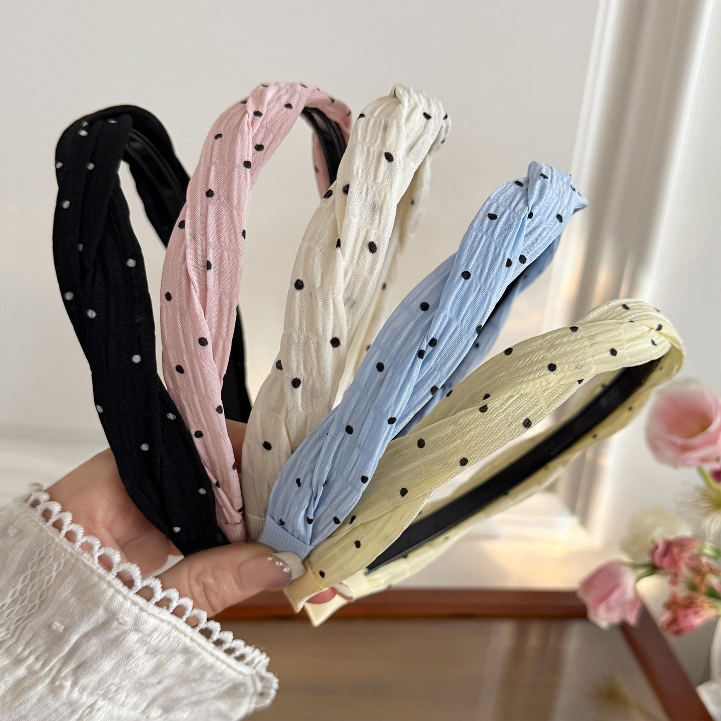 韩版甜美交叉波点发箍早春新款高颅顶洗脸防滑头箍发卡高级感发饰