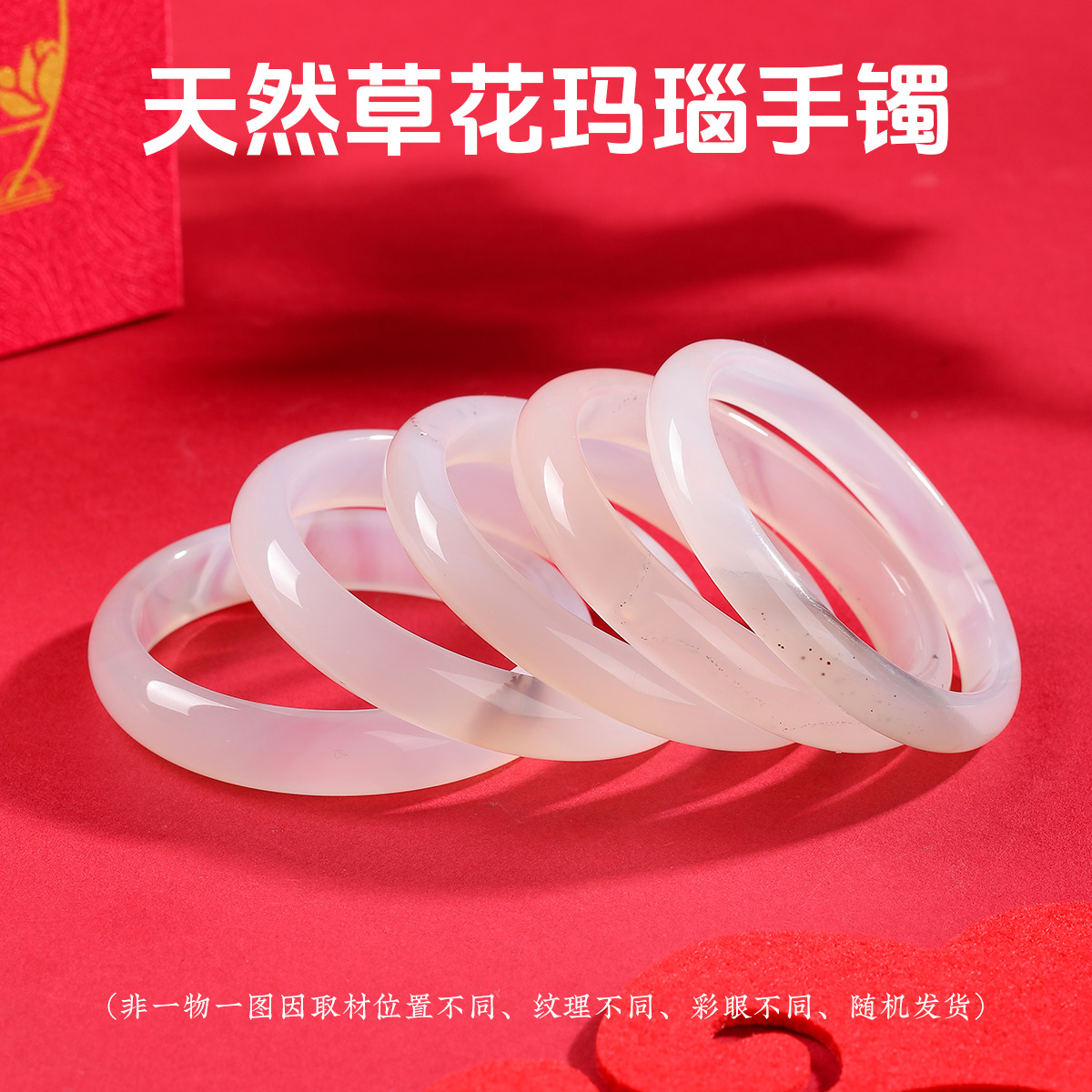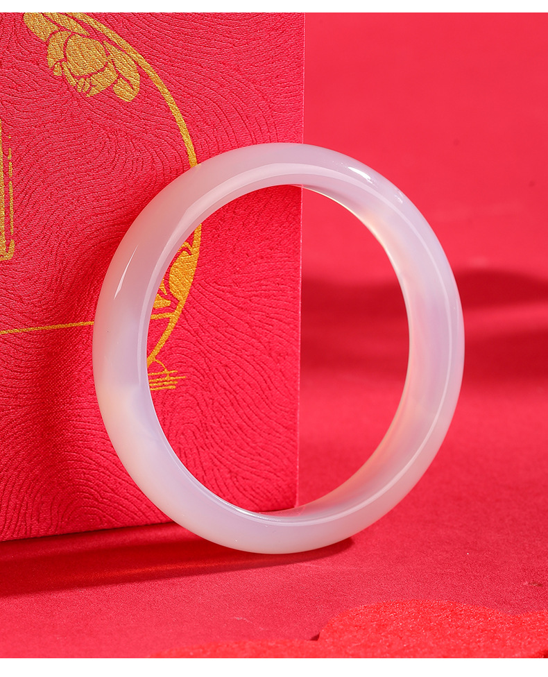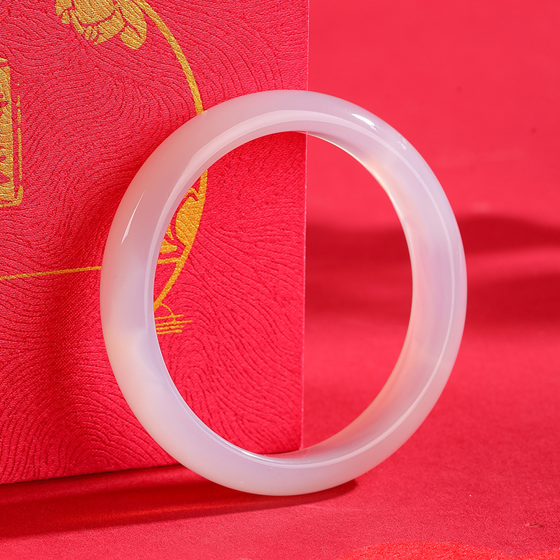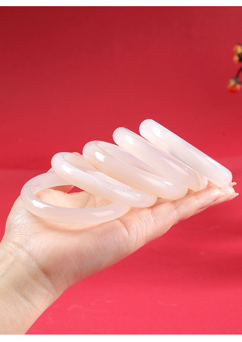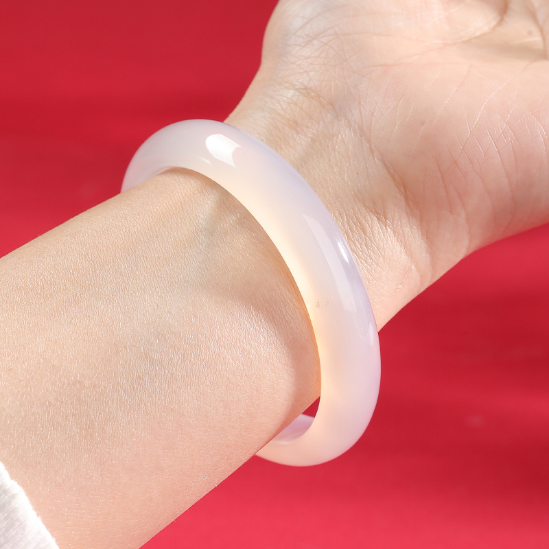 晶德珠宝 天然白玛瑙手镯圆条 女款白月光玉髓镯子 首饰礼物批发
