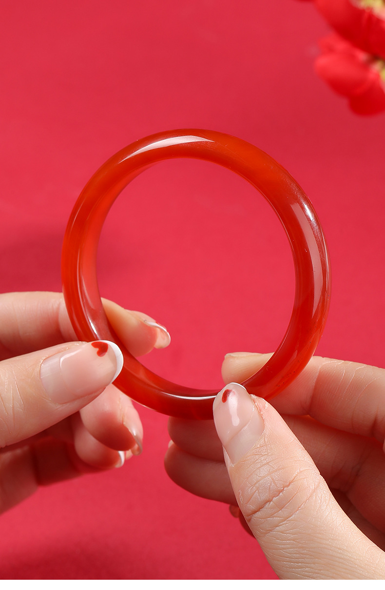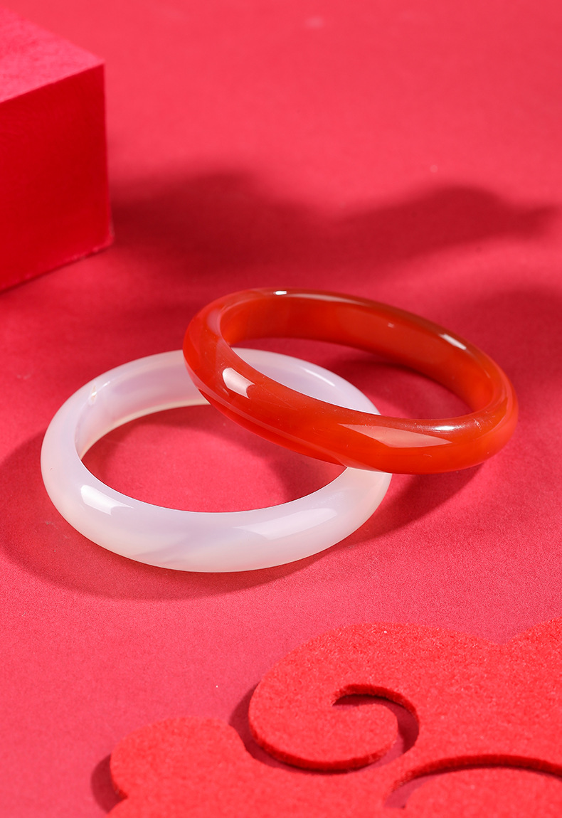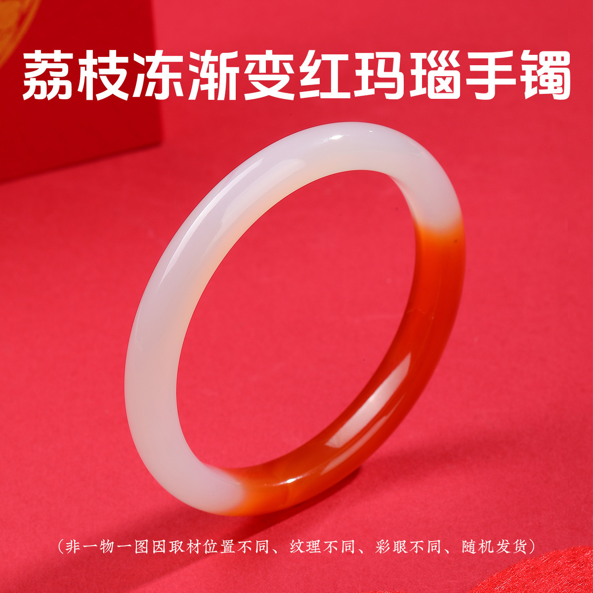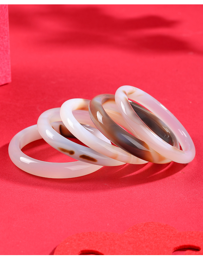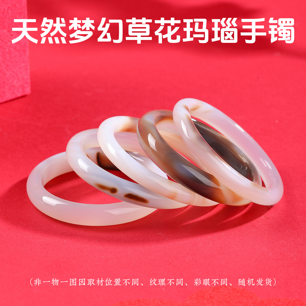晶德珠宝 天然白玛瑙手镯圆条 女款白月光玉髓镯子 首饰礼物批发