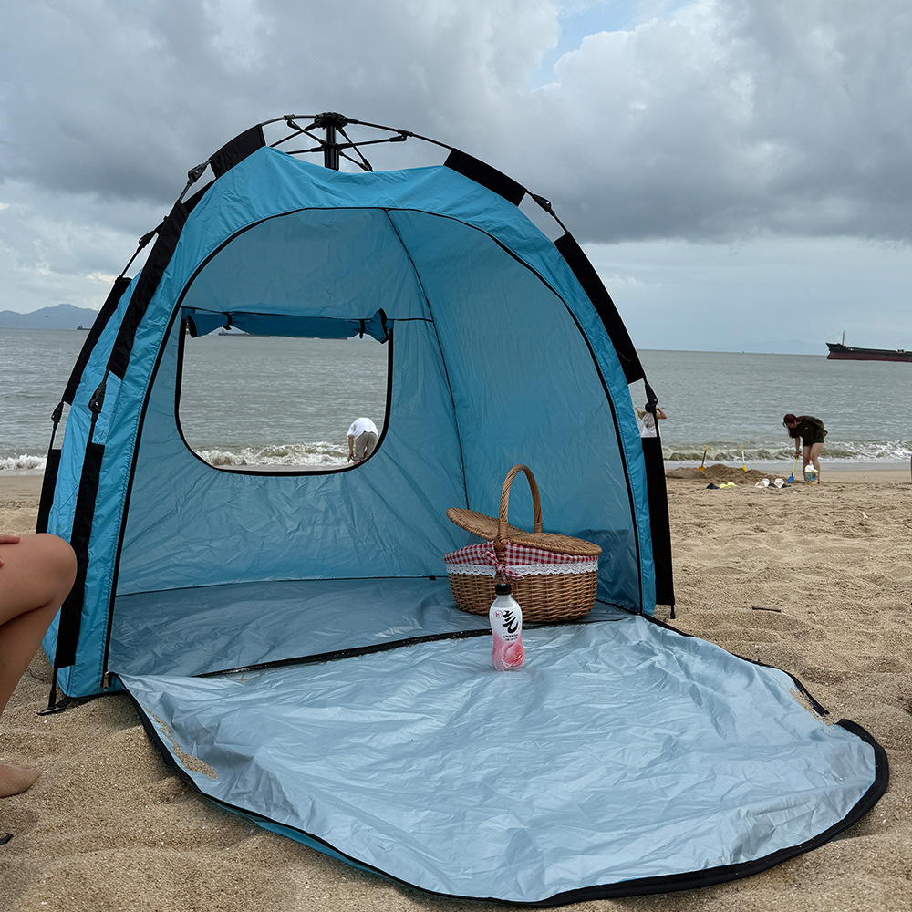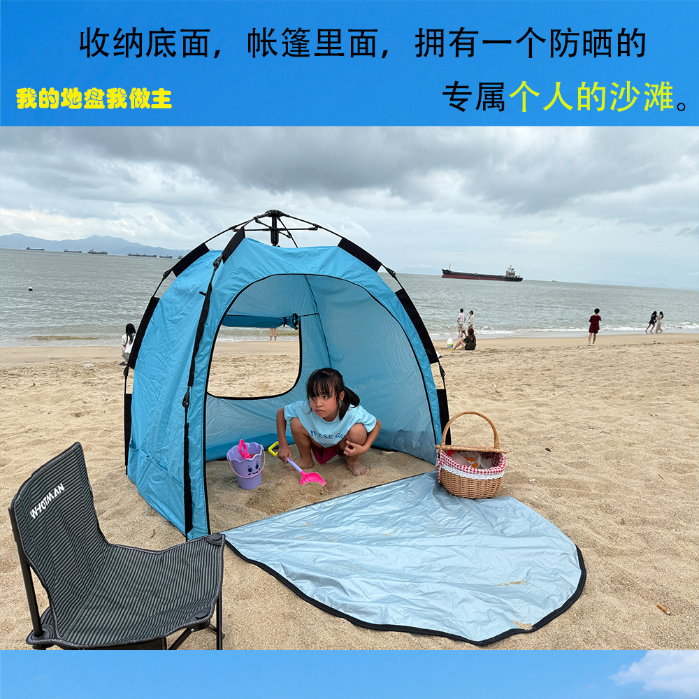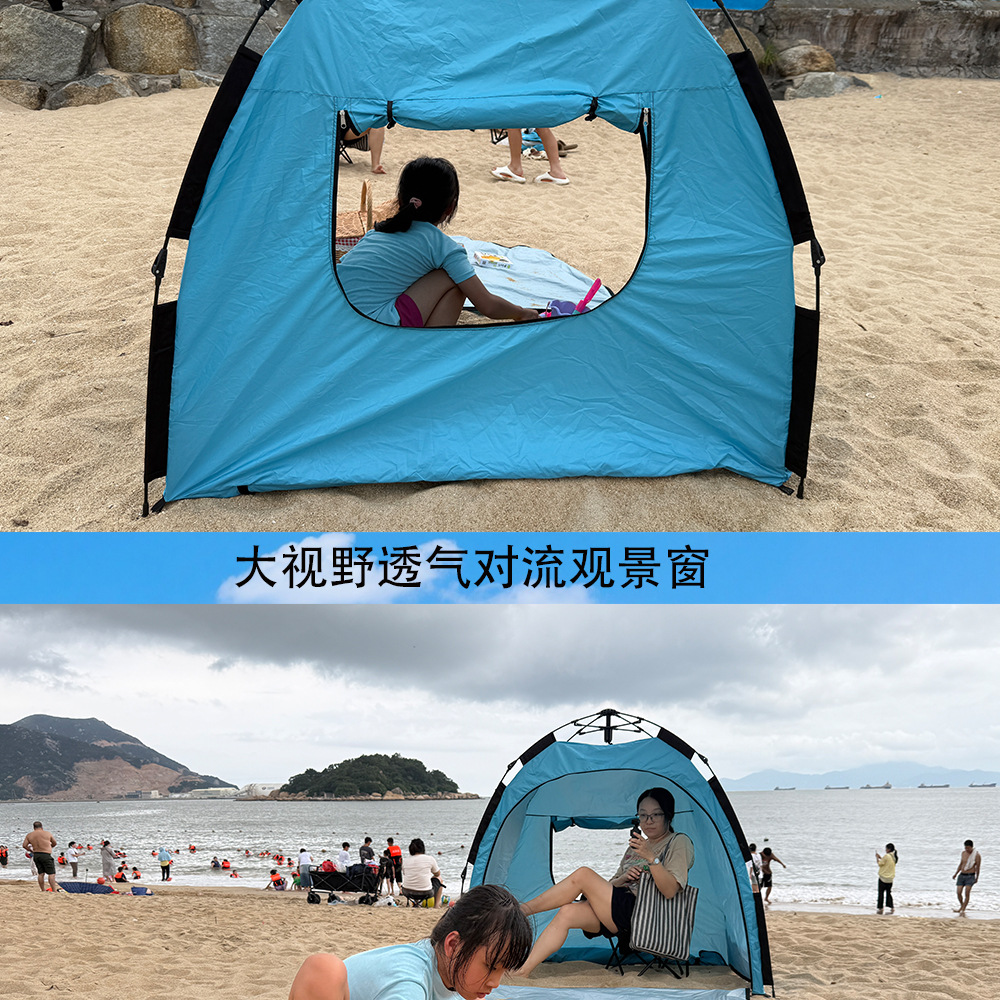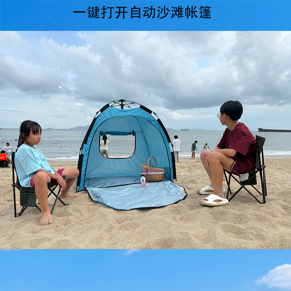 沙滩帐篷跨境涤纶涂银防晒防雨水自动支架一键即开户外大帐篷带窗