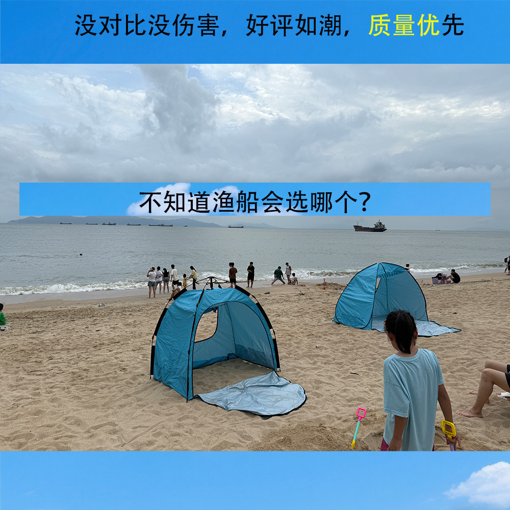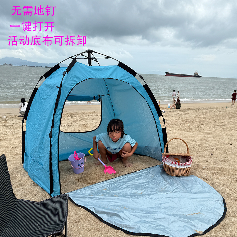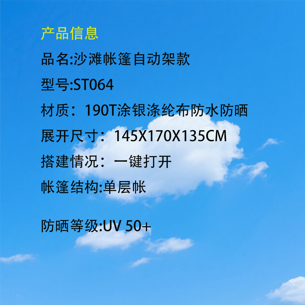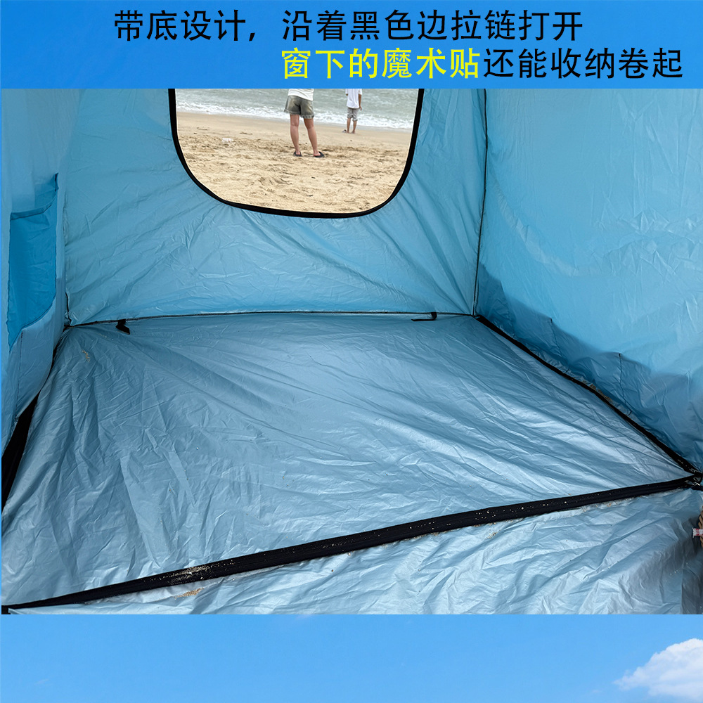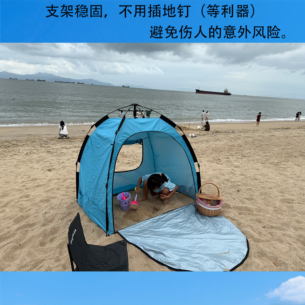 沙滩帐篷跨境涤纶涂银防晒防雨水自动支架一键即开户外大帐篷带窗