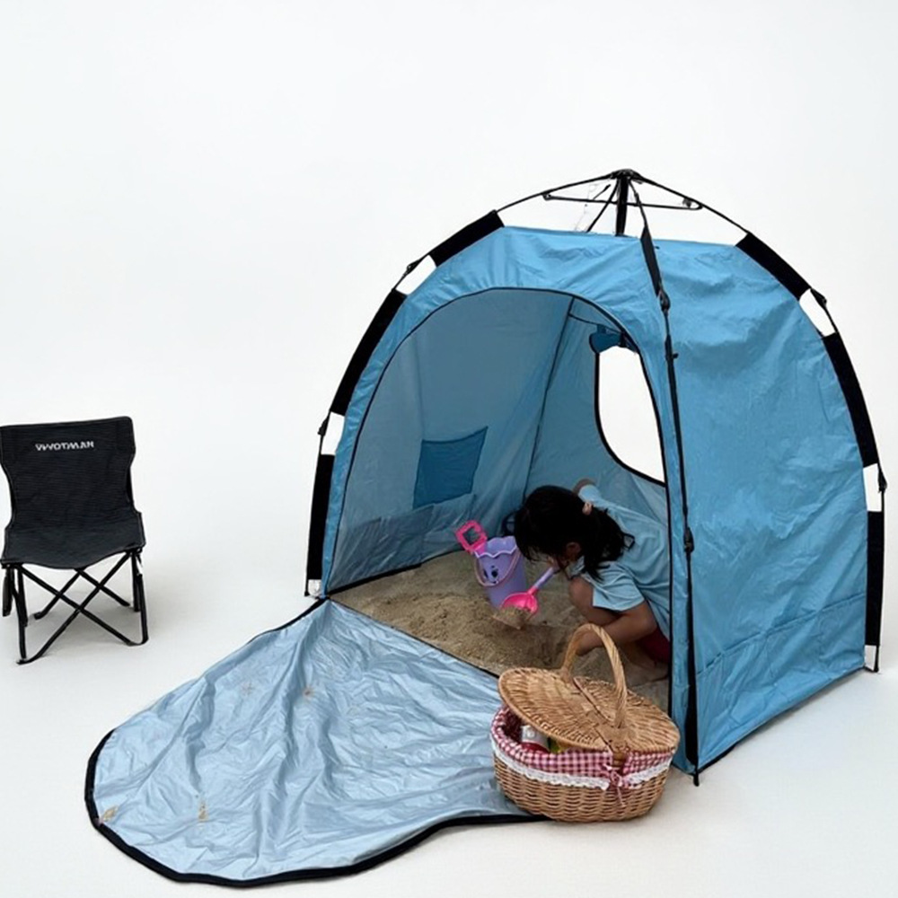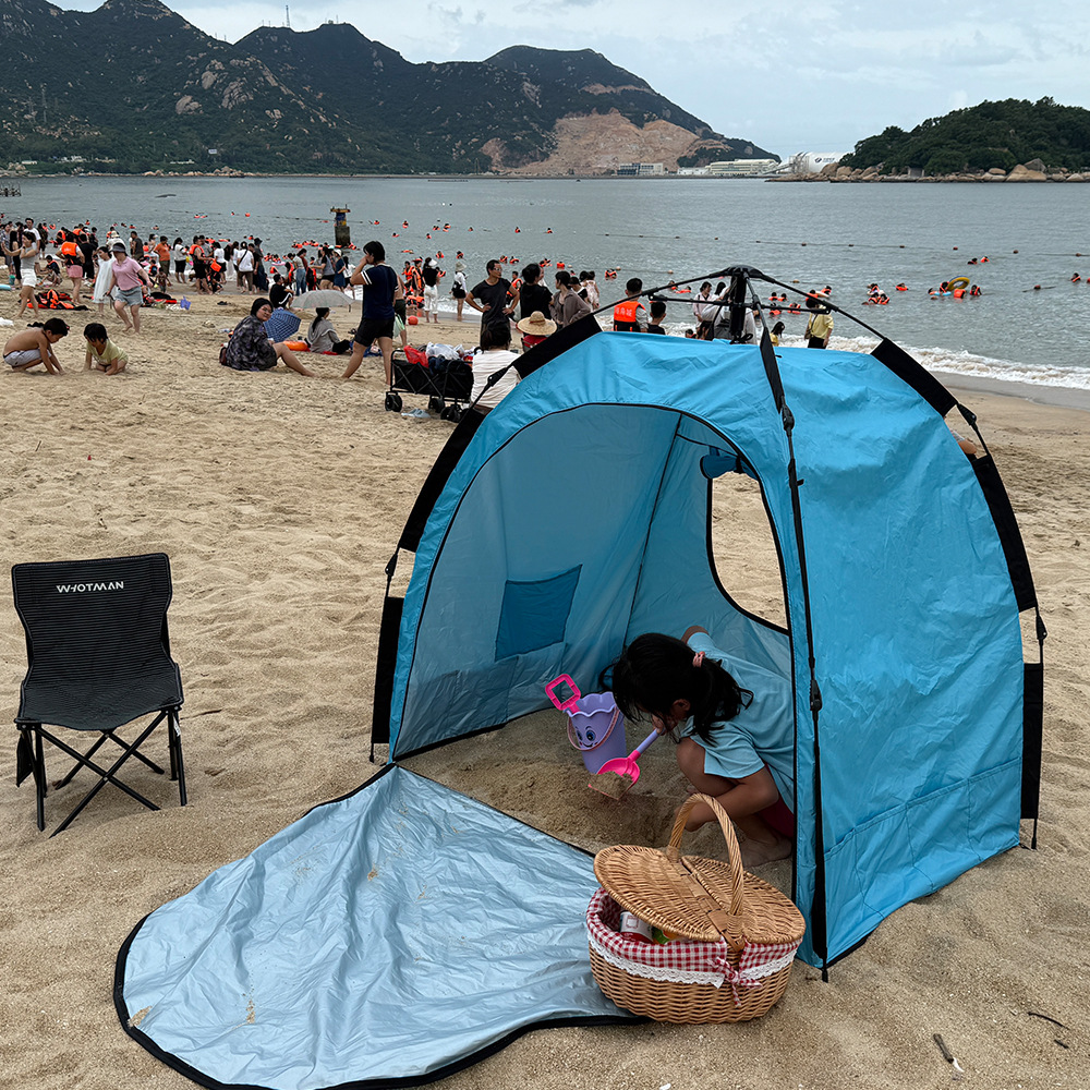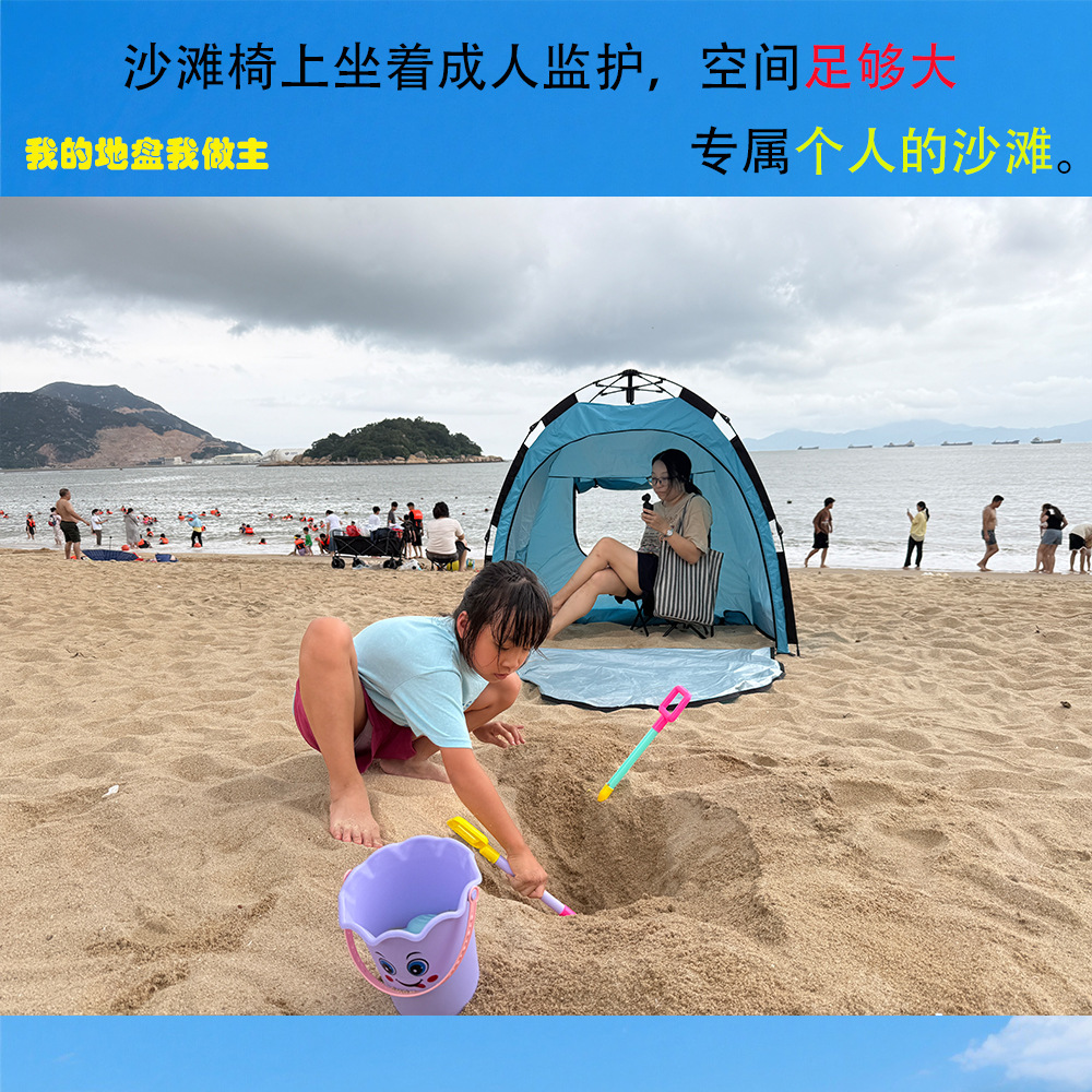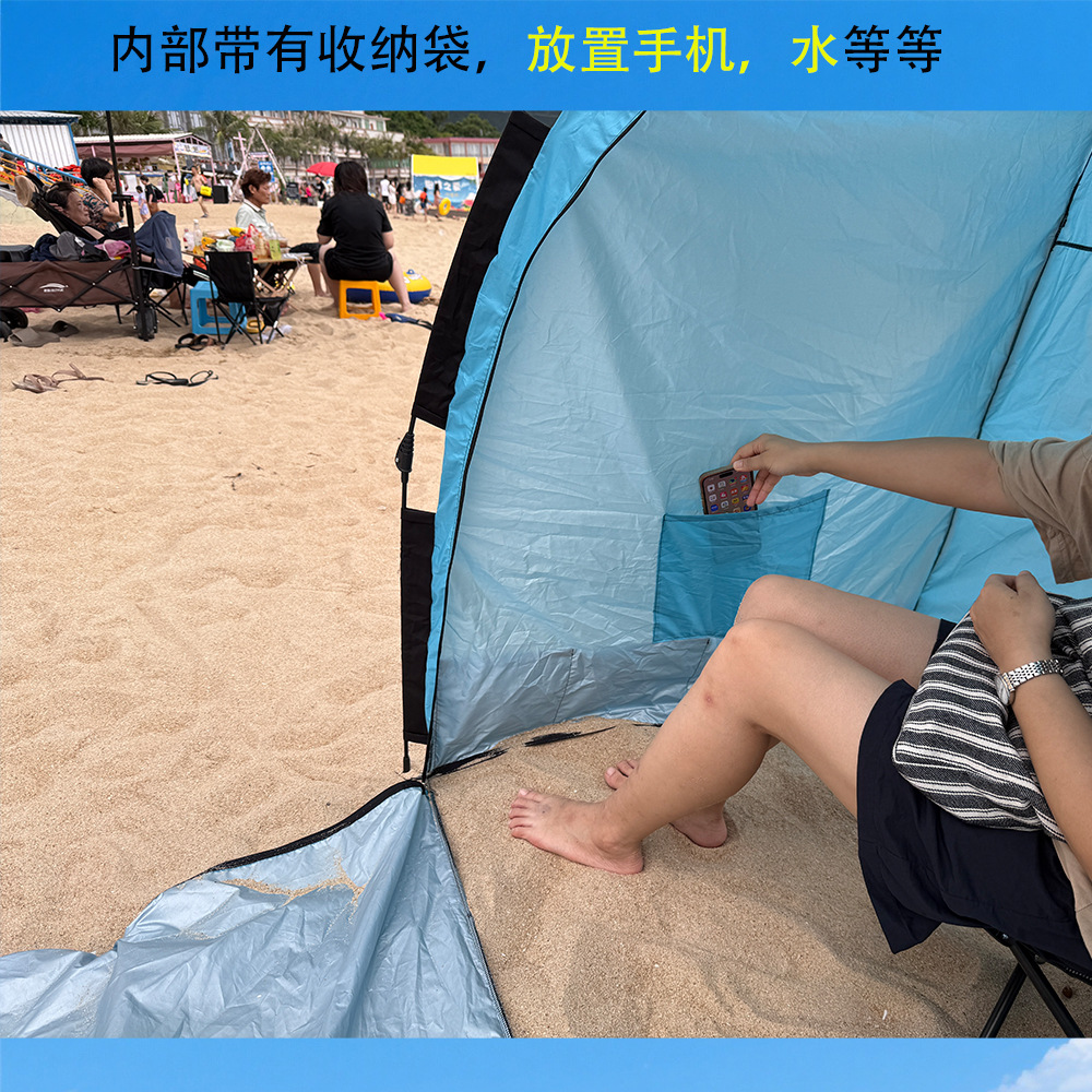 沙滩帐篷跨境涤纶涂银防晒防雨水自动支架一键即开户外大帐篷带窗