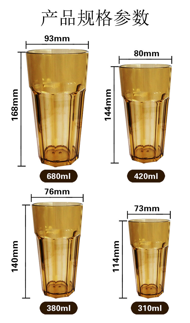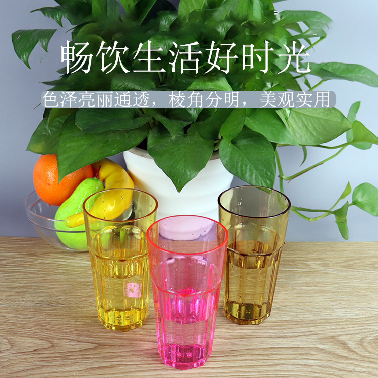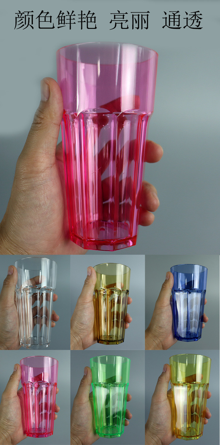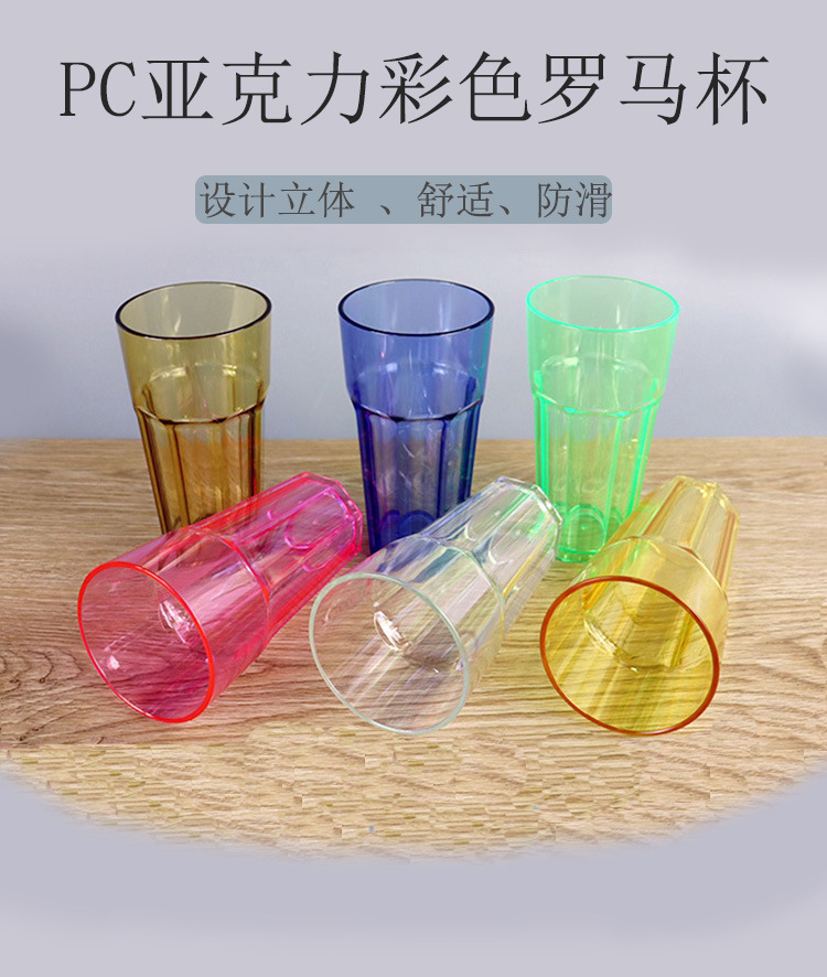 PC亚克力彩色水杯果汁杯饮料杯耐热八角罗马杯子漱口杯塑料啤酒杯
