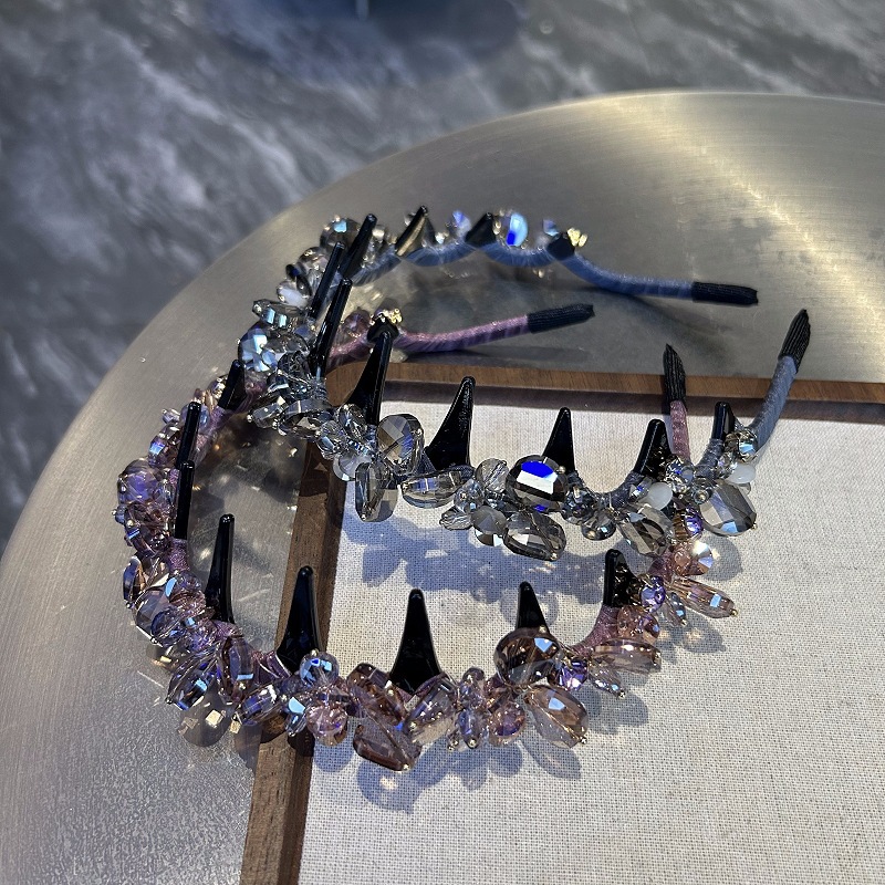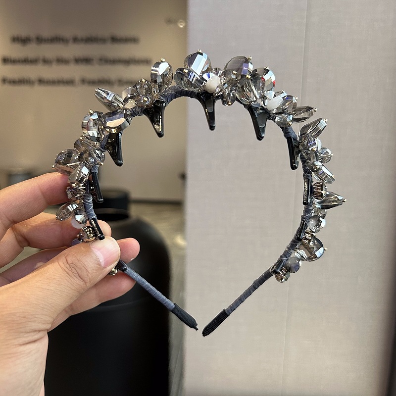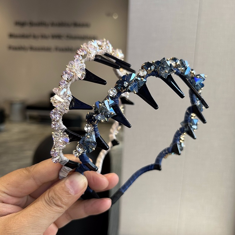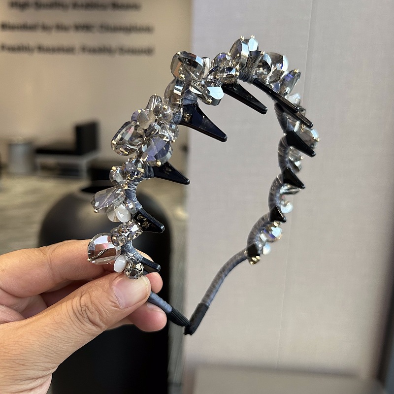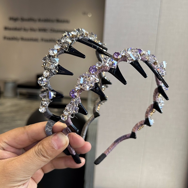 韩国水晶带齿轻奢满钻发箍发饰简约气质复古百搭细头箍发卡女发饰