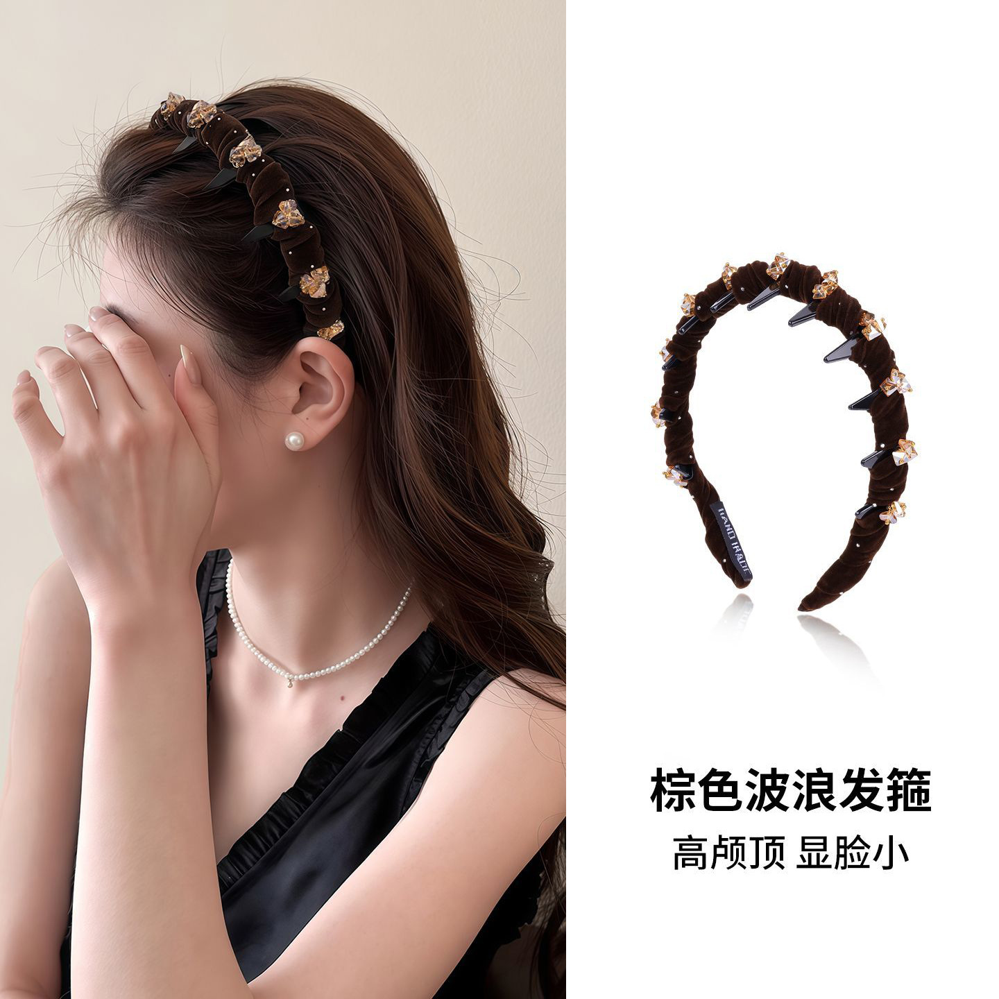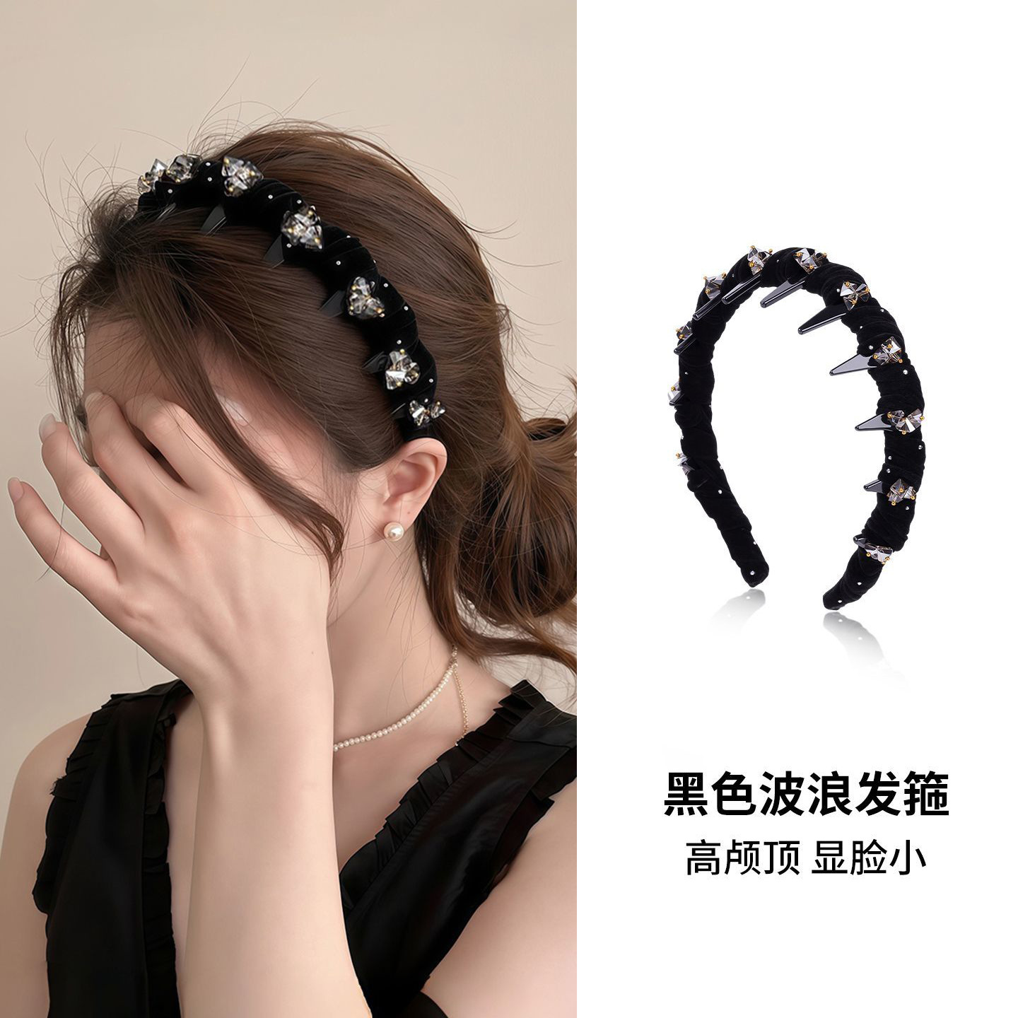 丝绒波浪发箍高级感发夹子女款刘海碎发头饰发饰高颅顶头箍批发价