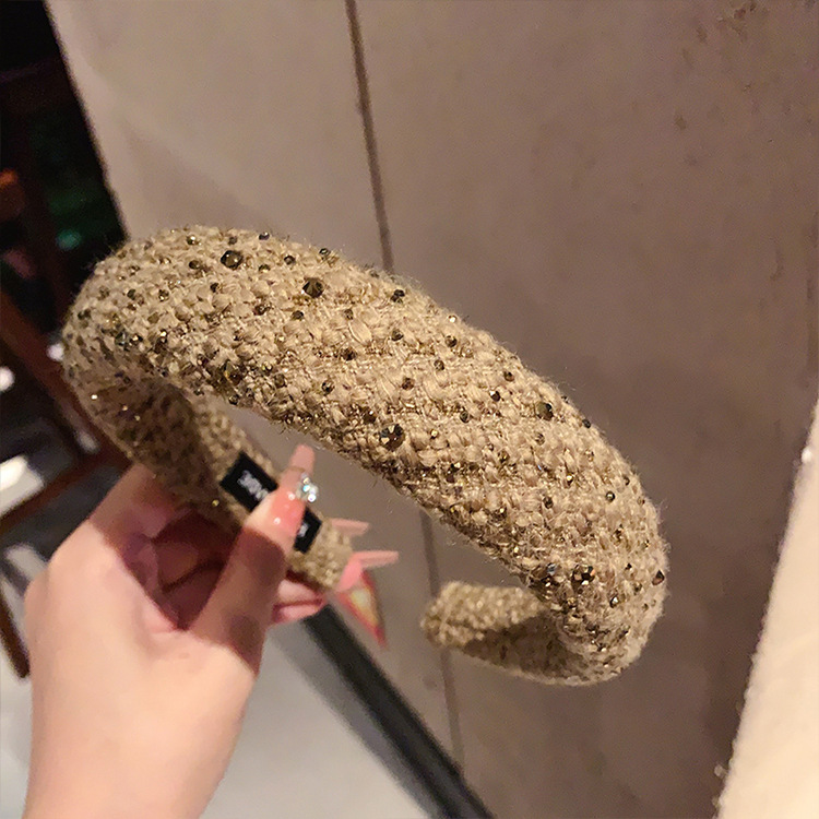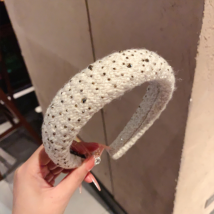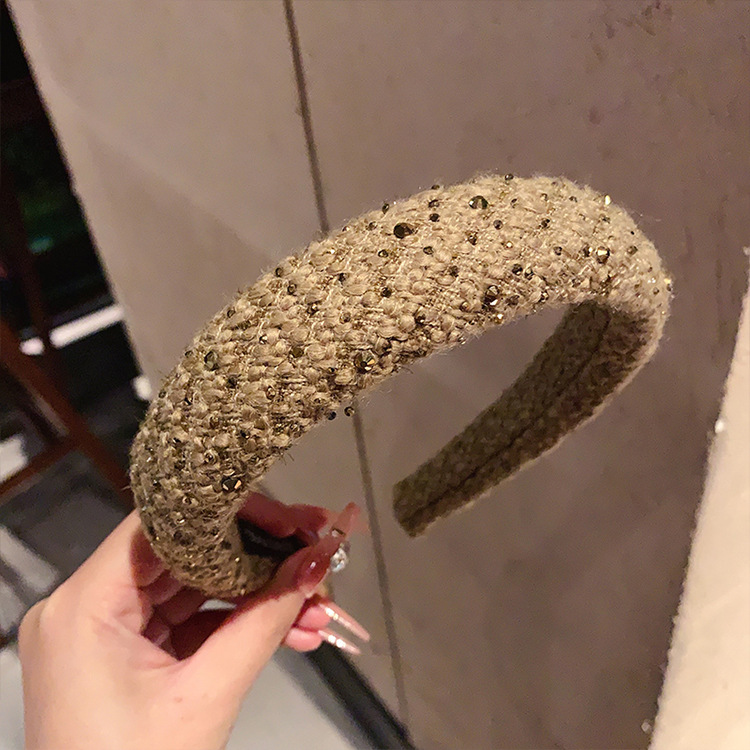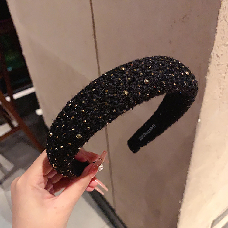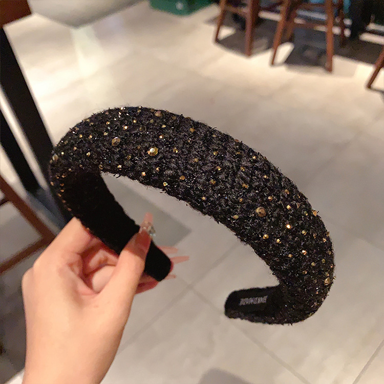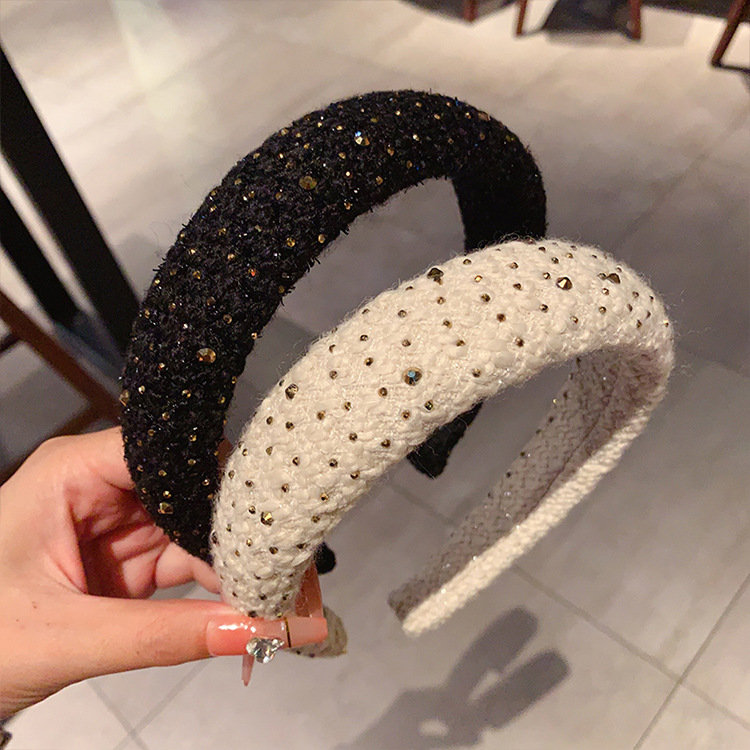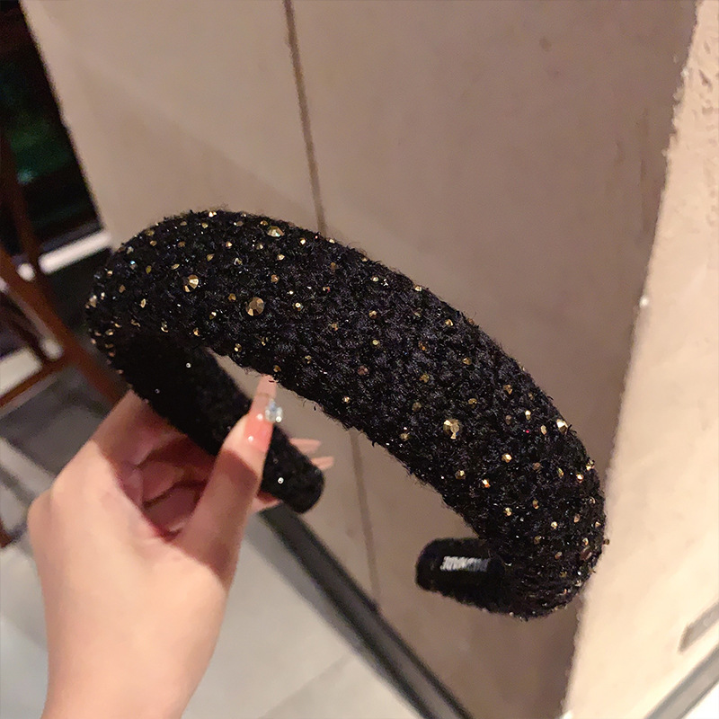 法式复古小香风毛绒水钻宽边海绵发箍高颅顶发卡头箍轻奢百搭发饰